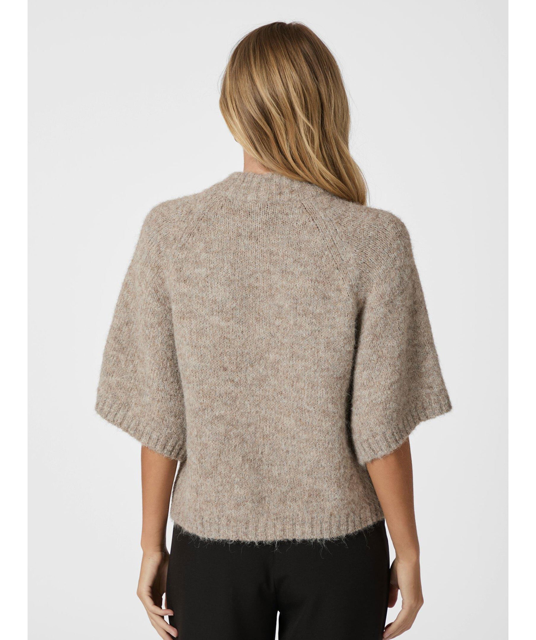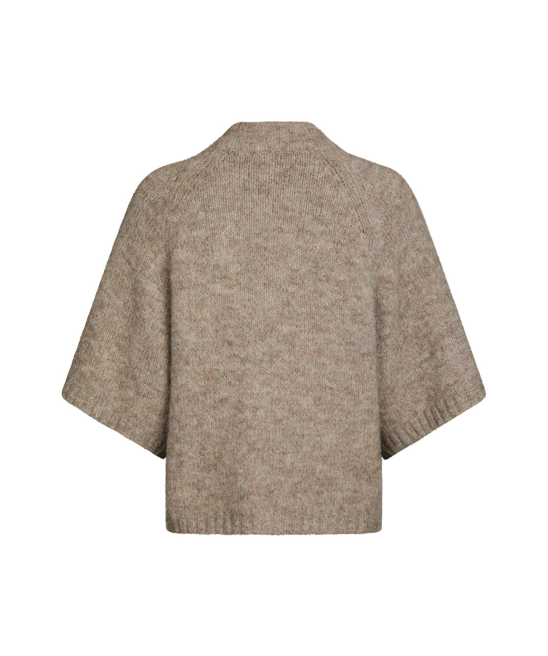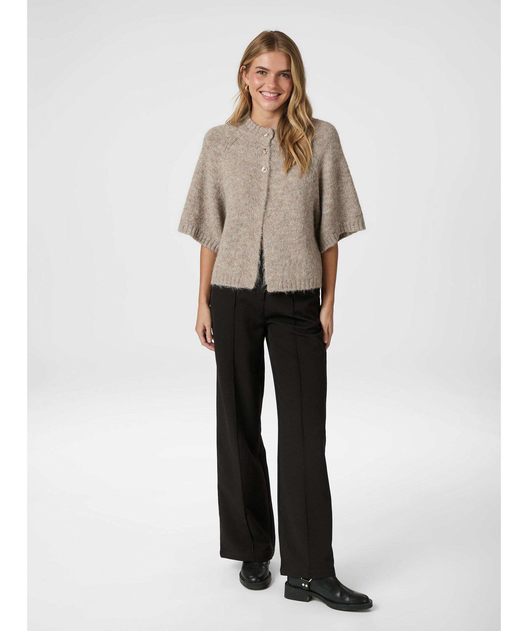 Beige cardigan från Neo Noir. Stickad i en mjuk, beige melerad kvalitet som ger ett varmt och ombonat intryck. Den har en boxig, något kortare passform med vida ärmar och tre dekorativa knappar framtill som ger en elegant touch. Ett perfekt lagerplagg för kyligare dagar, lika fin över en klänning som till jeans.