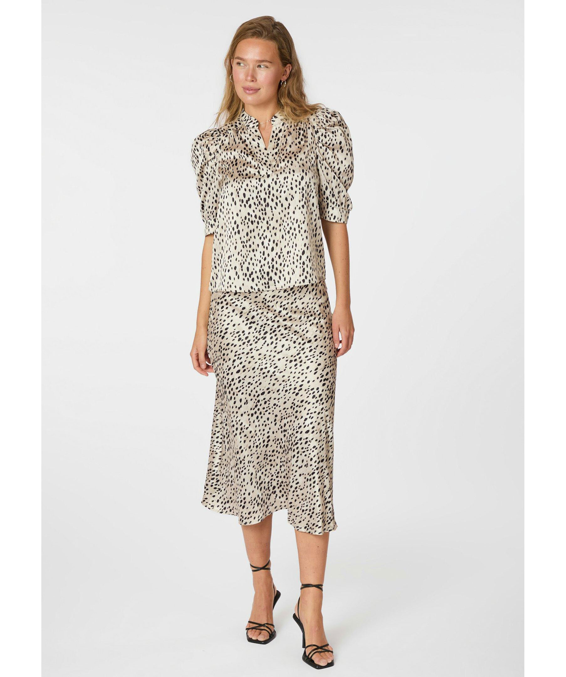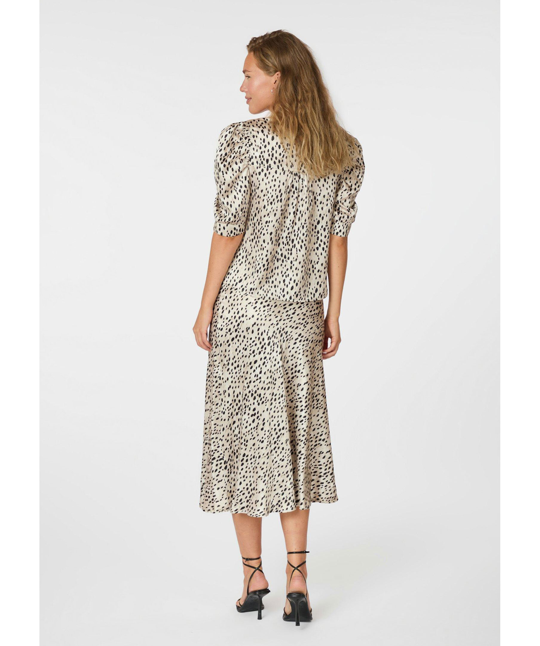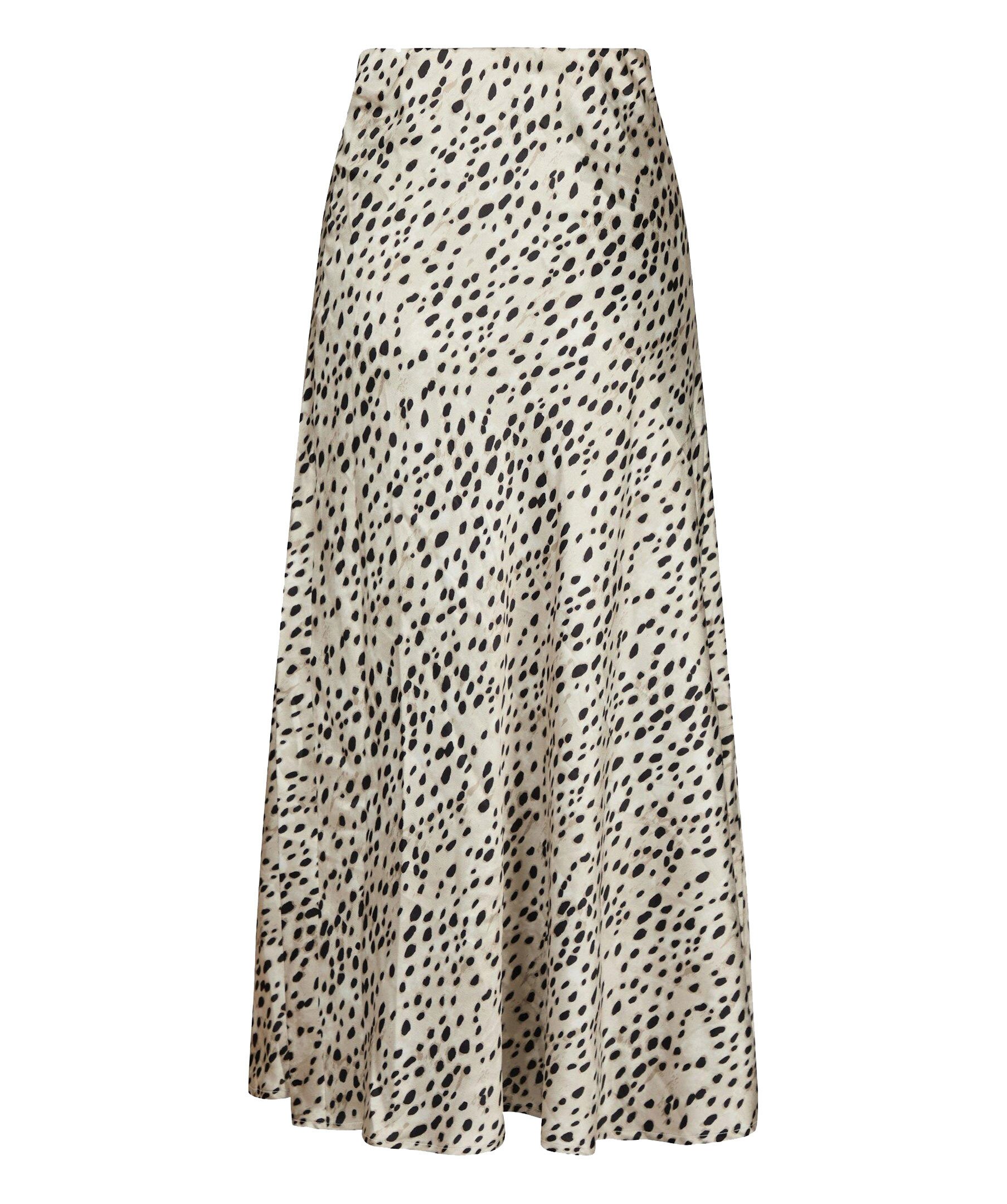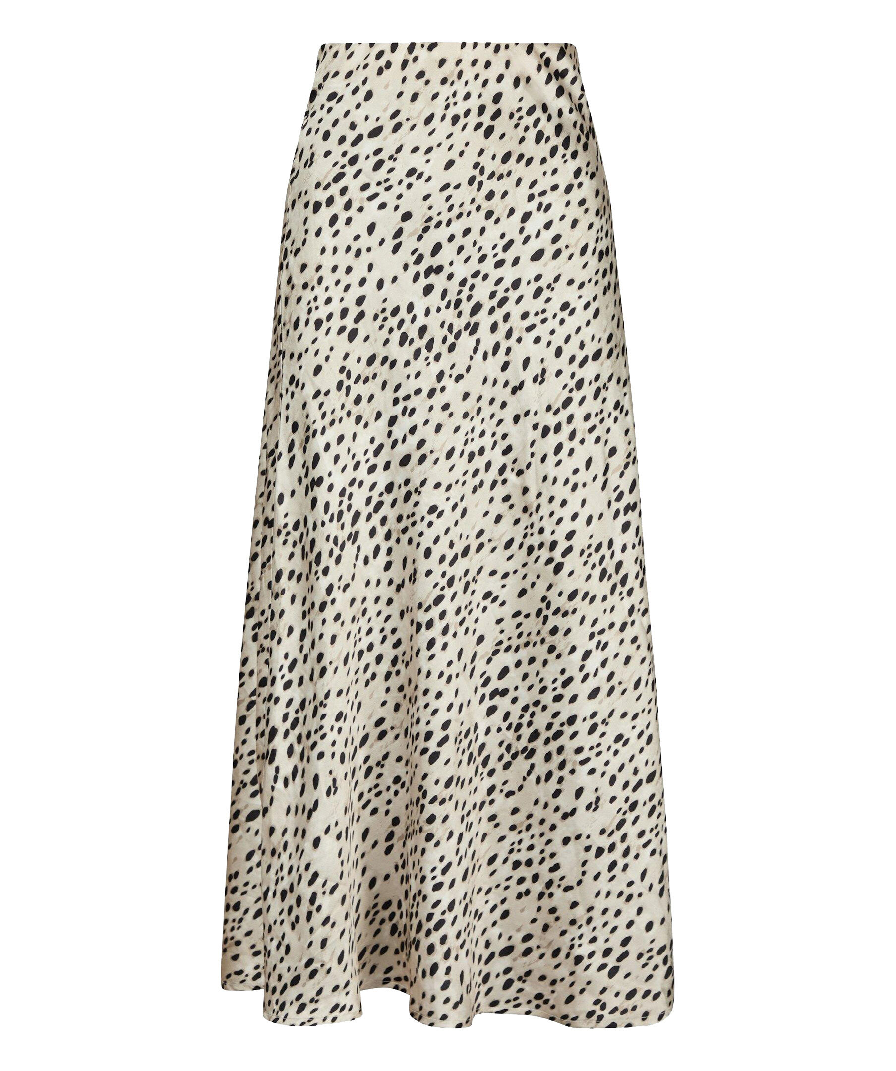 Sandfärgad, mönstrad satinkjol från Neo Noir med elastisk midja. Tillverkad i polyester.