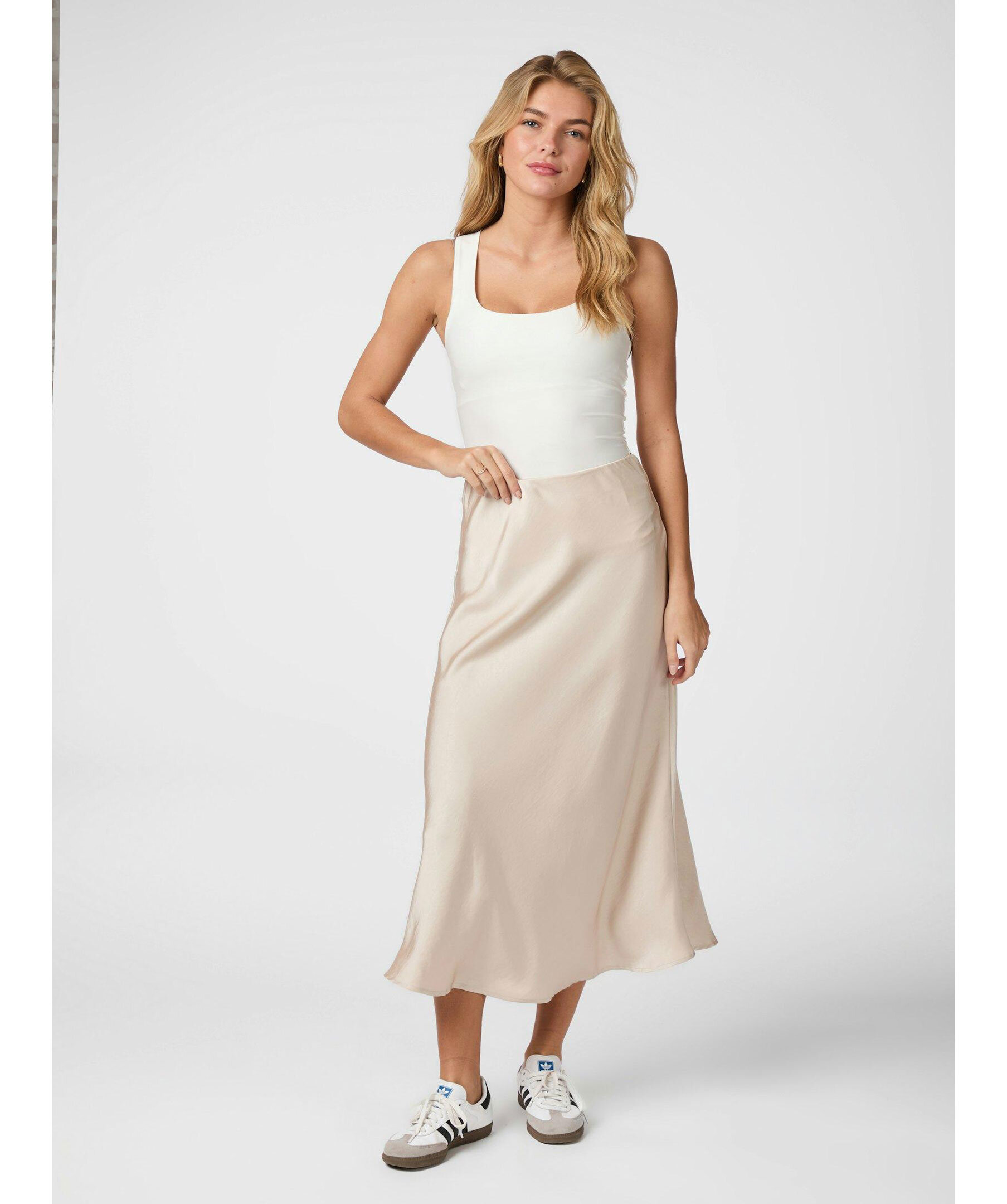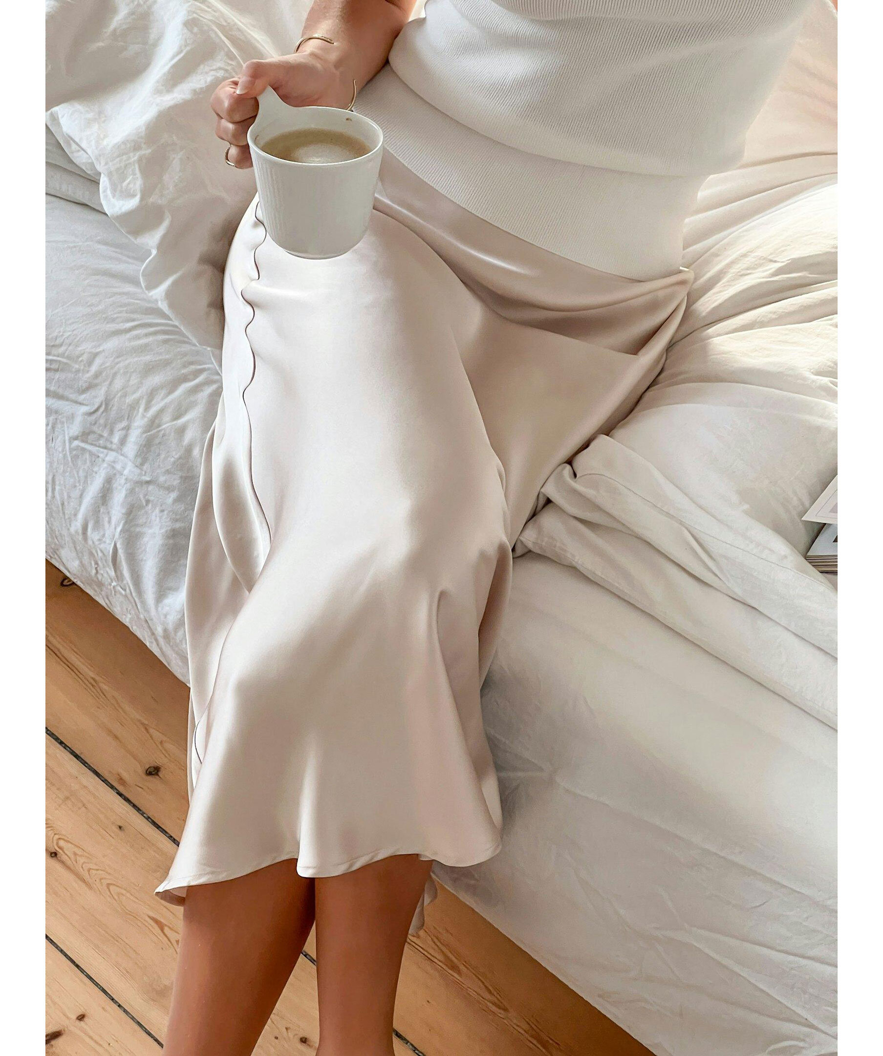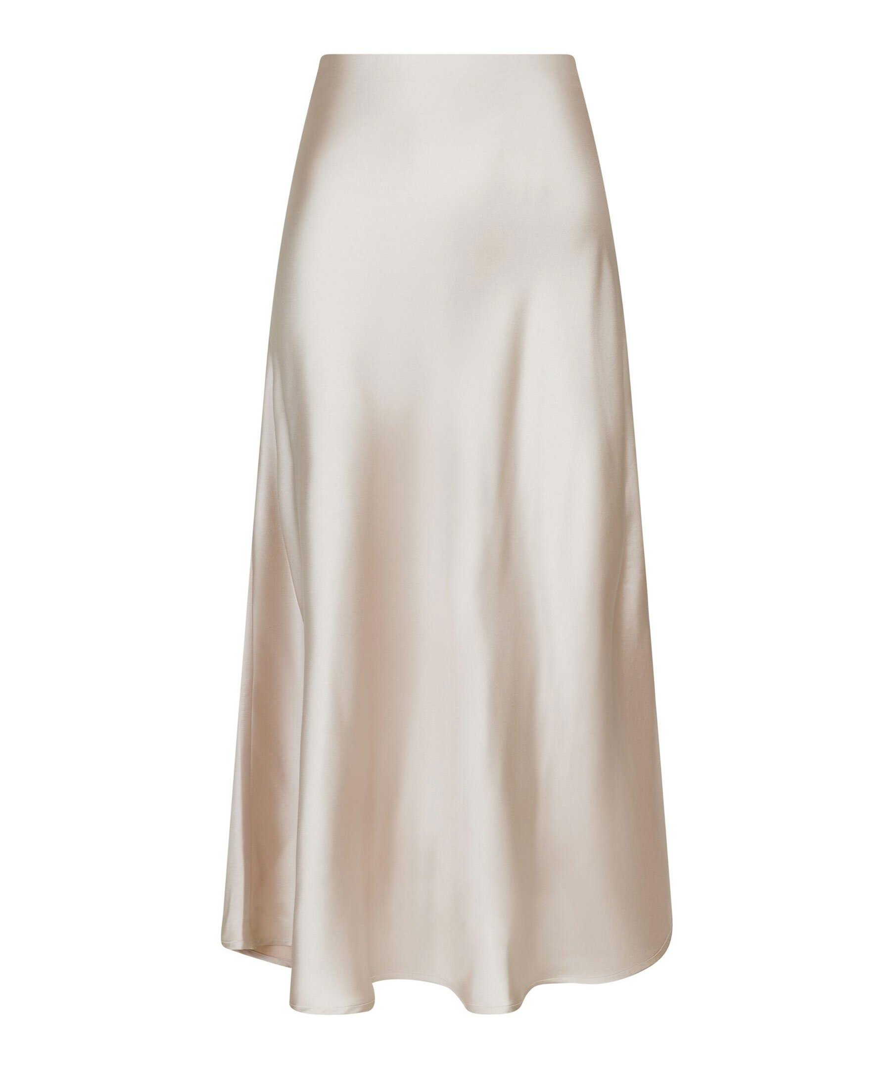 Champangnefärgad midi-lång kjol från Neo Noir. Resår på insidan i midjan och snedskuren med en mycket smickrande passform. Tillverkad i 100% Polyester.