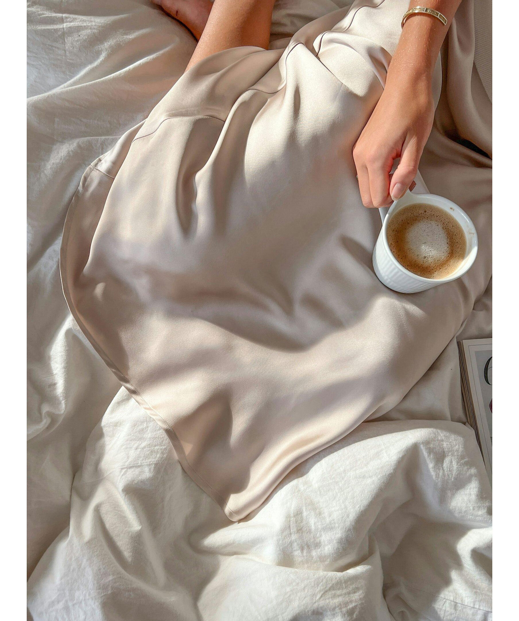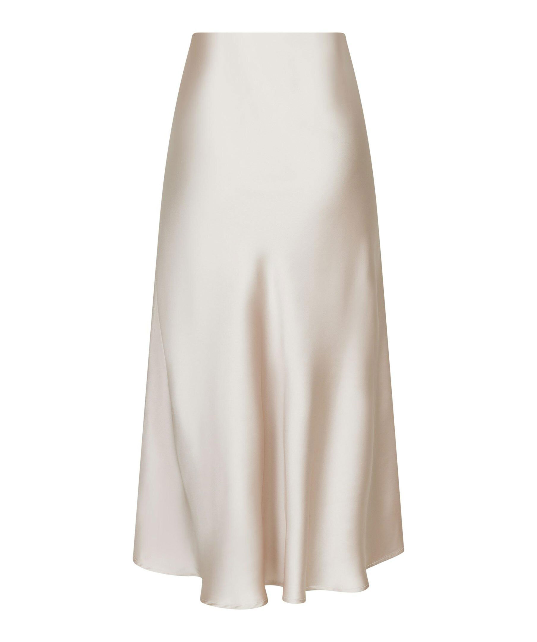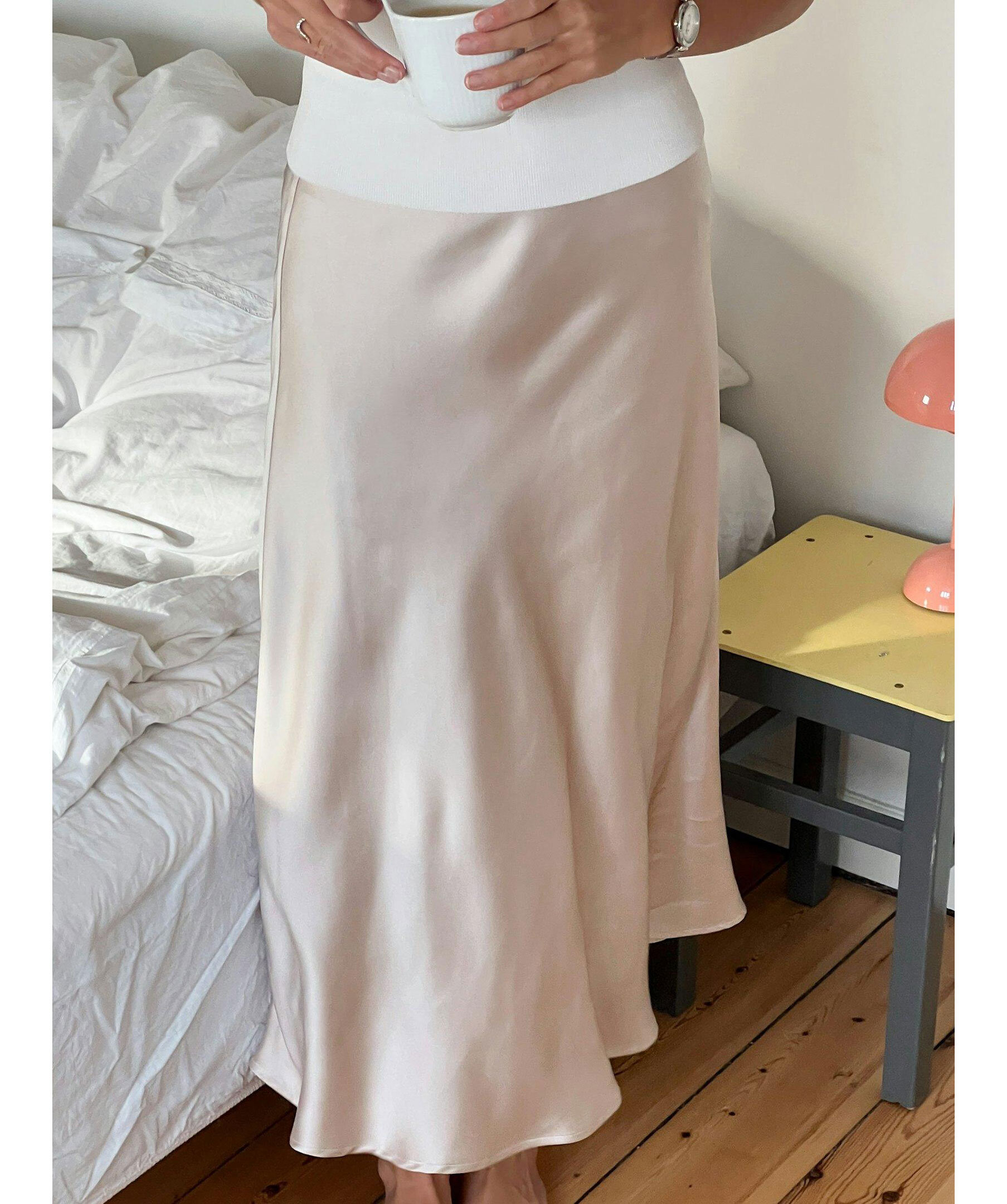 Champangnefärgad midi-lång kjol från Neo Noir. Resår på insidan i midjan och snedskuren med en mycket smickrande passform. Tillverkad i 100% Polyester.