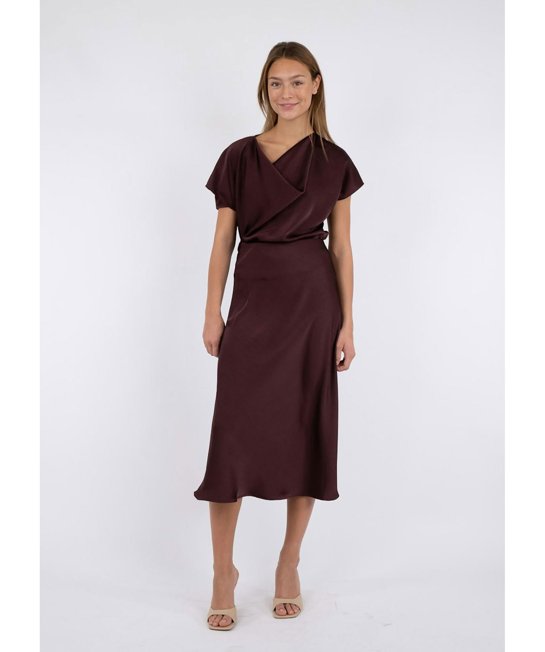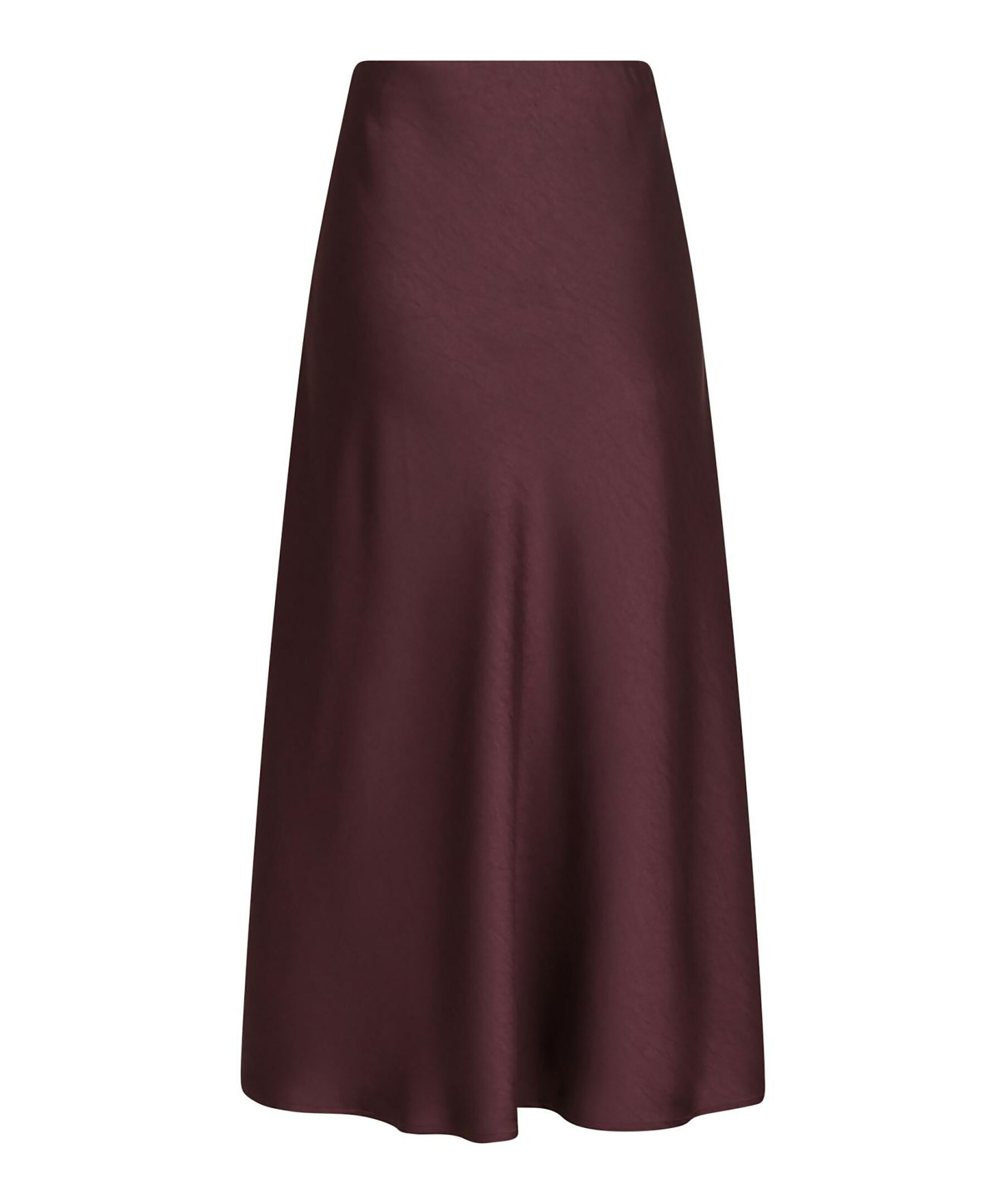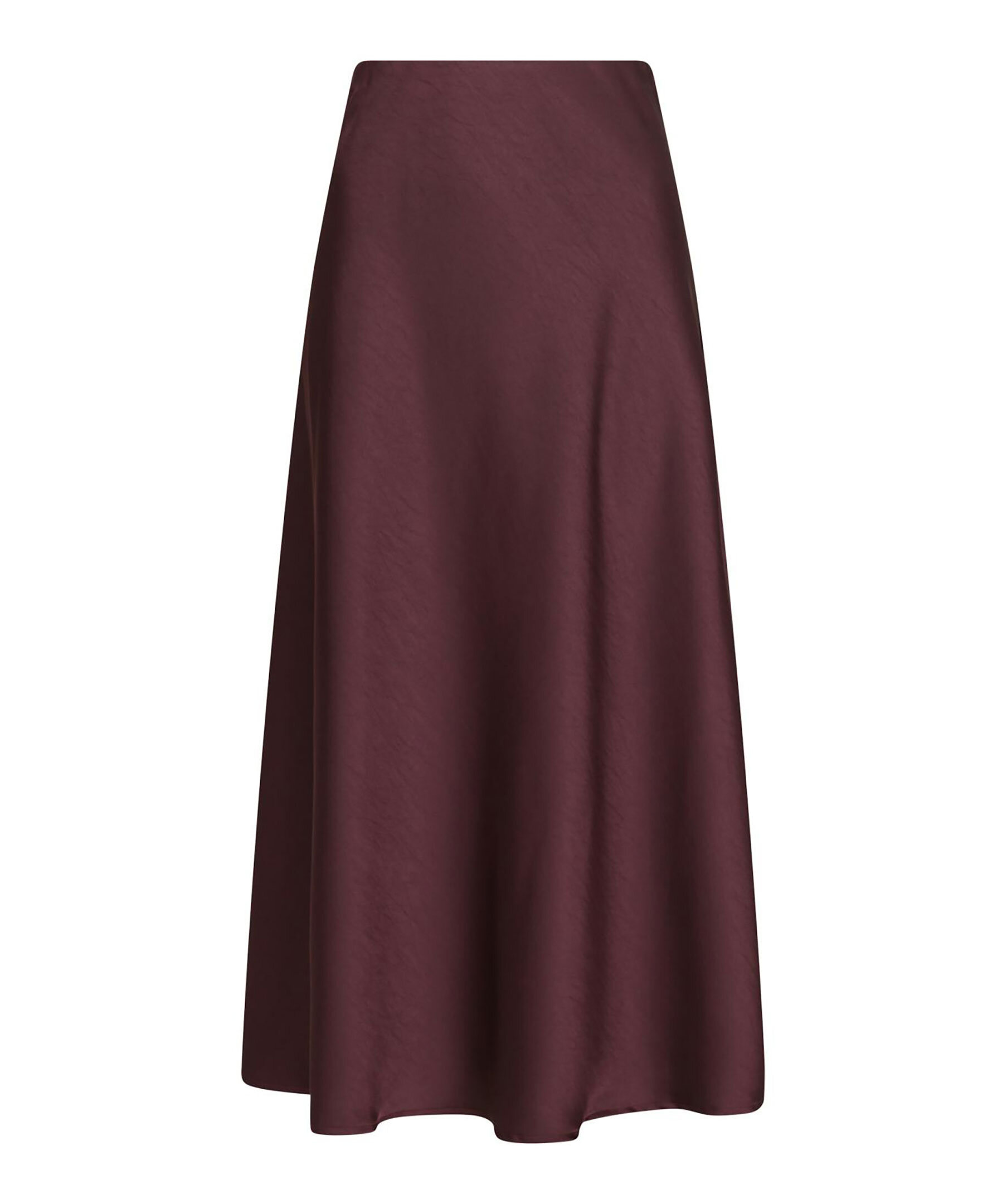 Vinröd, midi-lång kjol från Neo Noir. Resår på insidan i midjan och snedskuren med en mycket smickrande passform. Tillverkad i 100% Polyester.