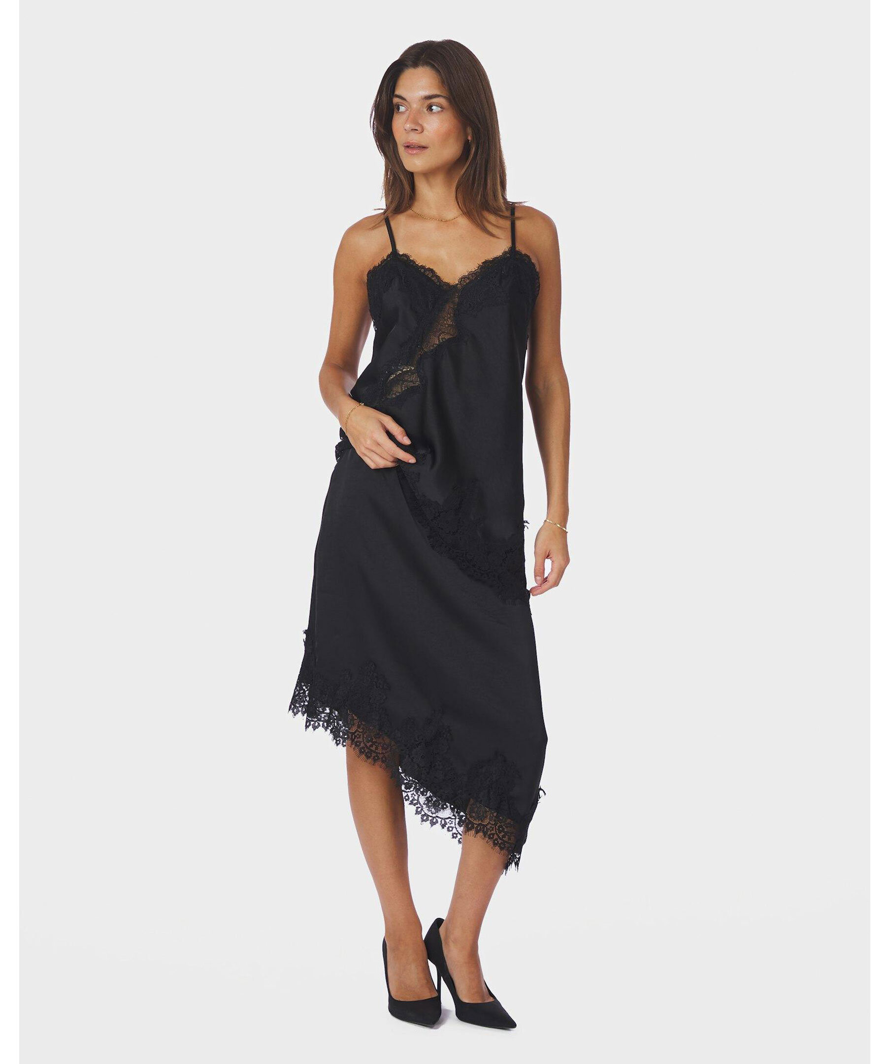 Kjol med spetsdetaljer från Neo Noir. Kjolen har en asymmetrisk design och är tillverkade i en vacker satinkvalitet.