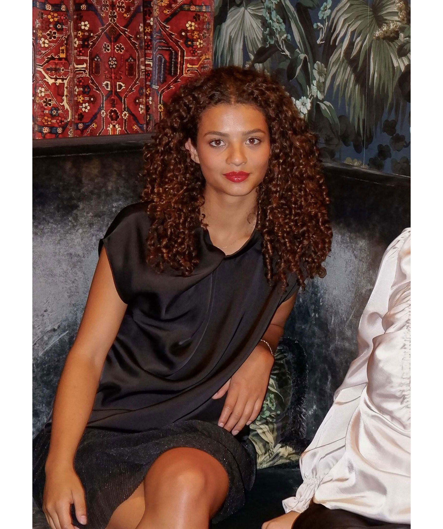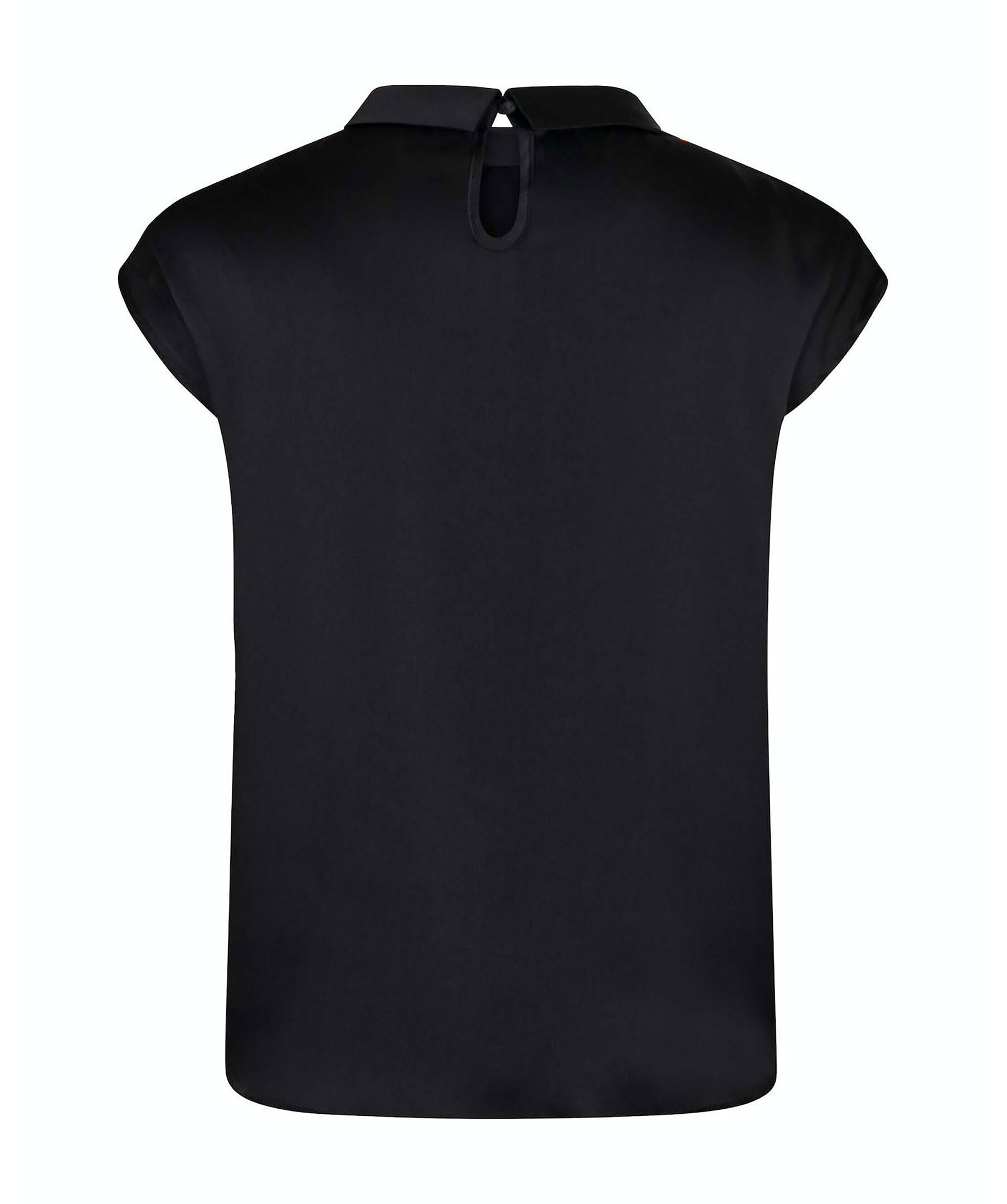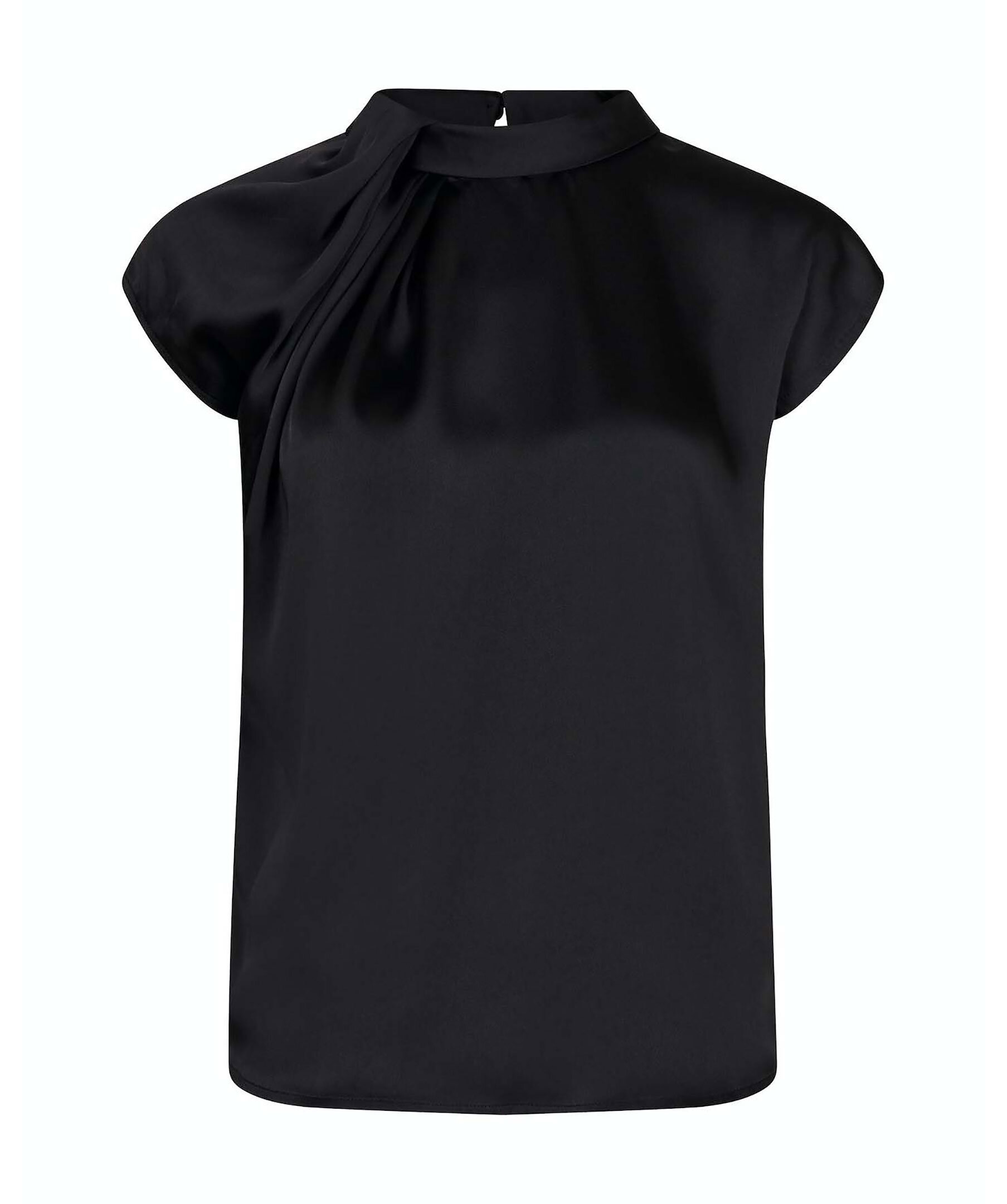 Svart satinblus från Neo Noir. Hög krage med knytdetalj med drapering. Knäppning baktill. Avslappnad passform. Tillverkad i polyester.