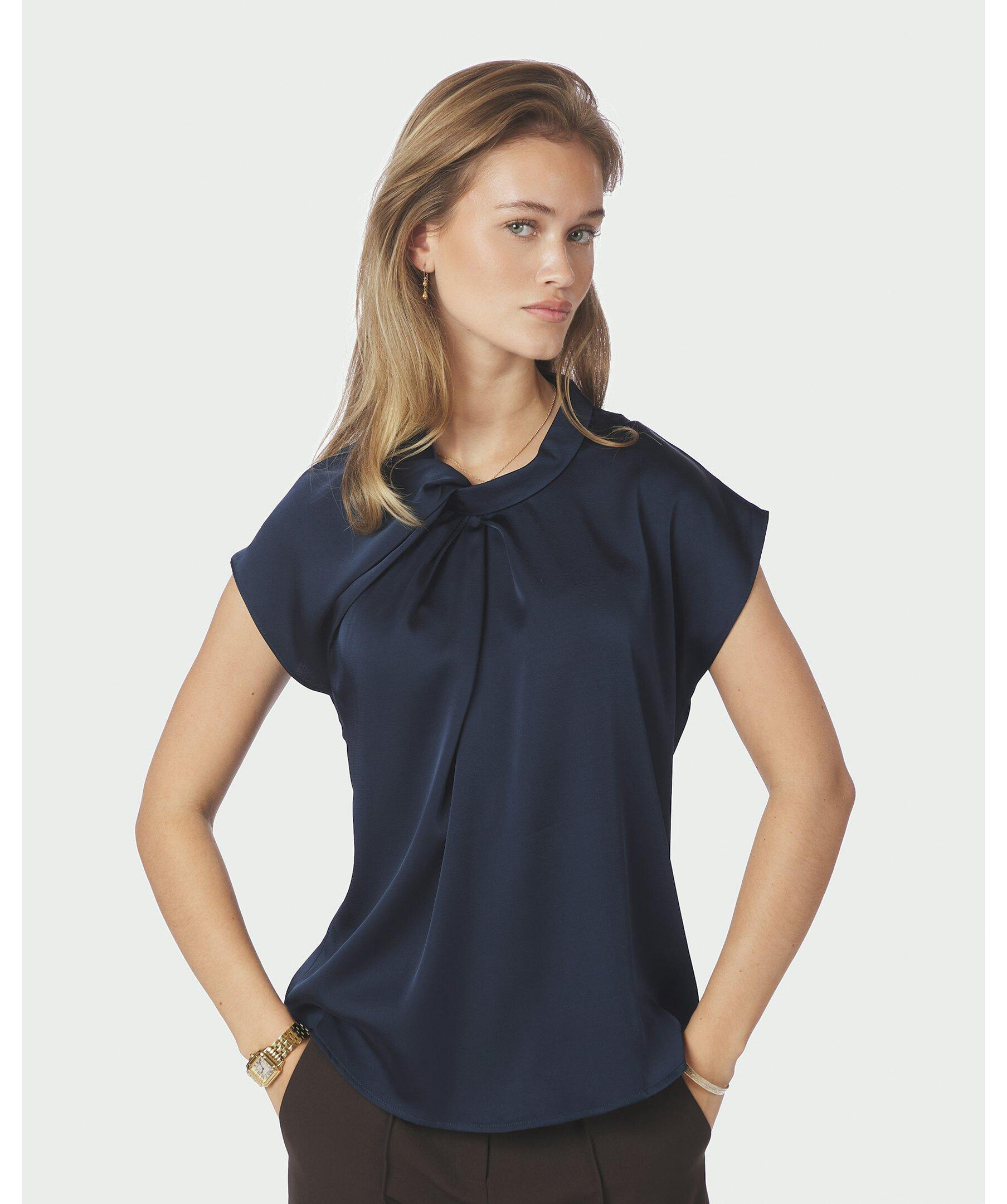 Neo Noir Fleur Drapy Satin Blouse - Navy