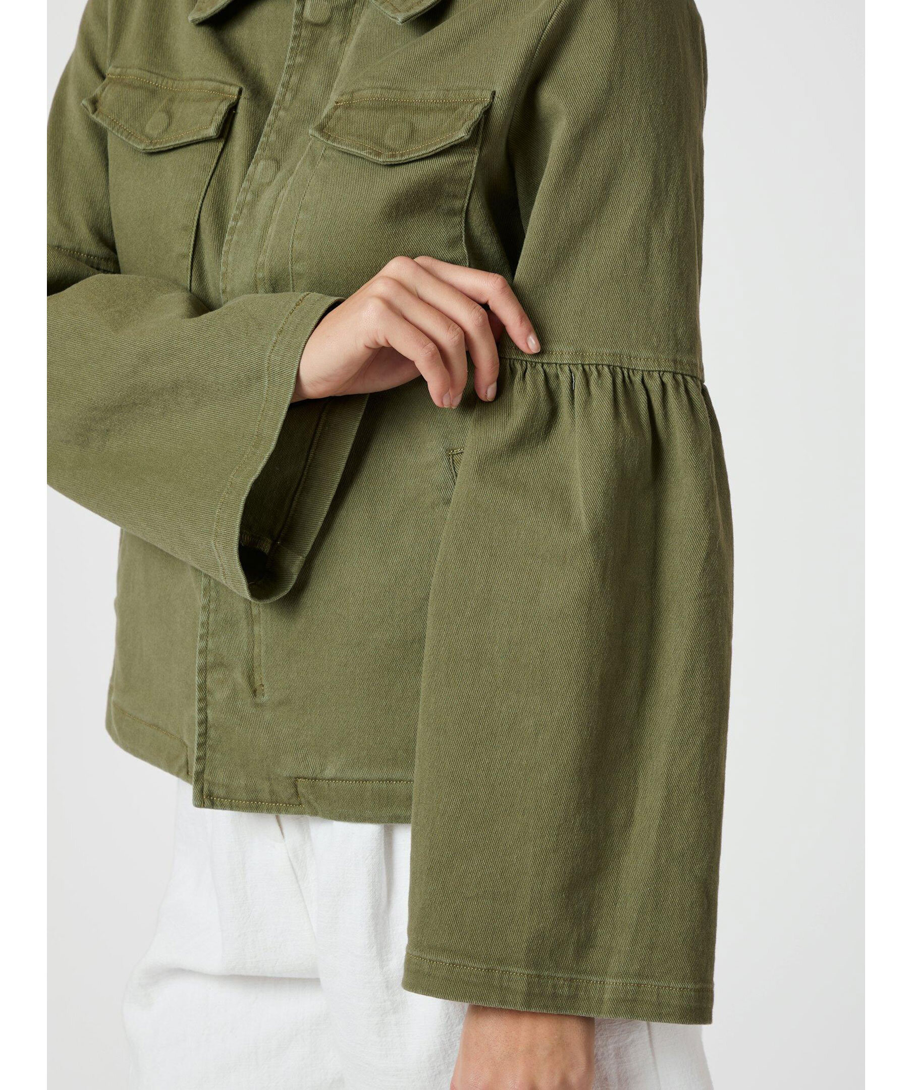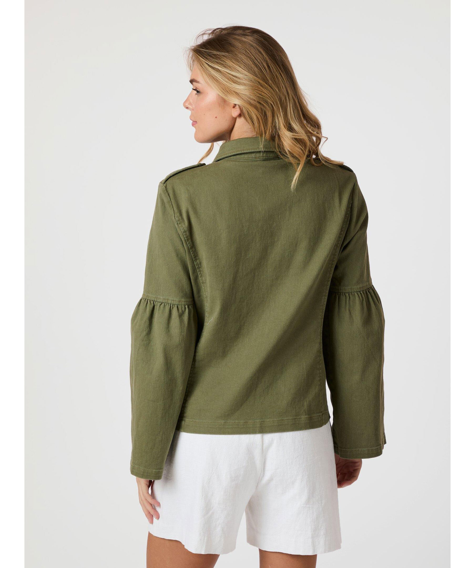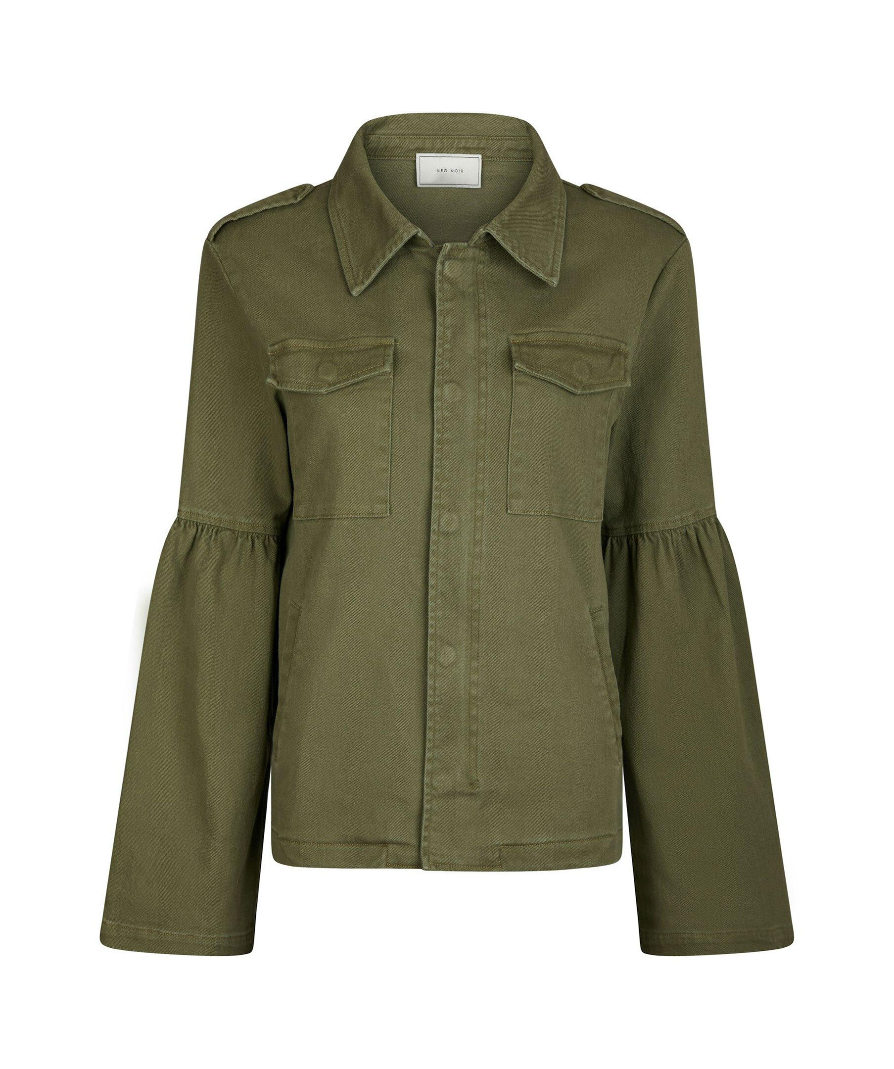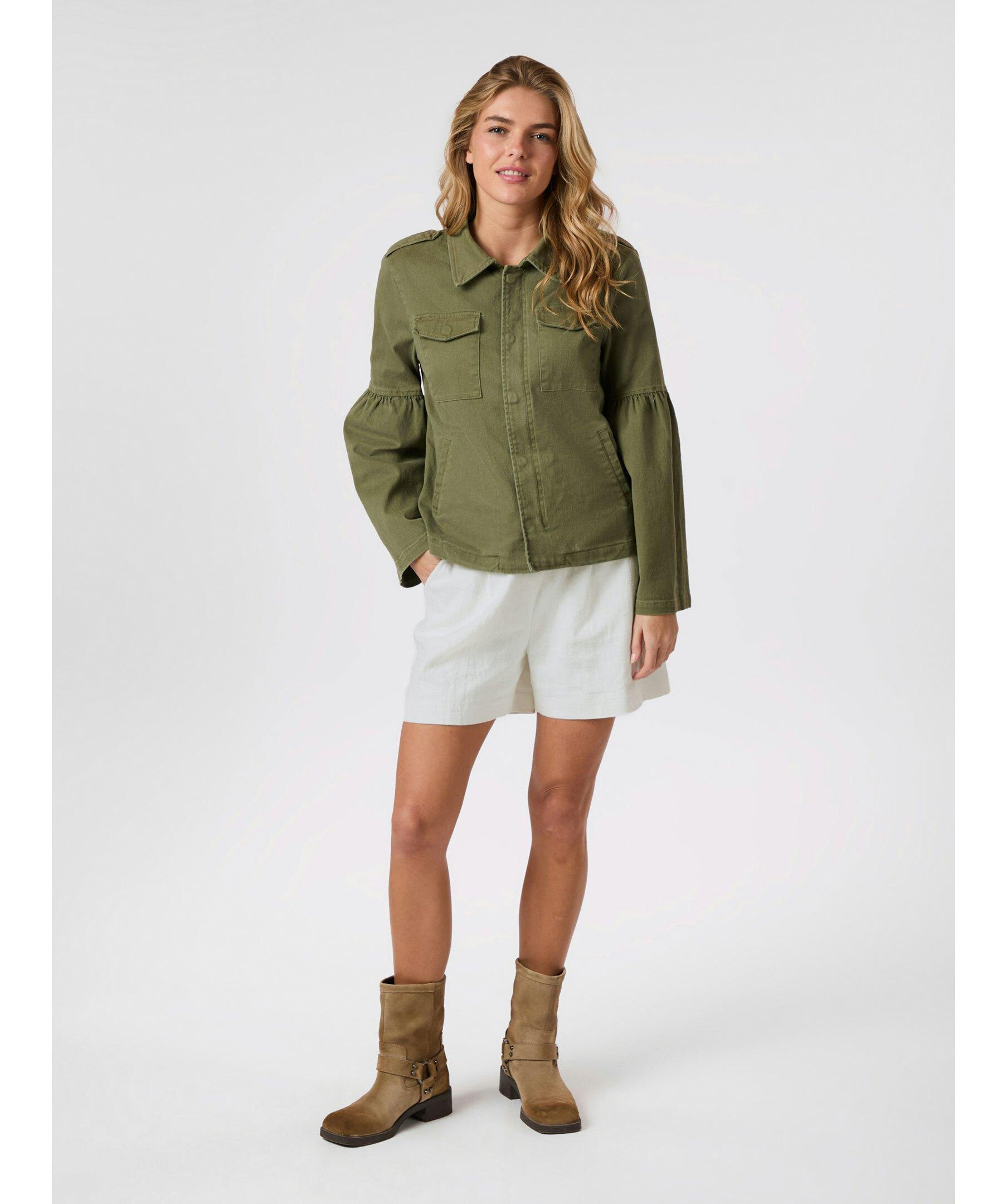 Cool army inspirerad jacka med fickdetaljer och dragkedja framtill och vida ärmar. Kvaliteten är mjuk och tvättad med lite stretch för bekväm passform. Modellen är 176 cm lång och bär storlek 36.
