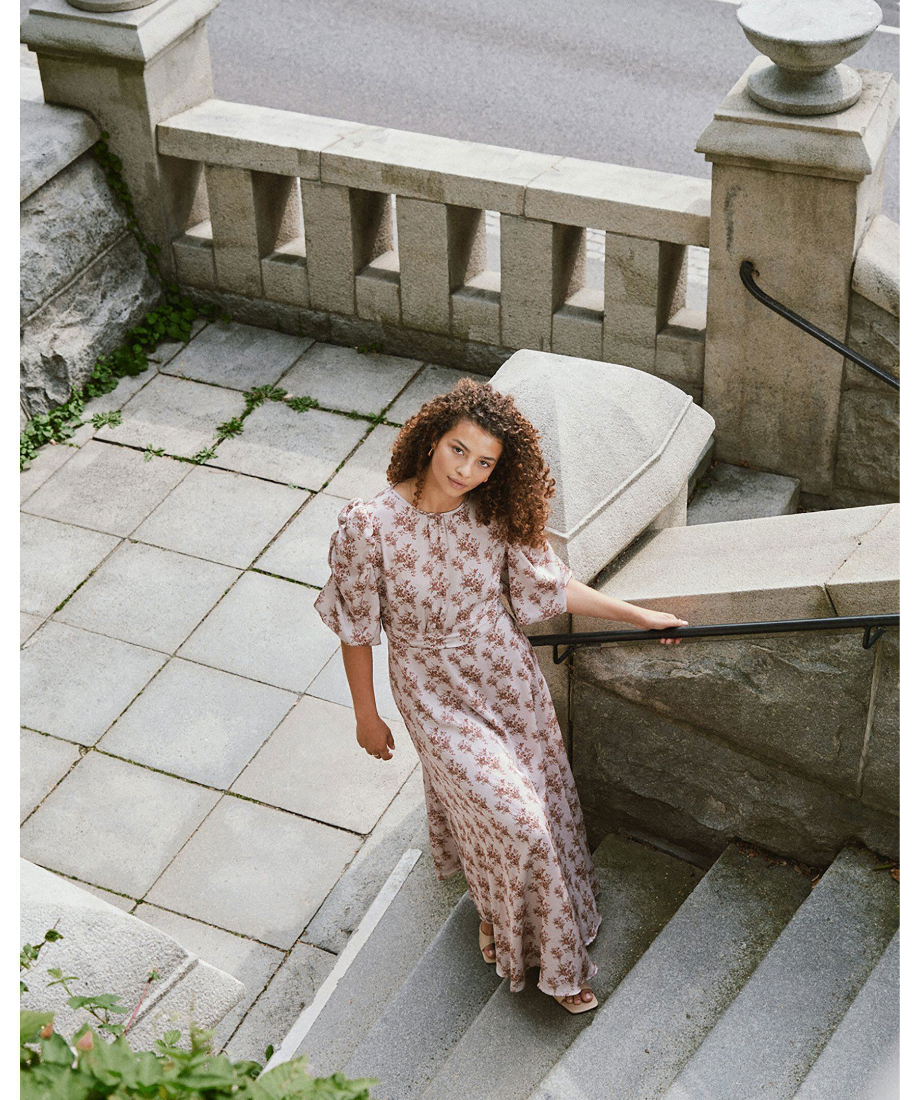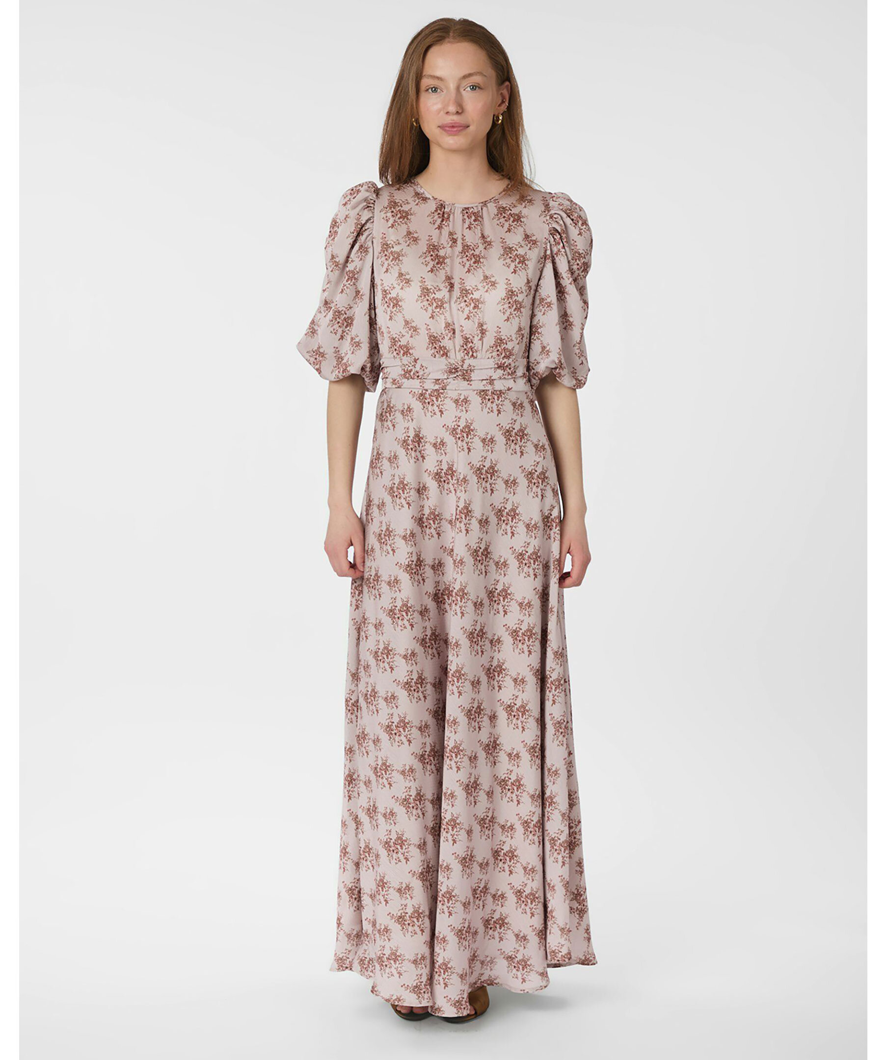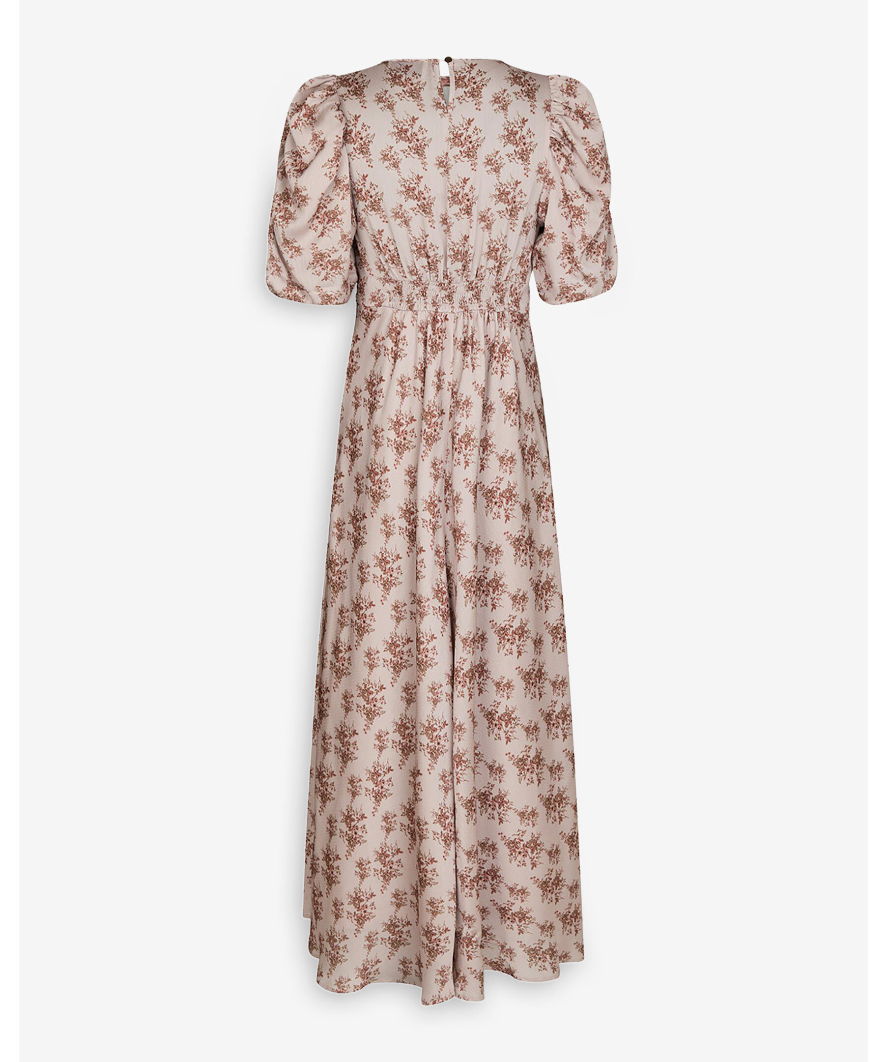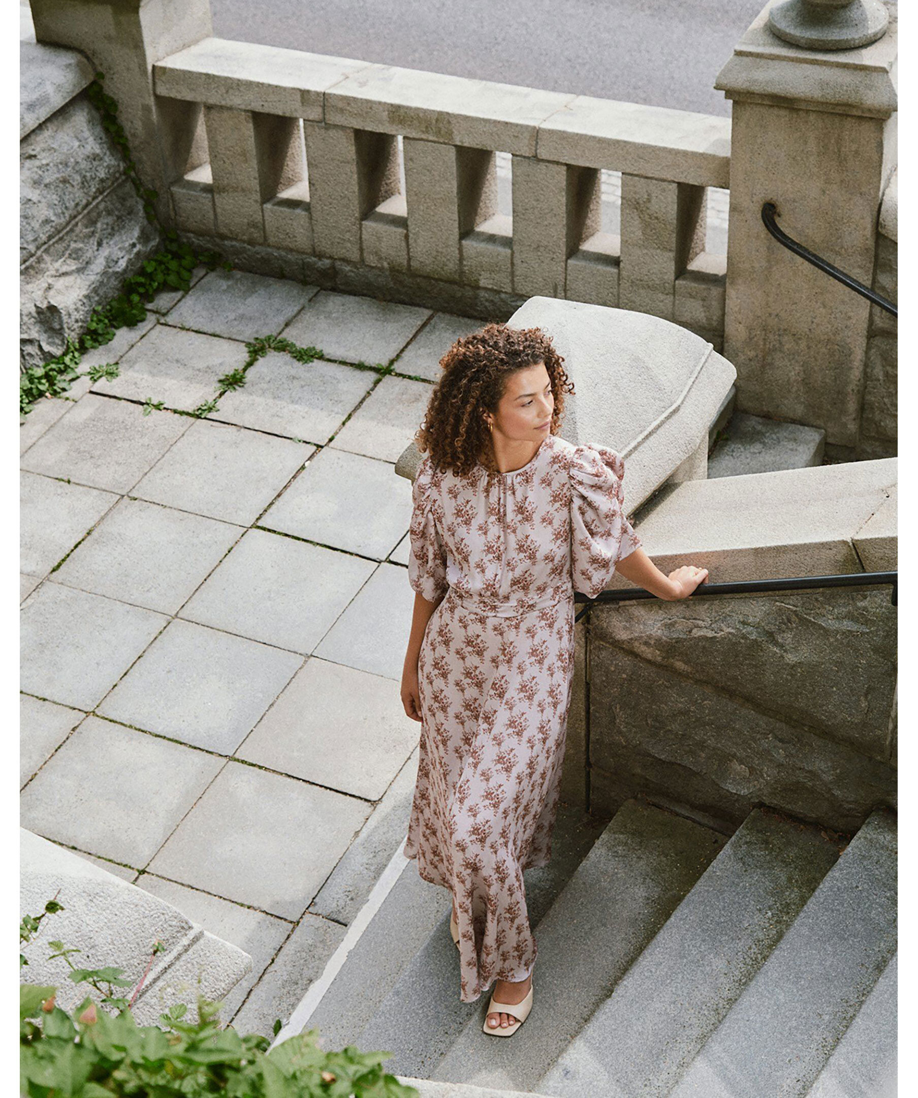 Dusty Rose-klänning från Neo Noir. Klänningen har en feminin, lång design med ett vackert rosprint. Den har trekvartslånga puffärmar och en smockdetalj vid midjan bak. Knappstängning i nacken. Tillverkad i 100% polyester, vilket ger en lätt och luftig känsla. Perfekt för både vardag och fest.