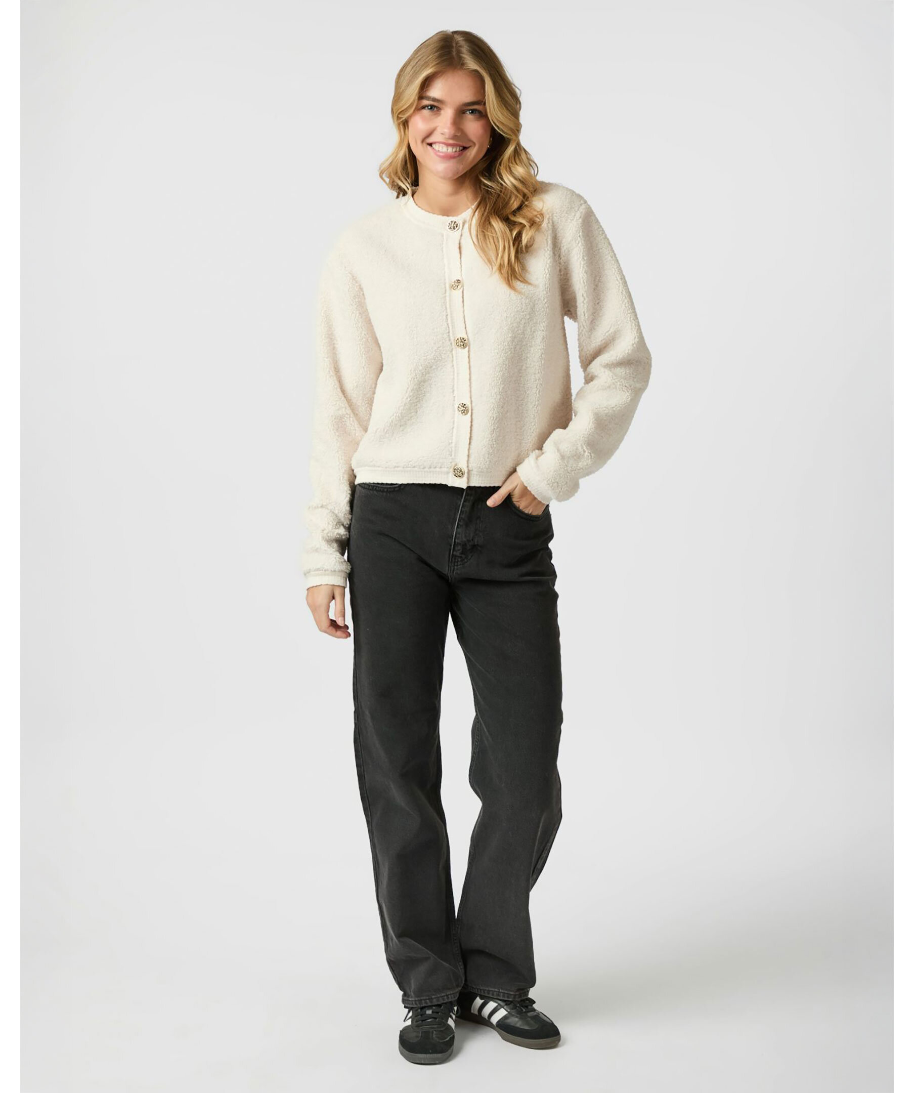 Neo Noir Limo Fluffy Knit Cardigan - Creme