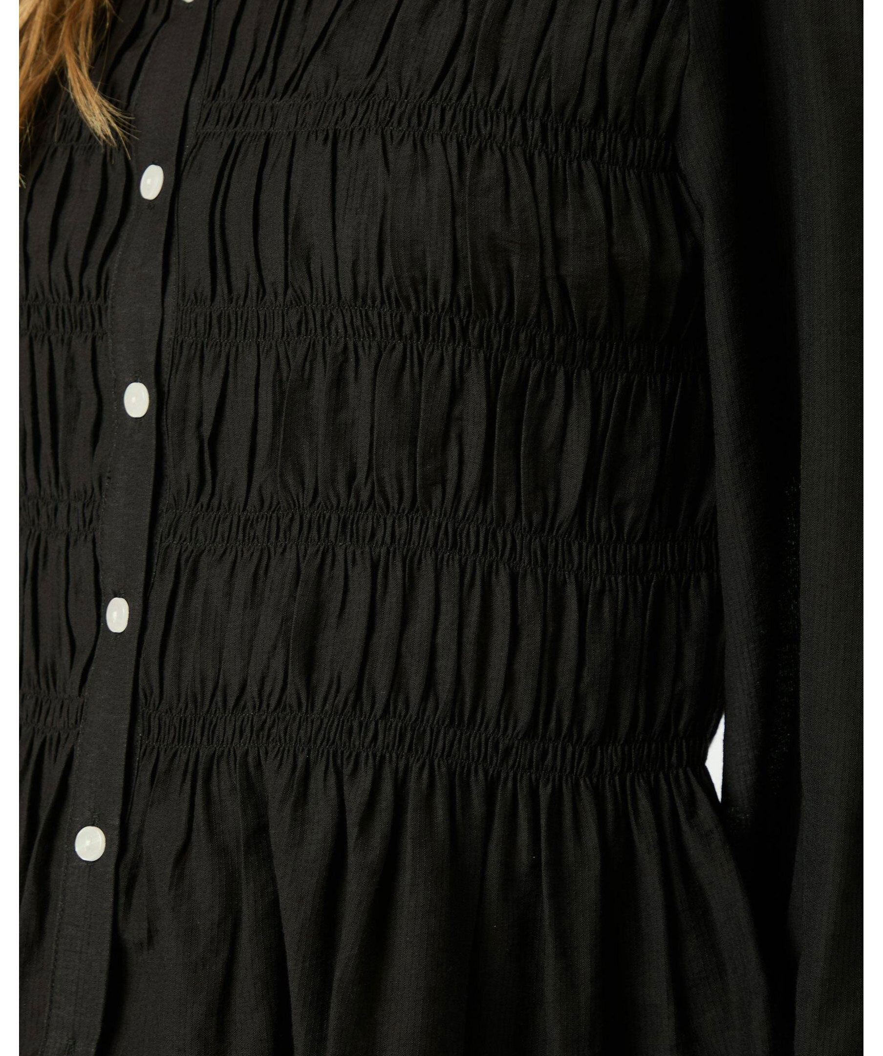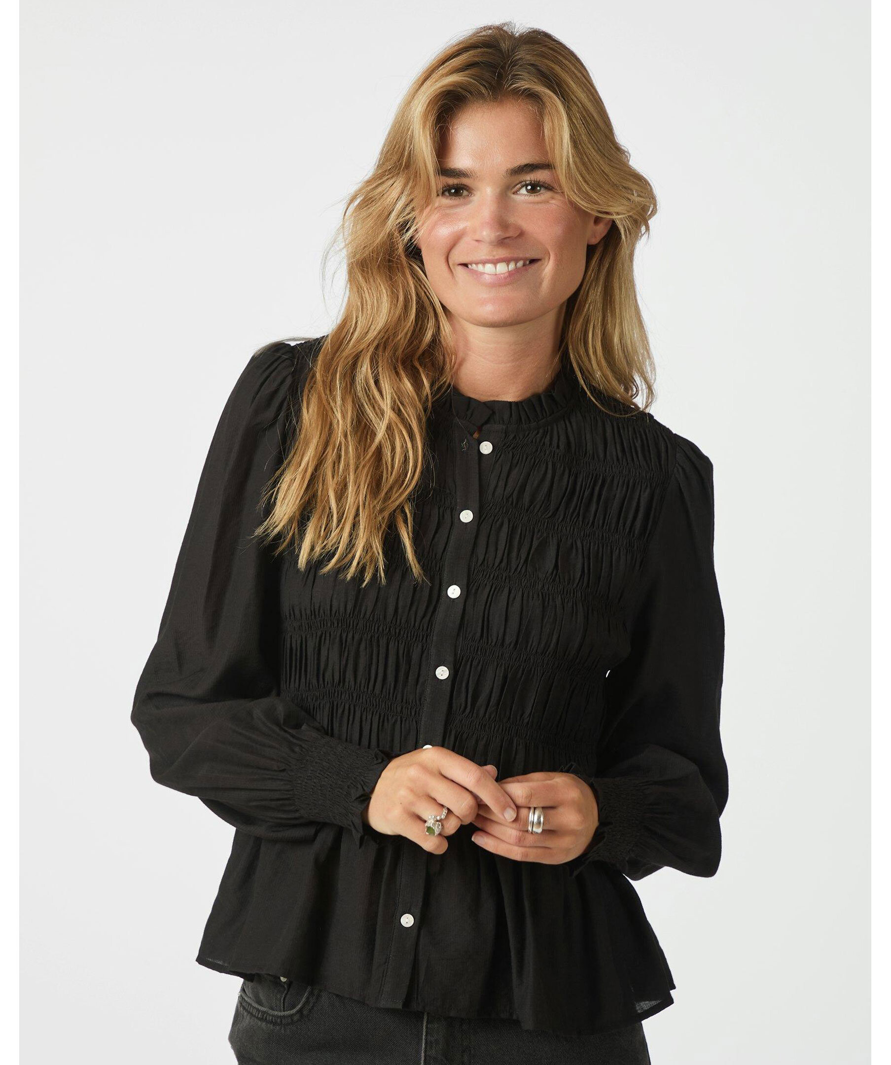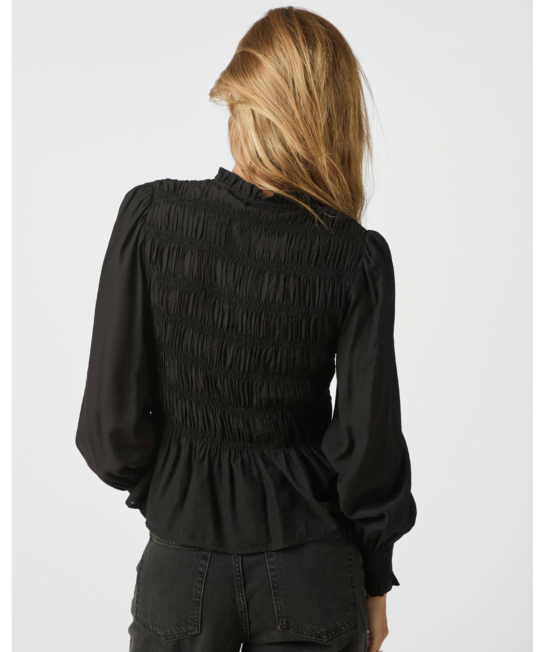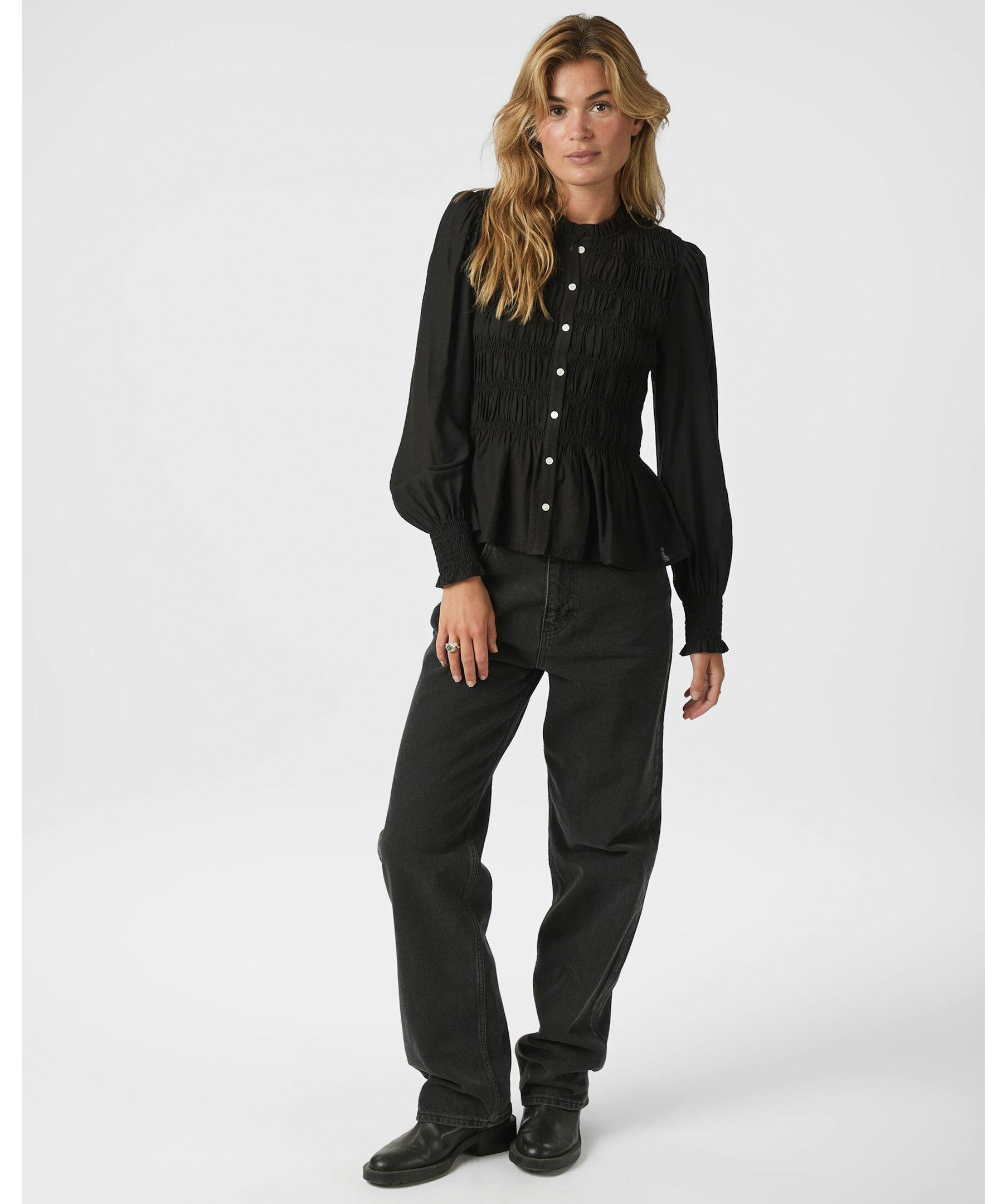 Svart blus från Neo Noir är en elegant och mångsidig topp, designad för både vardag och fest. Den smockade midjan ger en smickrande siluett, medan de puffiga ärmarna och den feminina halsringningen tillför en sofistikerad touch. Blusen är tillverkad i ett lätt och luftigt material, vilket gör den bekväm att bära under hela dagen.