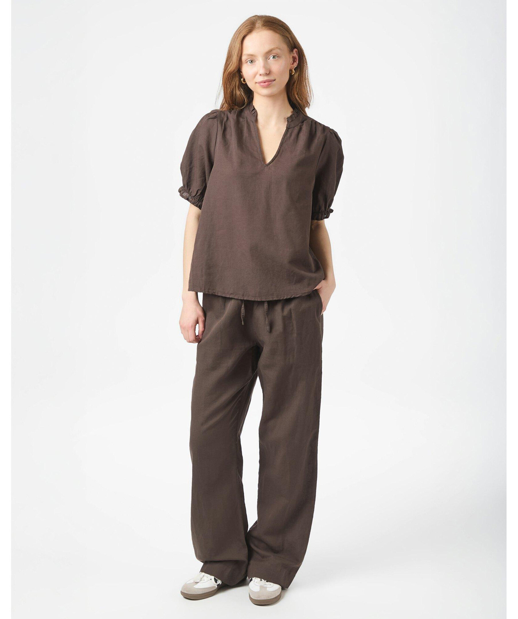 Neo Noir Odesa Linen Blouse - Mörkbrun