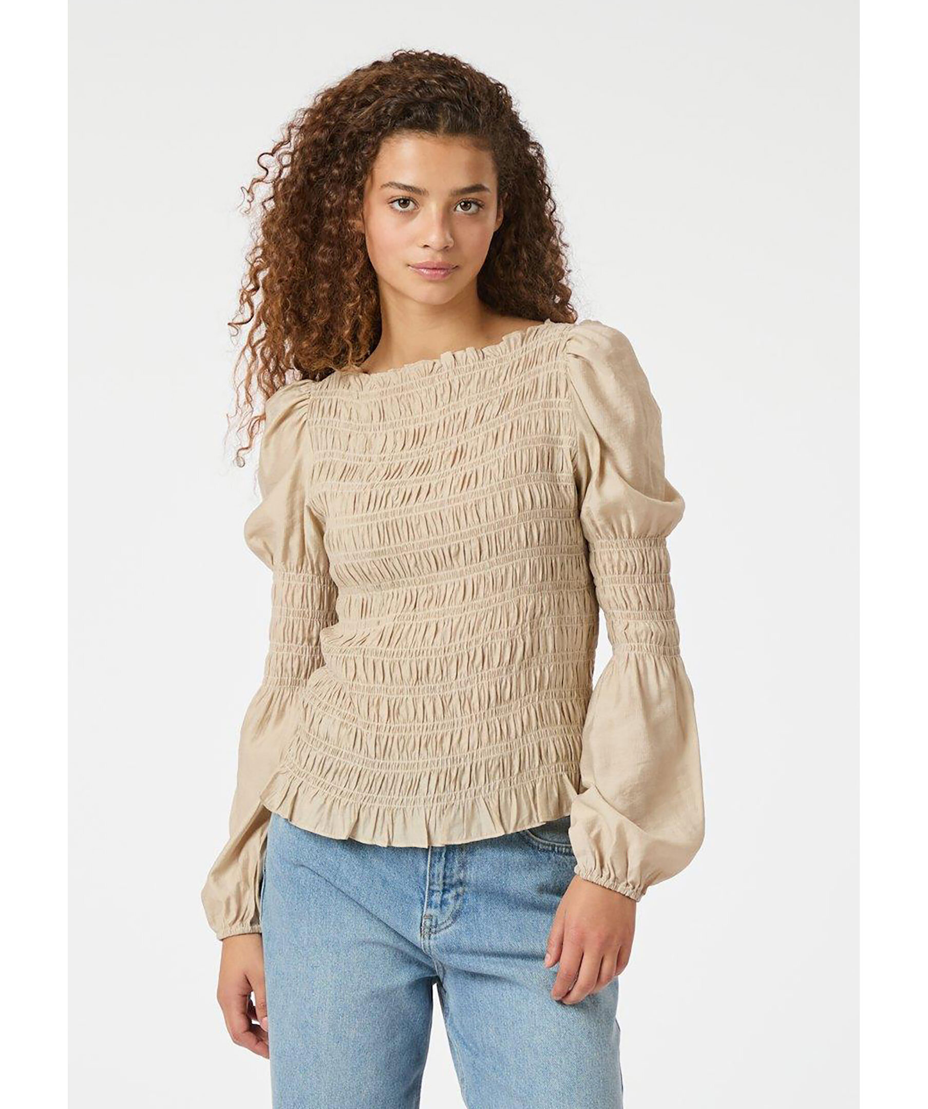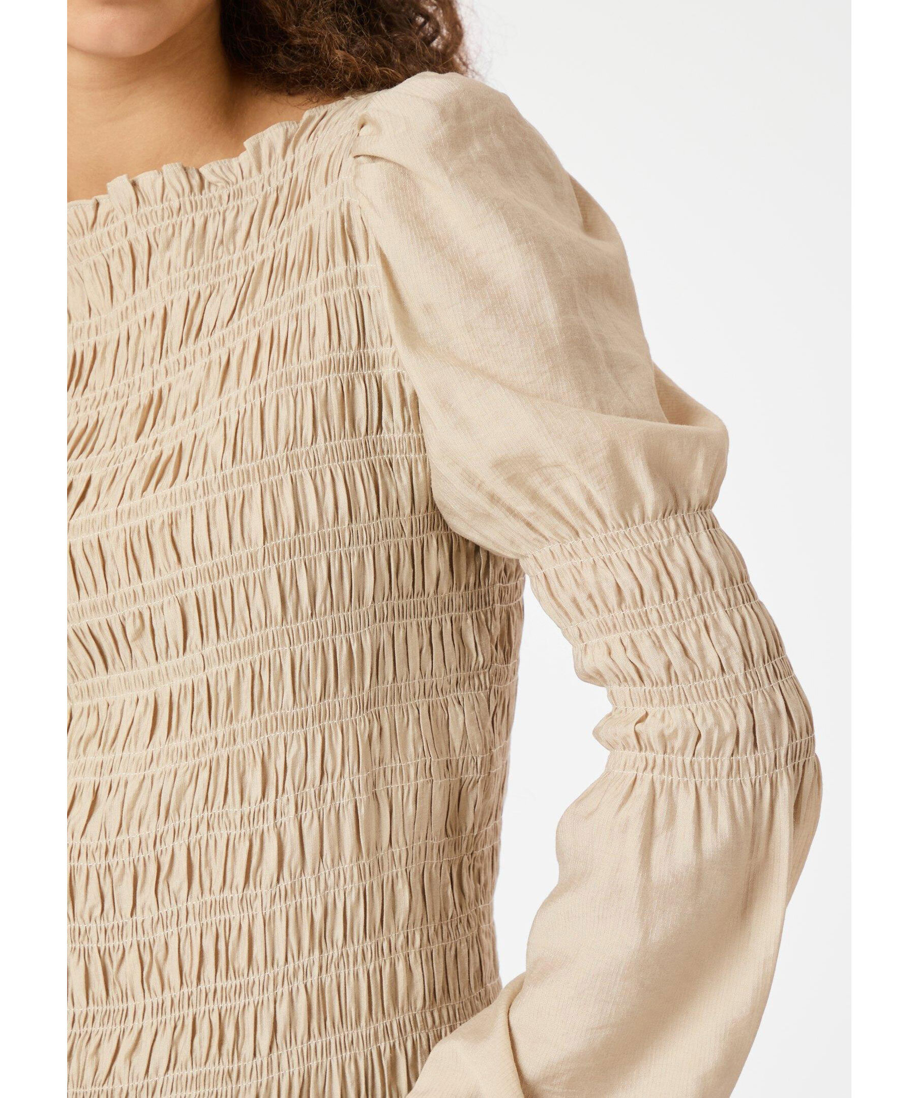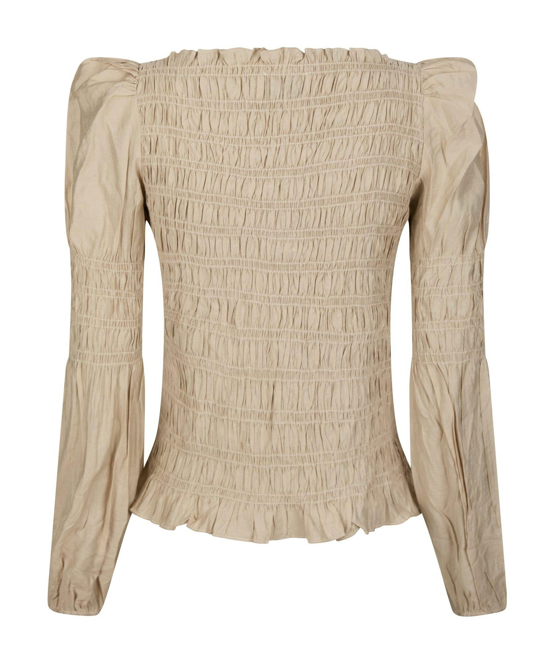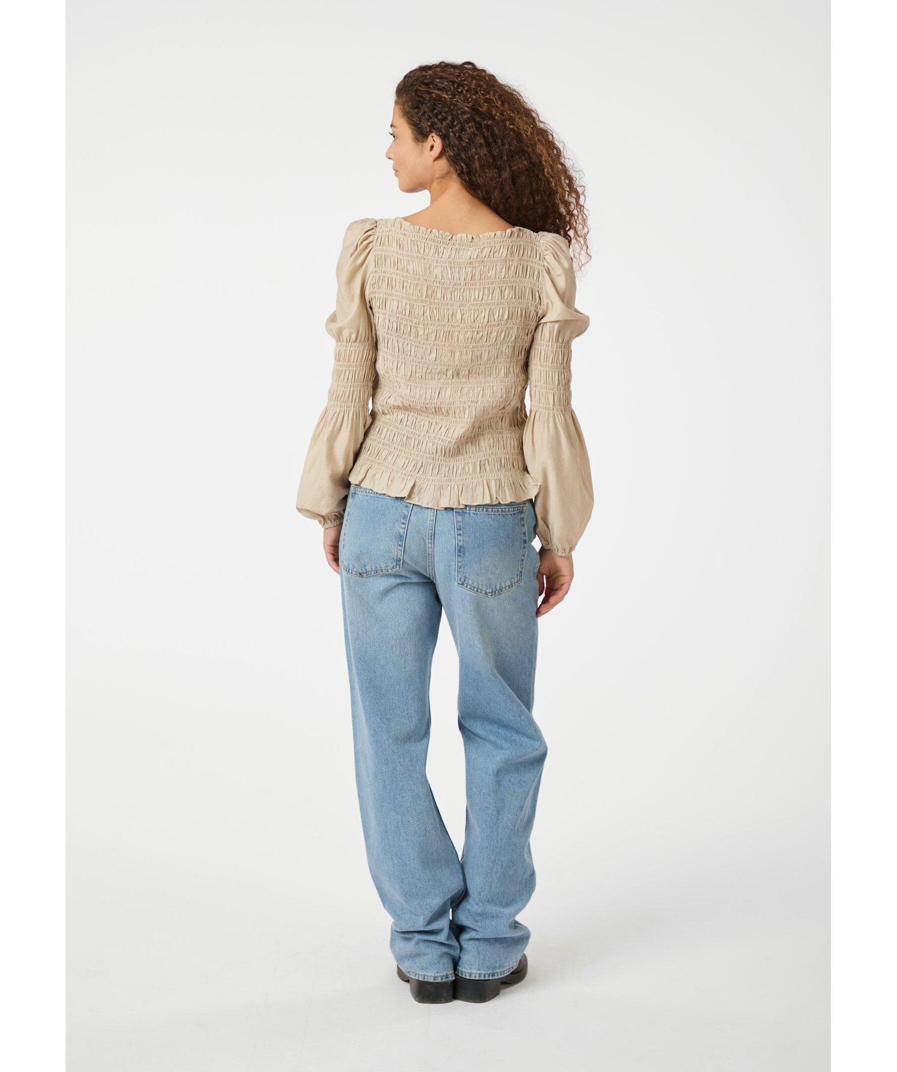 Sandfärgad topp med långa ärmar från Neo Noir. Toppen har åtsittande smockdetalj fram och bak samt puffärmar med ballongeffekt. Tillverkad i polyester.