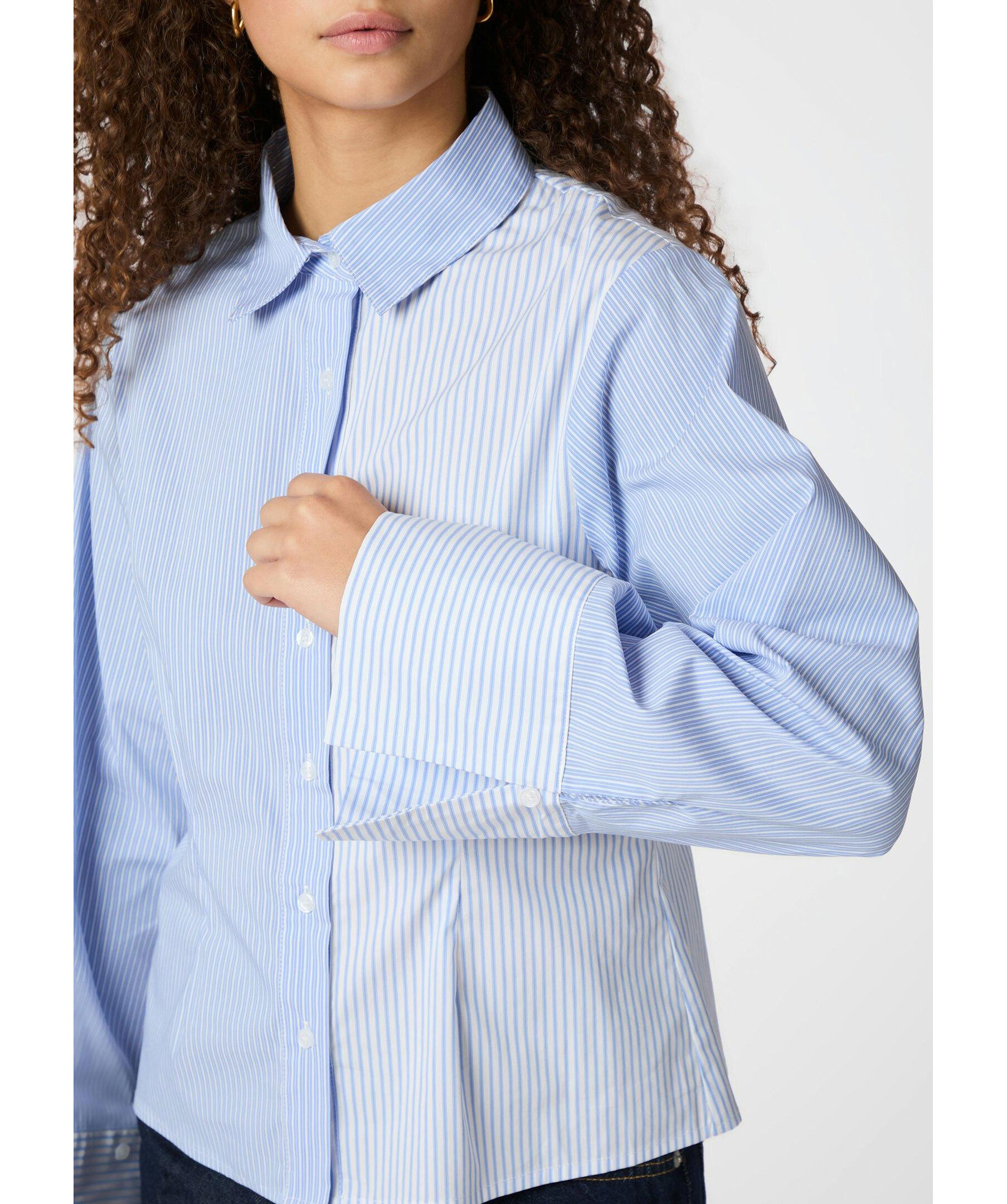 Blå, randig skjorta från Neo Noir. Skjortan stängs med knappar framtill och har vida ärmar samt en mix av två ränder. Tillverkad i en bomullsblandning.