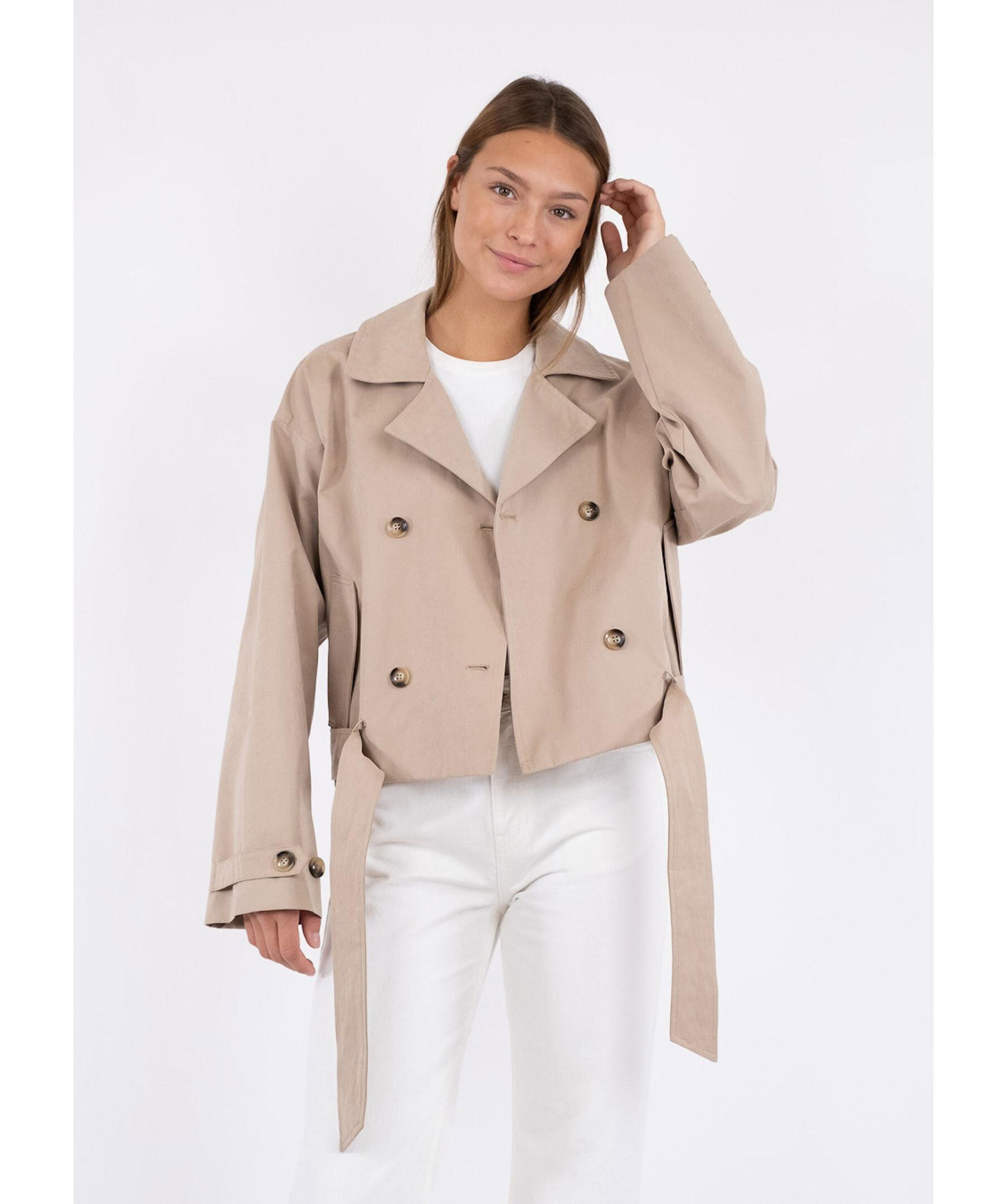Beige, kort trenchjacka från Neo Noir. Detaljer som dubbelknäppta knappar, snäpprem och skärp. Tillverkad i en polyester- och bomullsblandning.