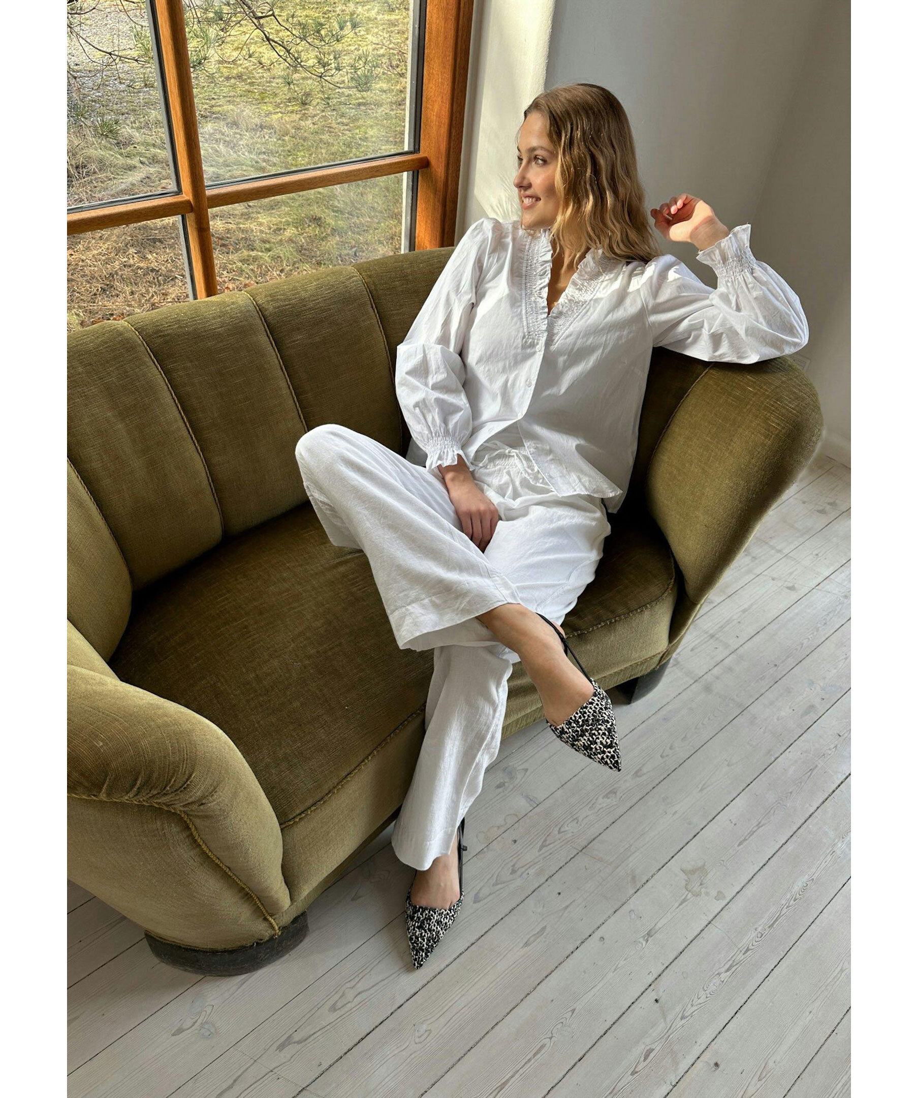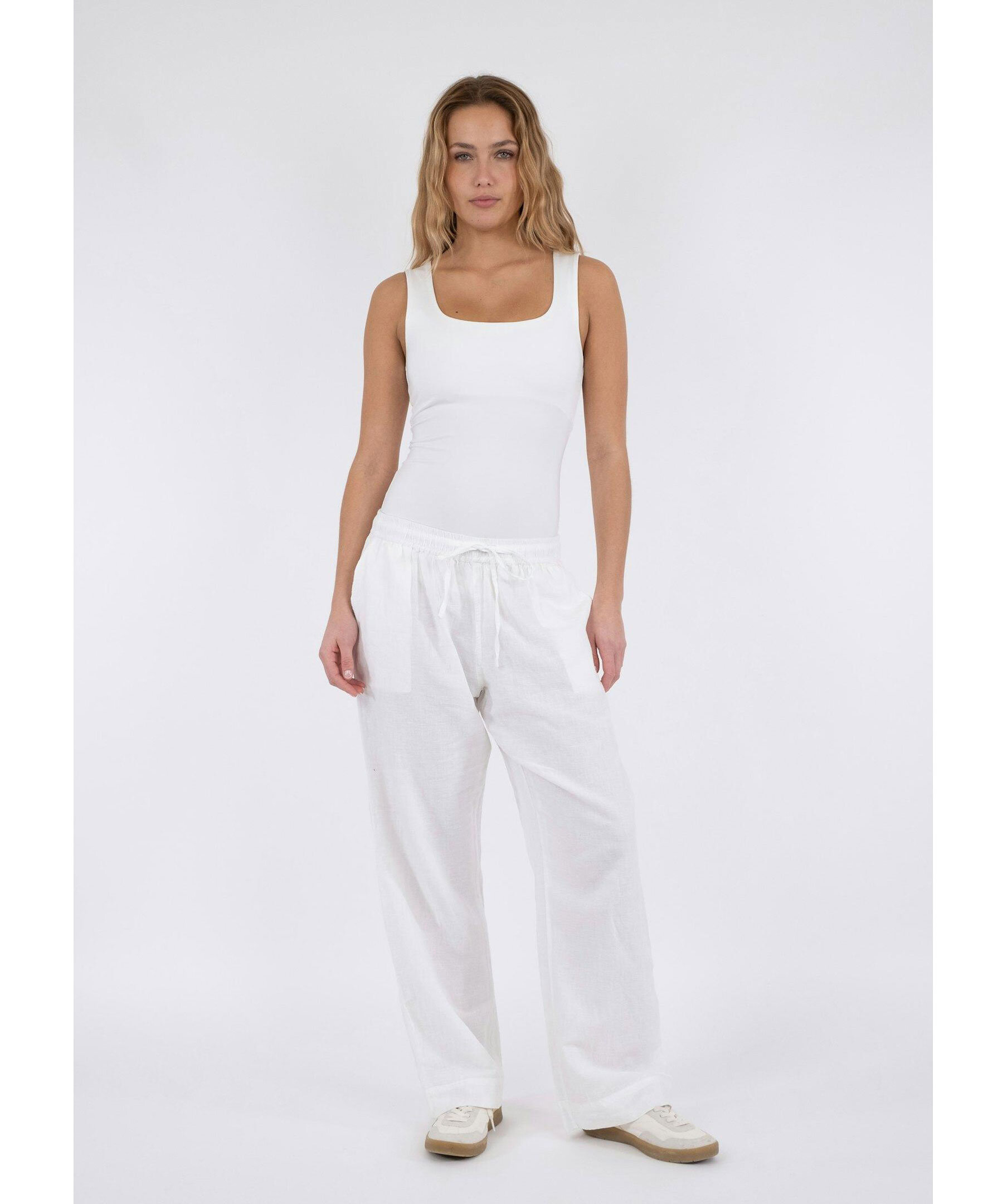 Vita linnebyxor från Neo Noir. Resår och dragsko i midjan samt två sidfickor. Tillverkade i en linneblandning.