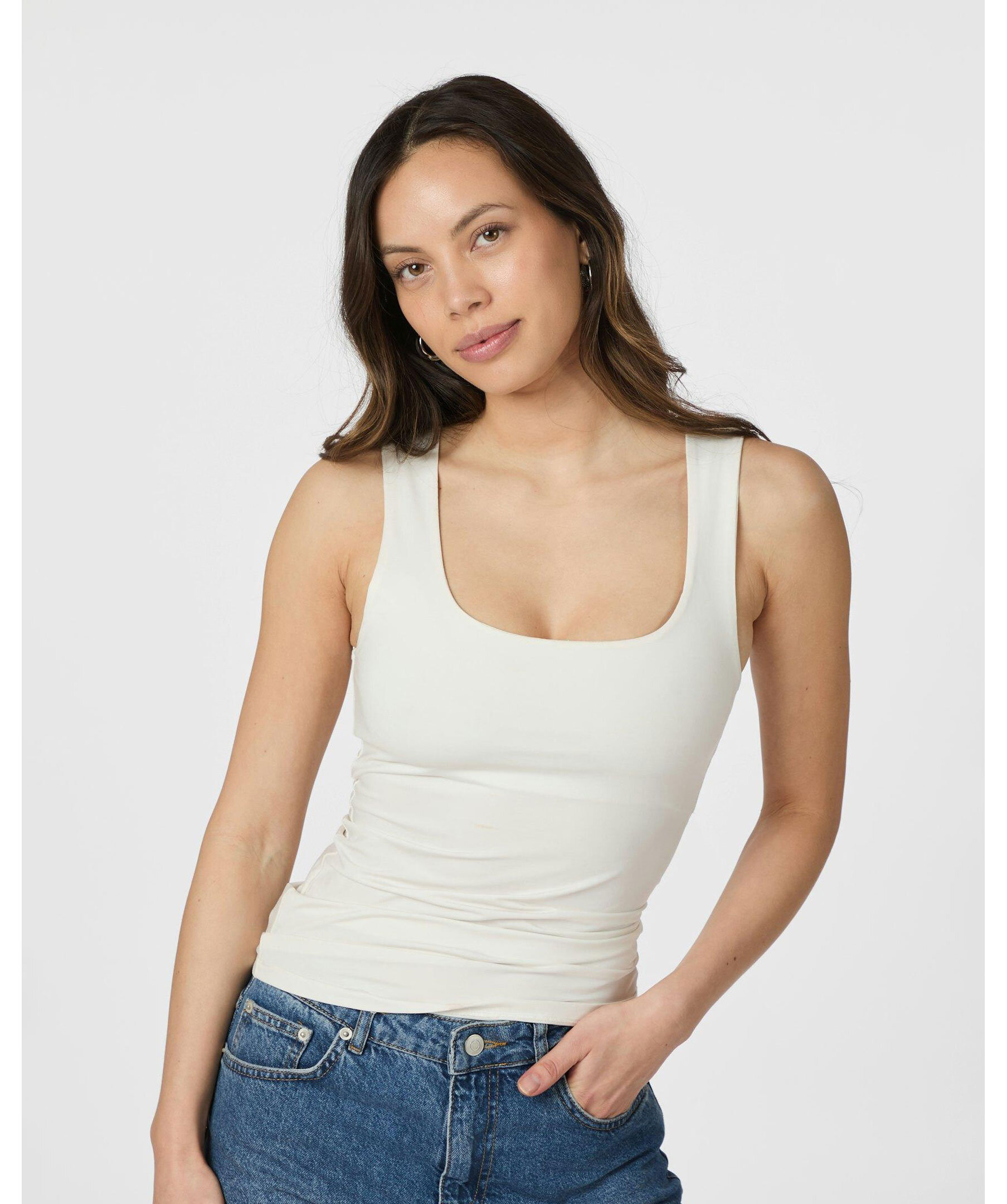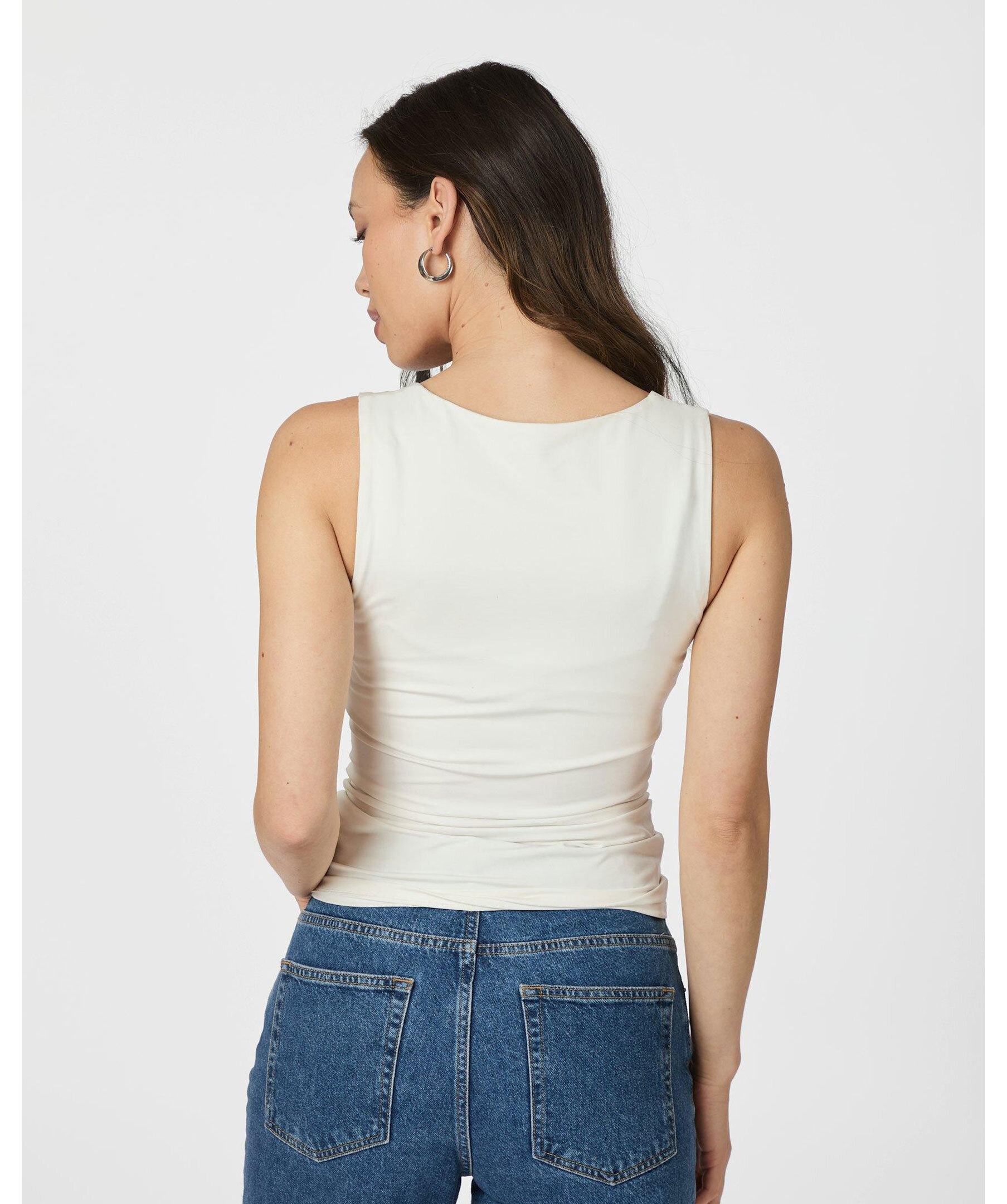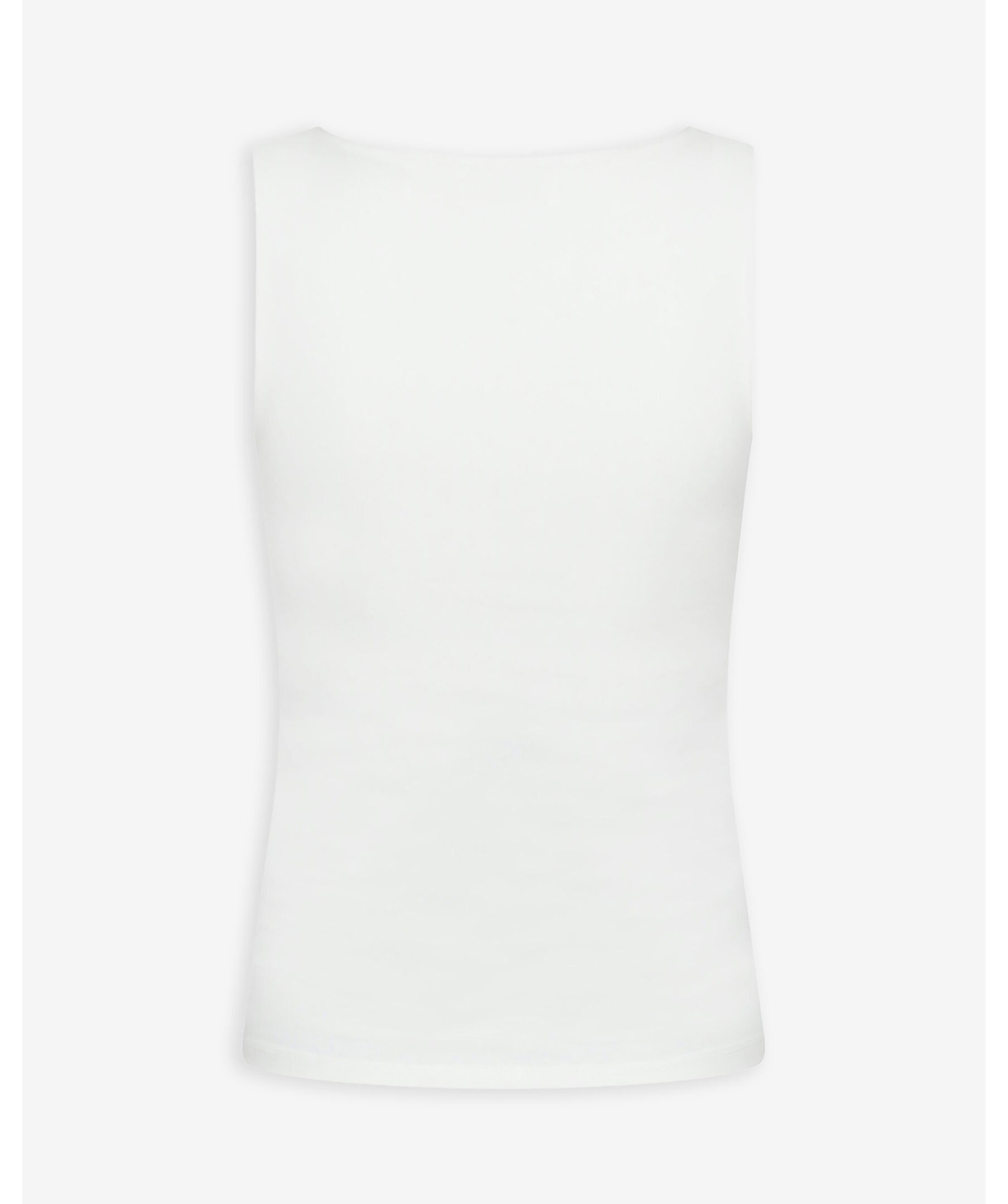 Vit jersey-topp i en härlig mjuk kvalitet. Passformen är tajt med en smickrande öppen hals med rundade kanter.