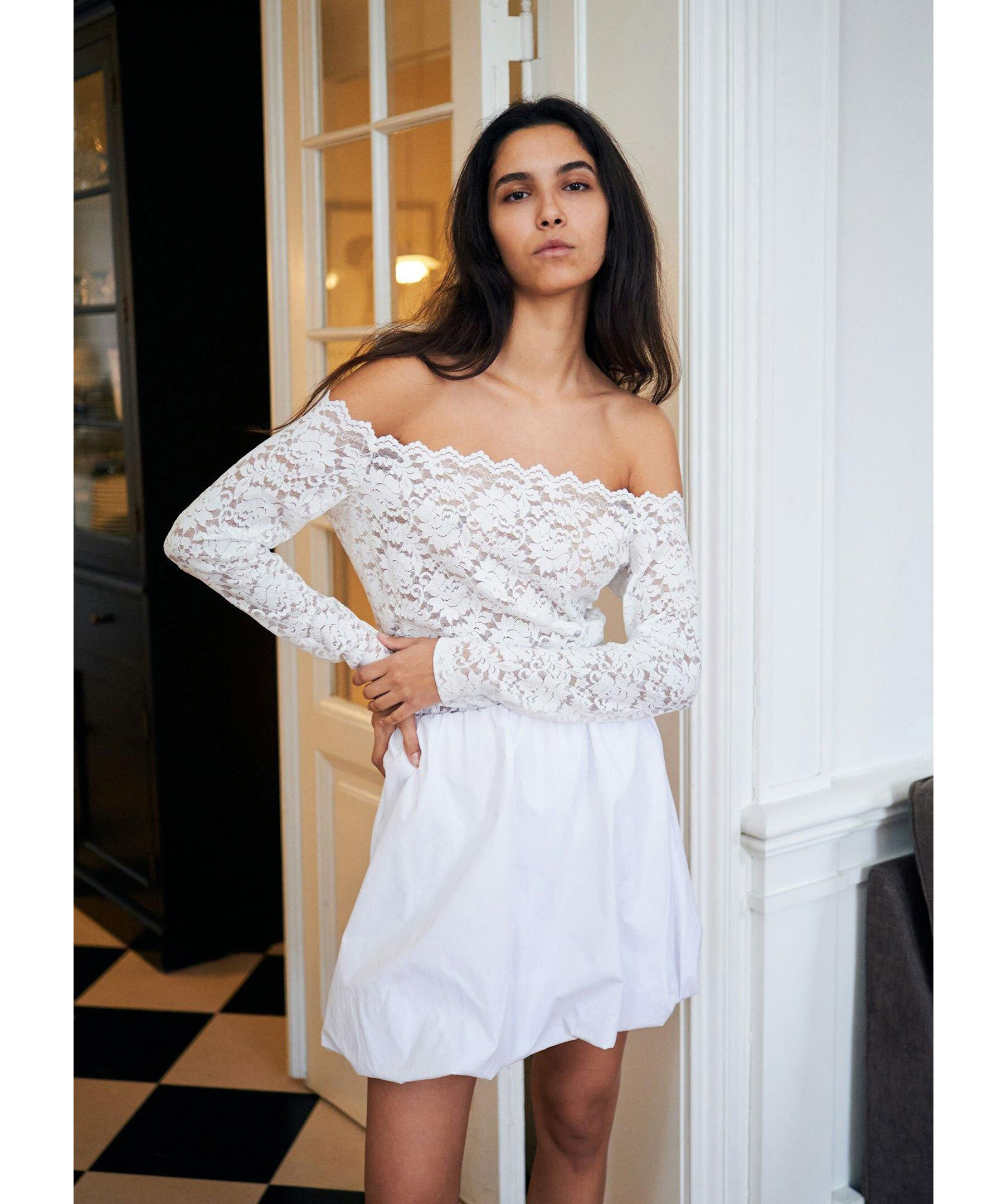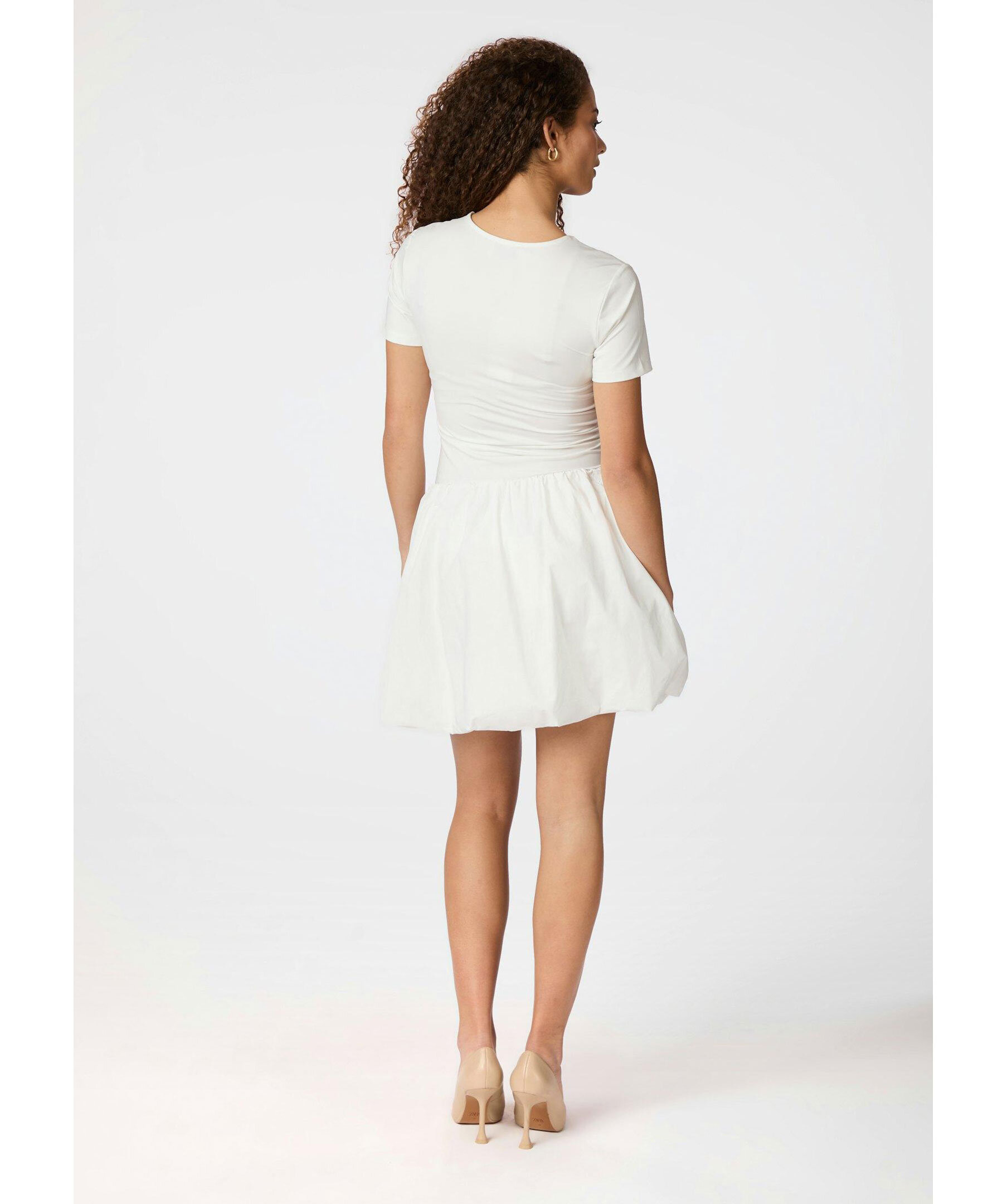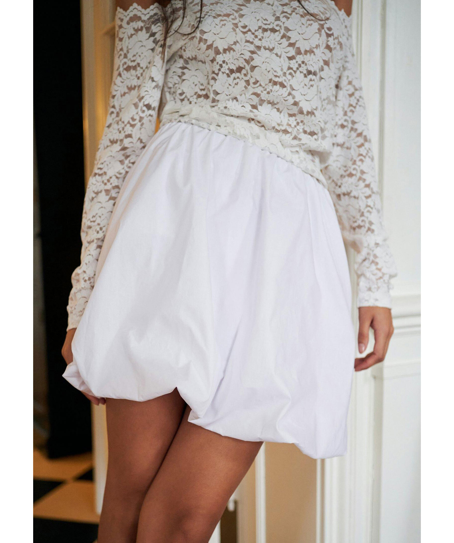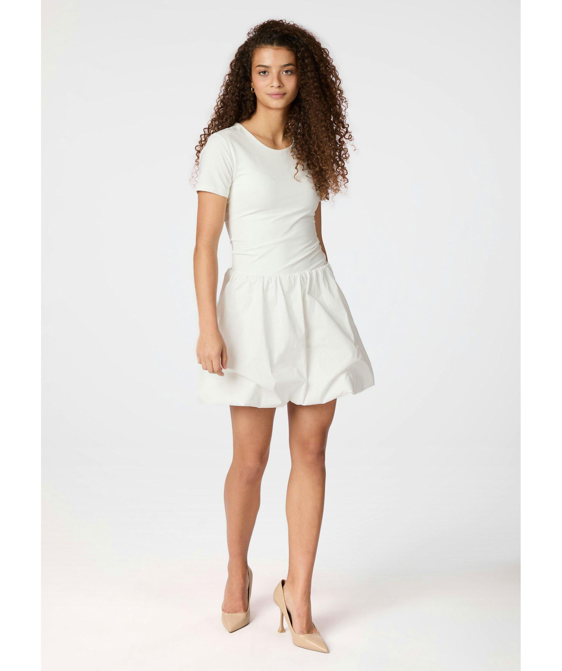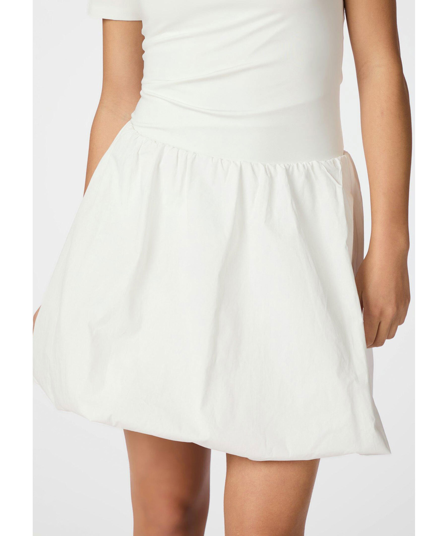 Vit, kort ballongkjol från Neo Noir. Kjolen har elastiskt midja och är tillverkad i polyester.