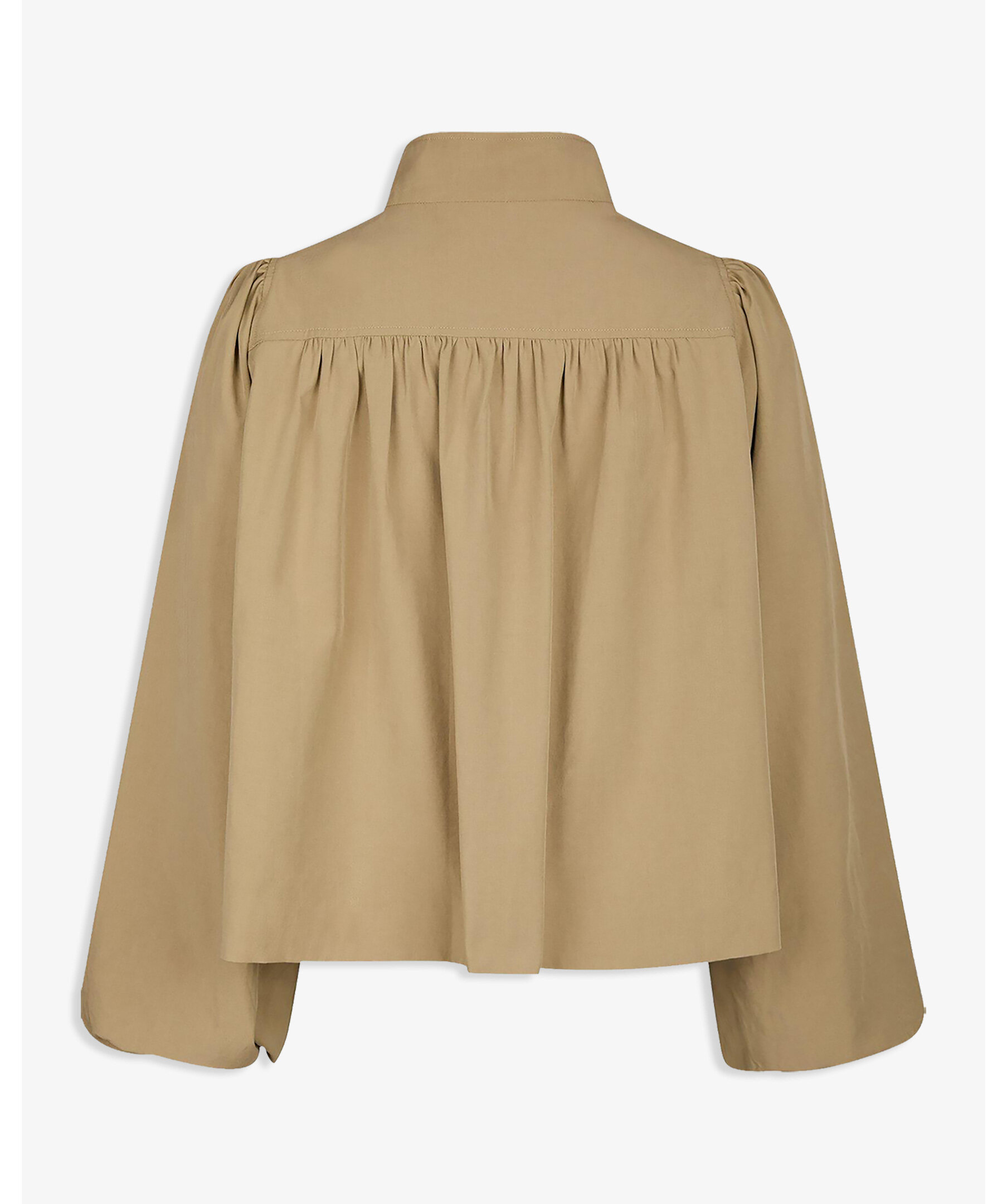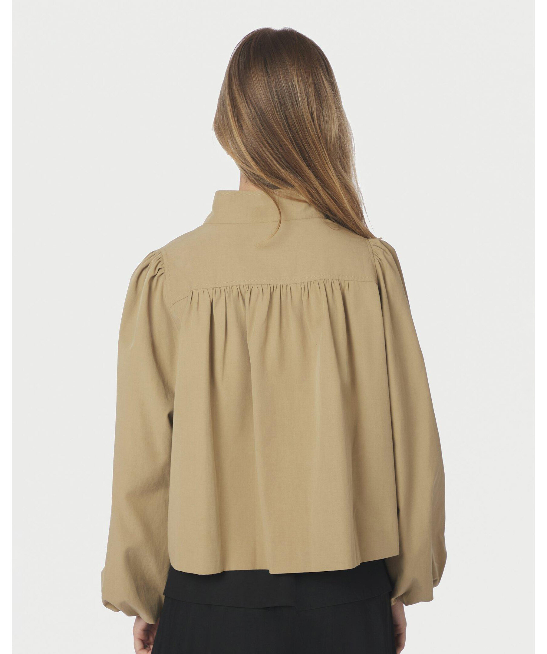 Kort jacka med hög krage. Jackan har framfickor och en lös passform med vida ärmar. Modellen är 176 cm lång och bär storlek 36.