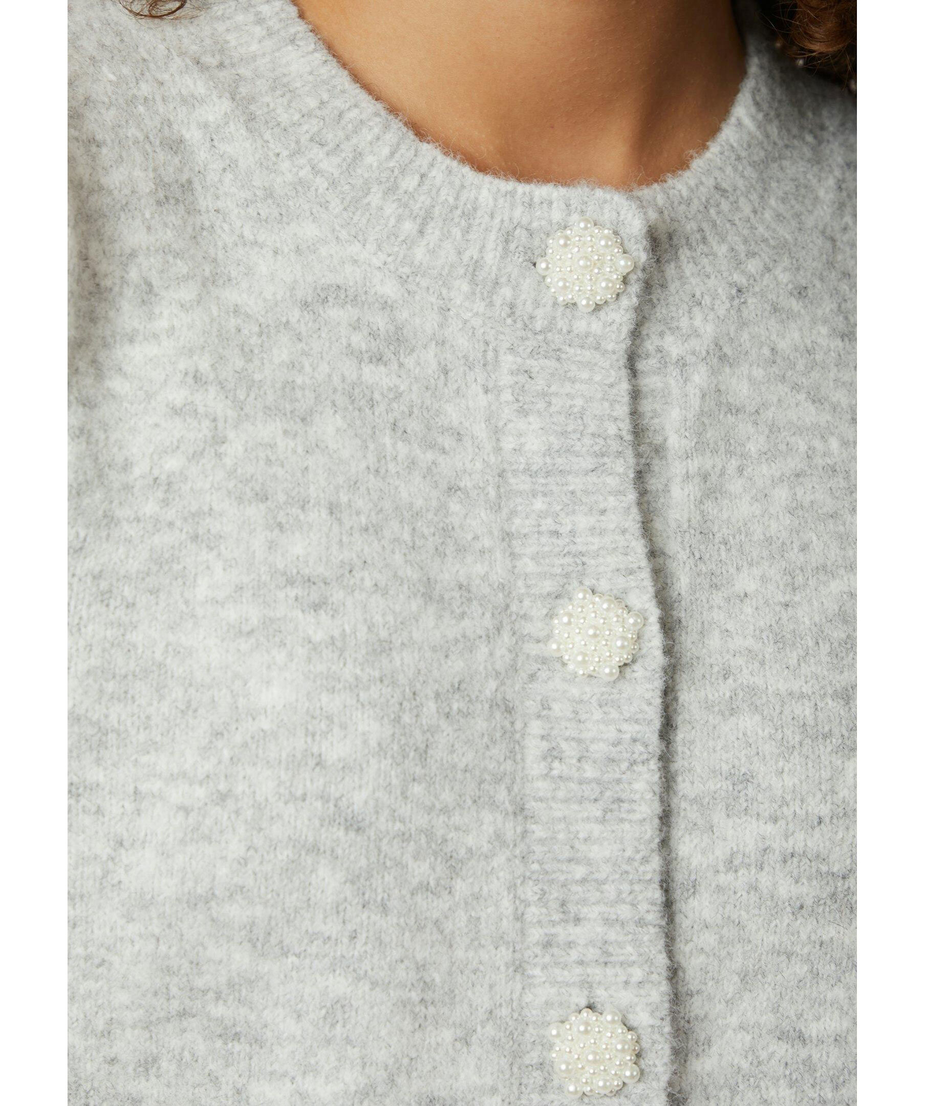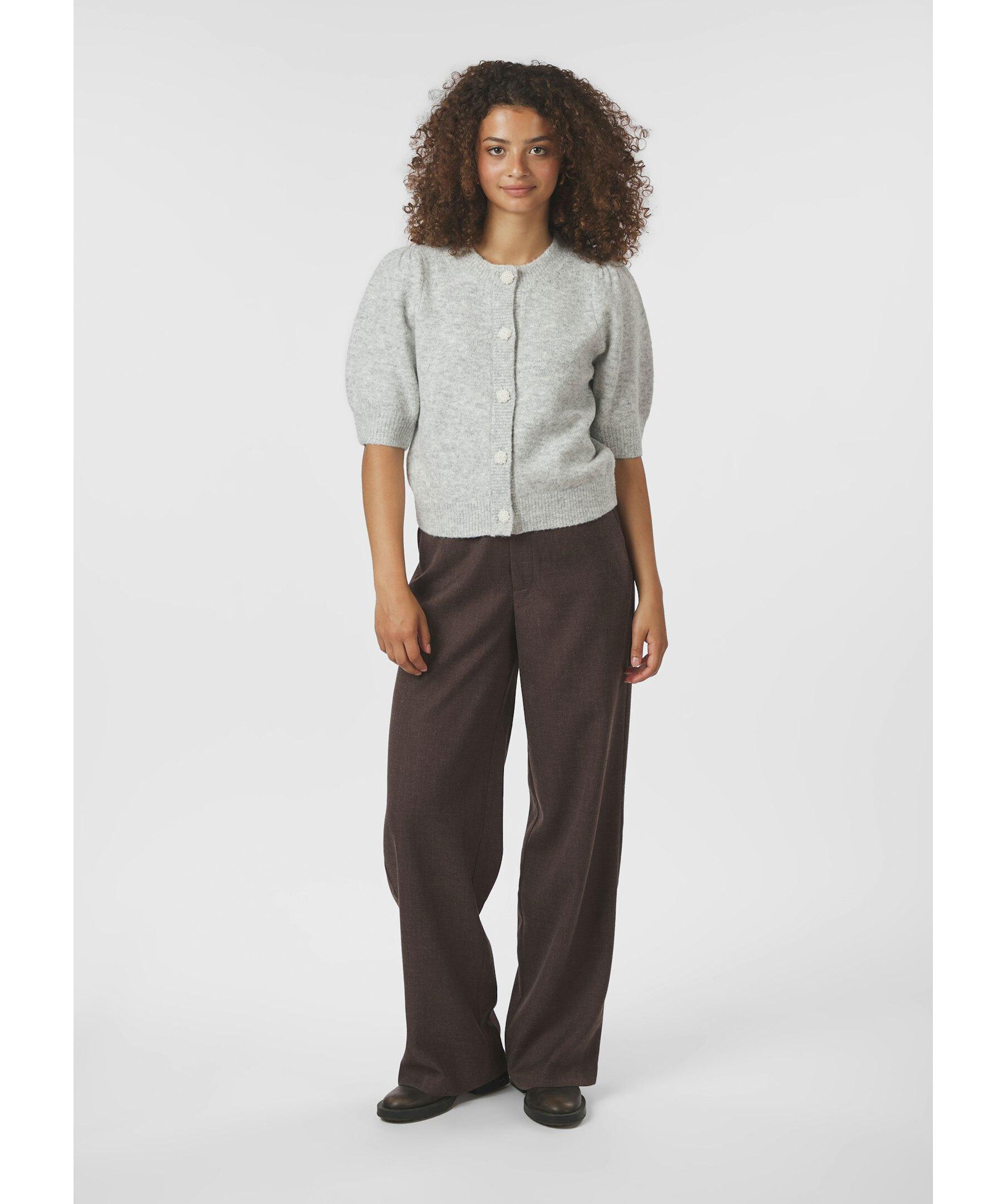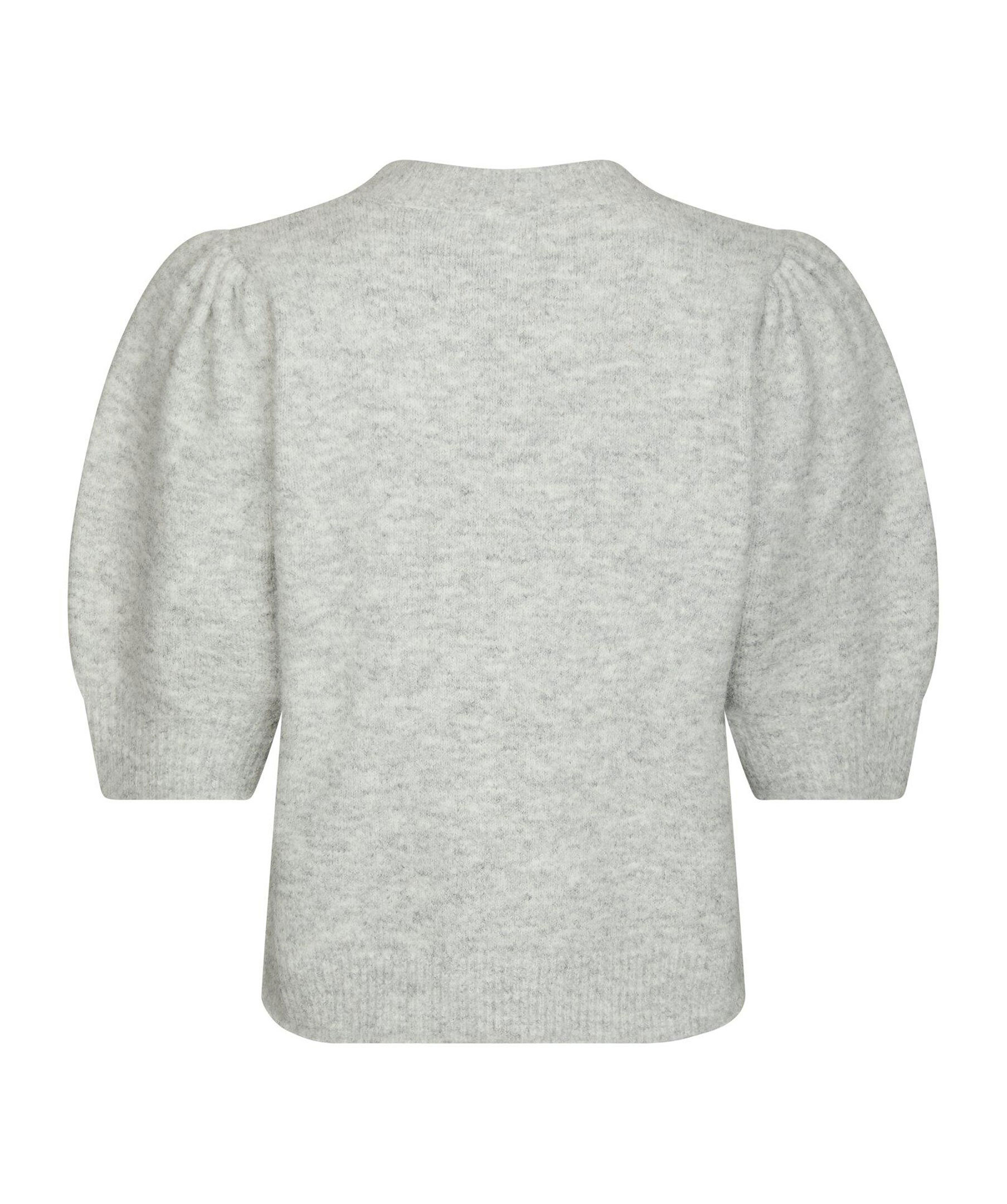 Ljusgrå, stickad kofta från Neo Noir. Koftan stängs med dekorknappar fram och har korta puffärmar med ribbstickade detaljer. Tillverkad i en polyesterblandning.