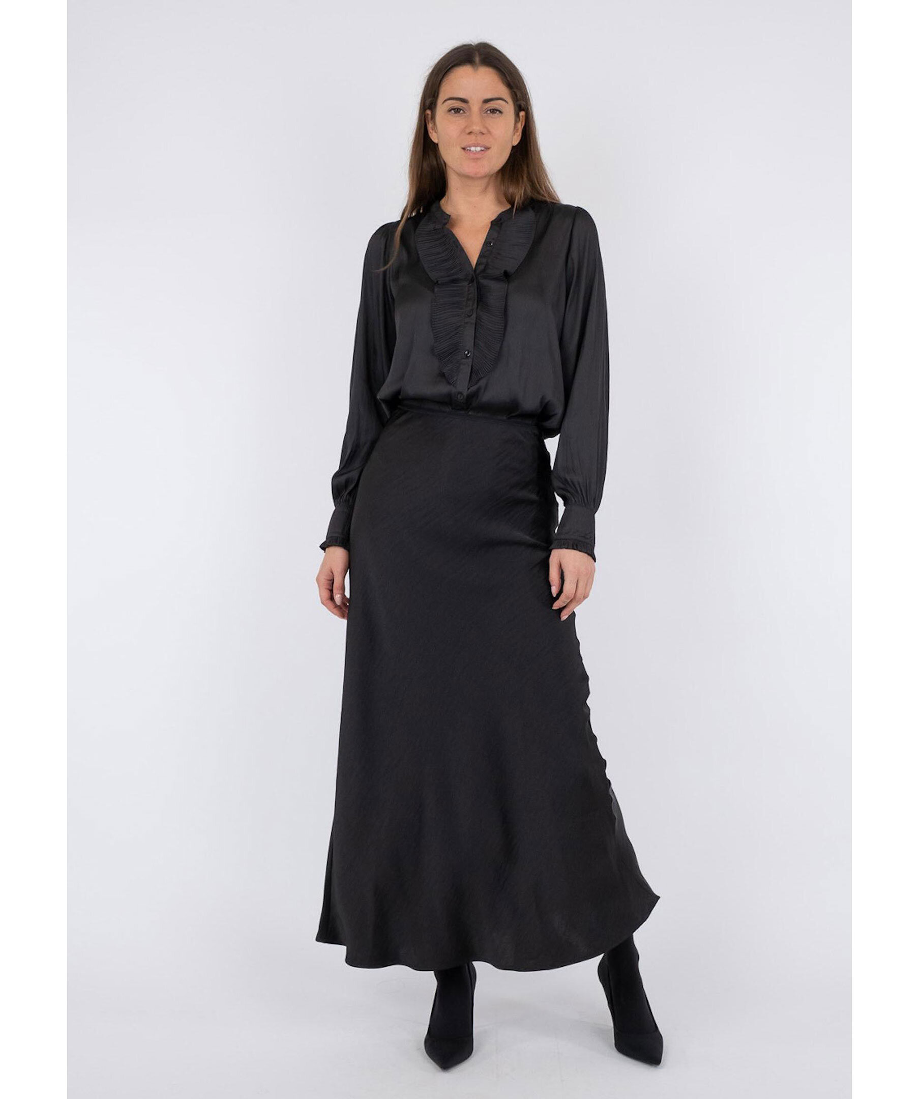 Svart kjol i maximodell från Neo Noir. Kjolen är snedskuren och har en smickrande passform. Tillverkad i slät satäng. Elastisk band i midjan.