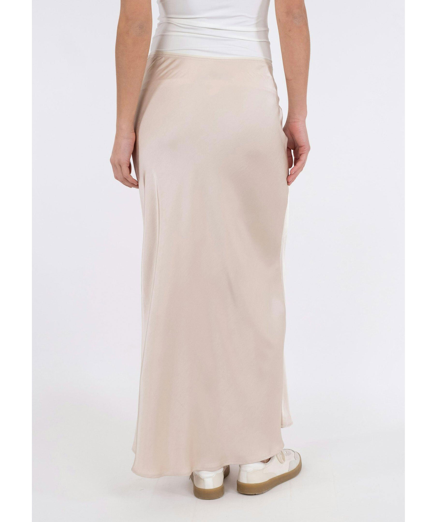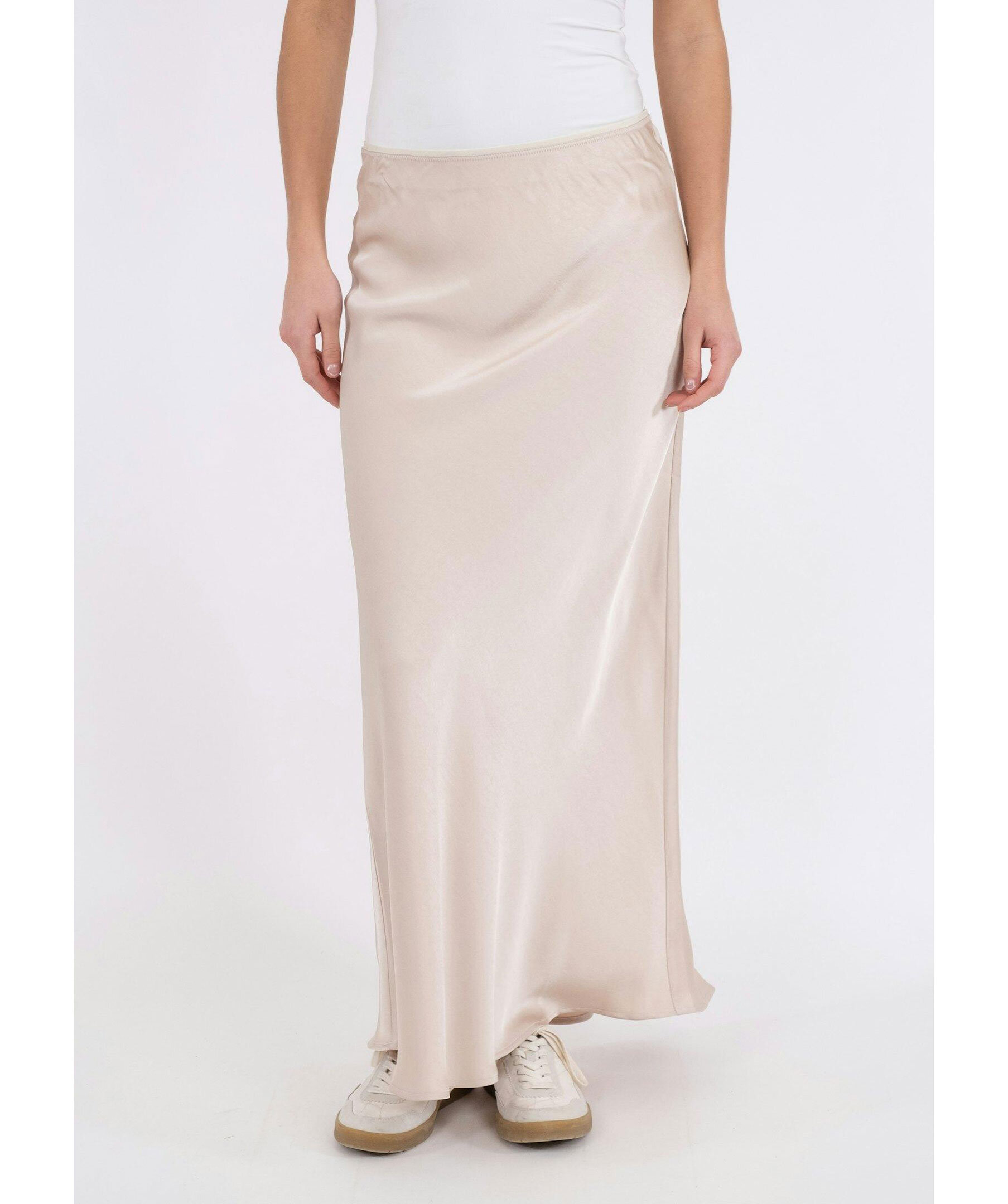 Champagnefärgad kjol i maximodell från Neo Noir. Kjolen är snedskuren och har en smickrande passform. Tillverkad i slät satäng. Elastisk band i midjan.