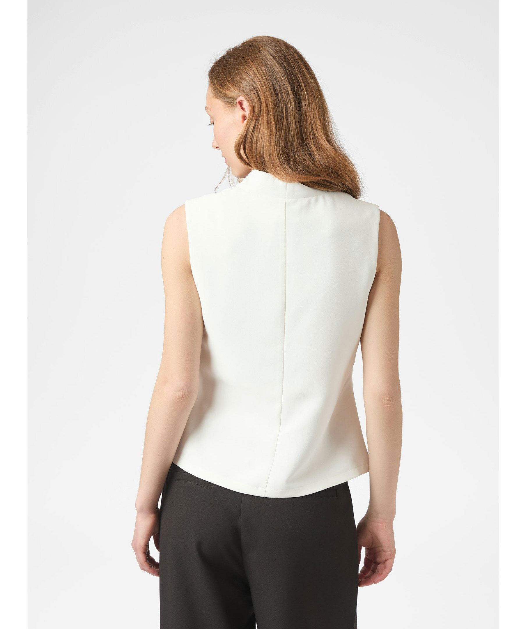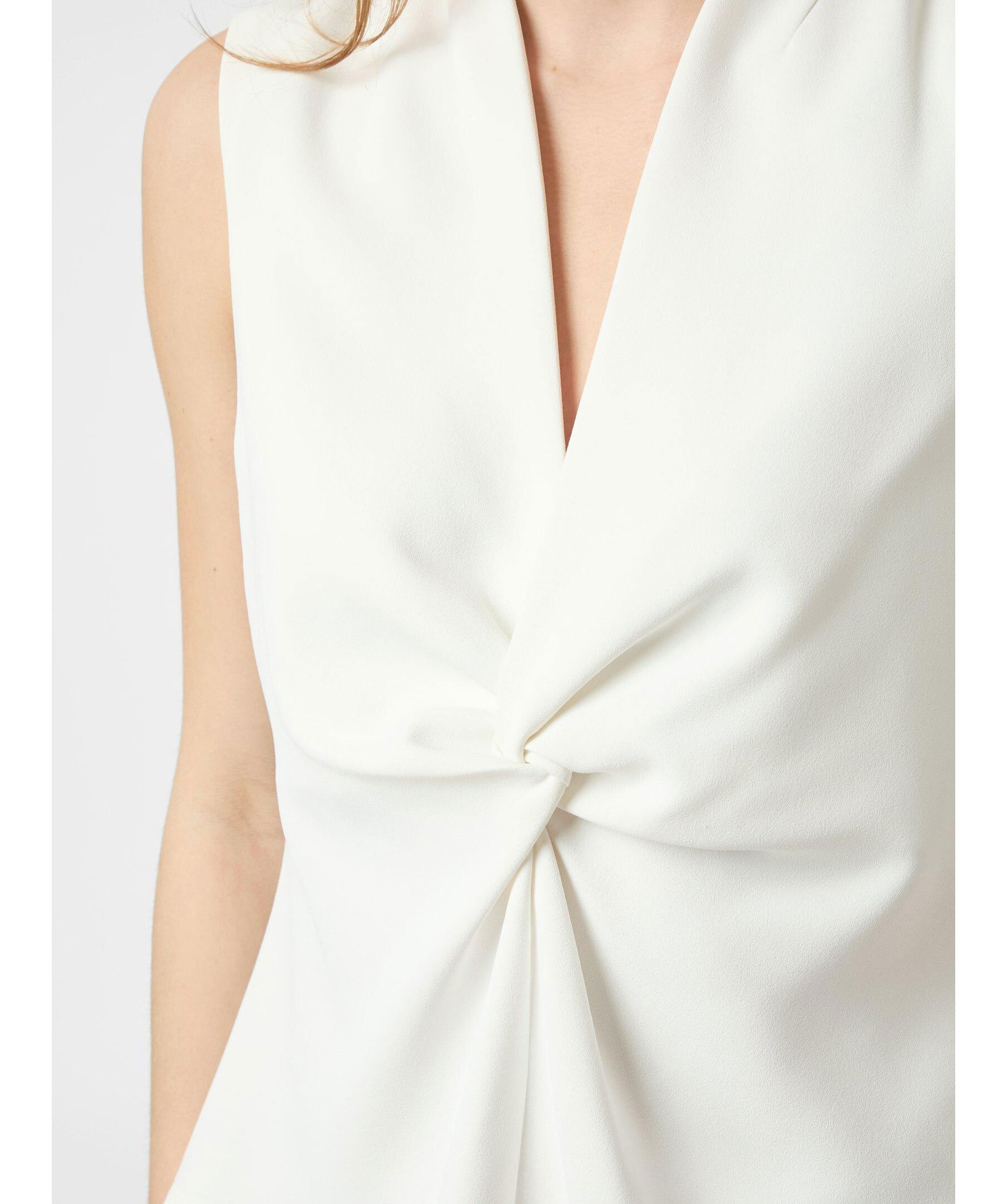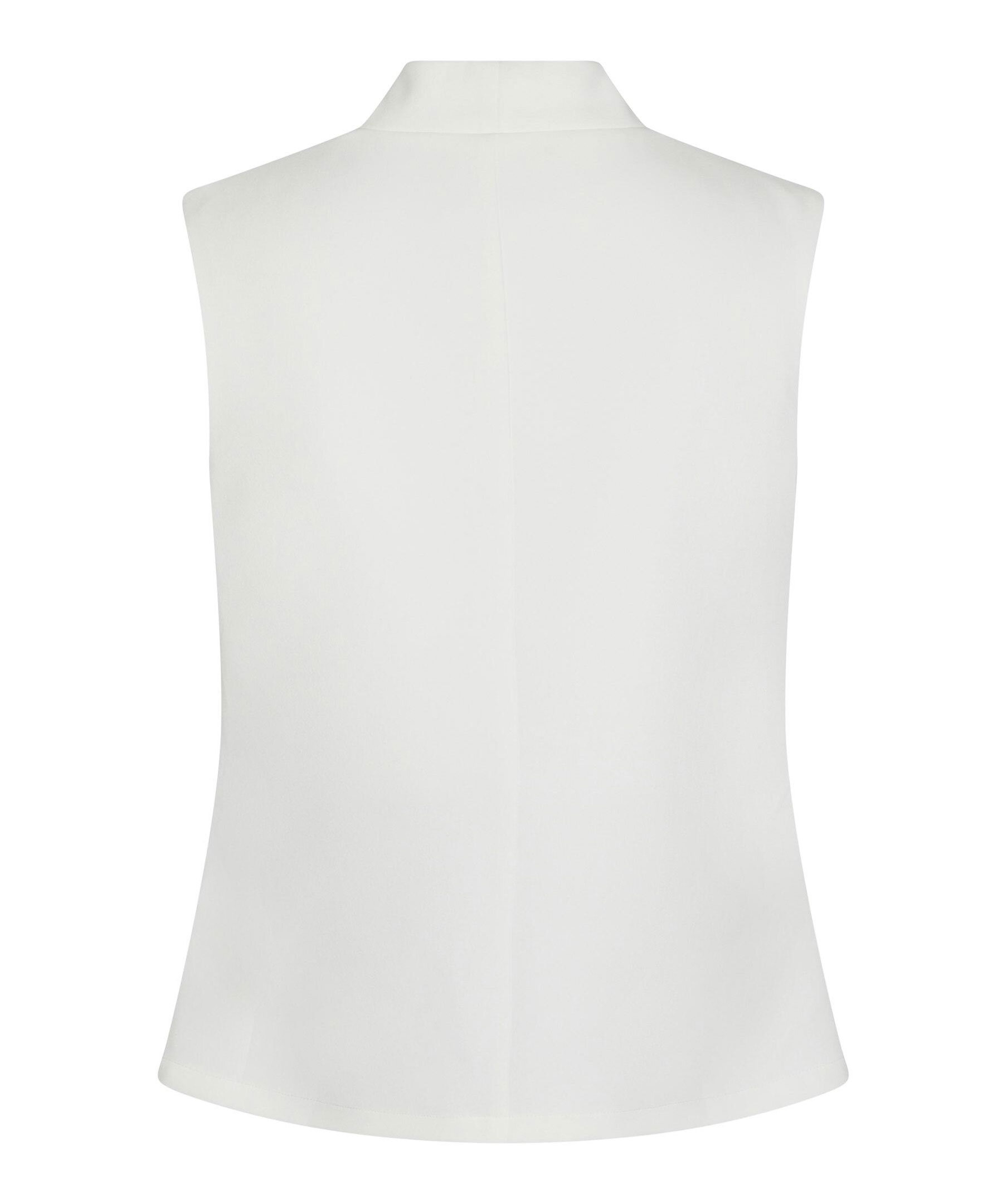 Elegant topp i vitt från Neo Noir. Den är ärmlös med en djup omlottliknande v-ringning och en dekorativ twistdetalj framtill som skapar en smickrande siluett. Det mjuka, vita tyget ger en sofistikerad känsla, perfekt för både jobb och festligare tillfällen. Kombinera med kostymbyxor eller kjol för en komplett look.