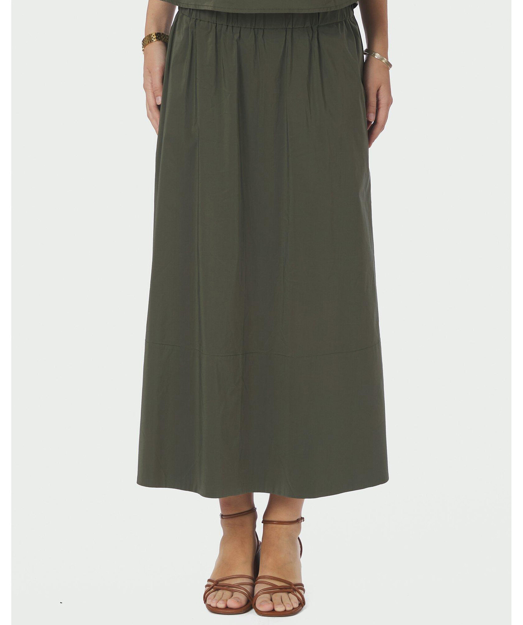 Midilång kjol i mjuk bomullspoplin, med en cool hög midja och fickor fram.