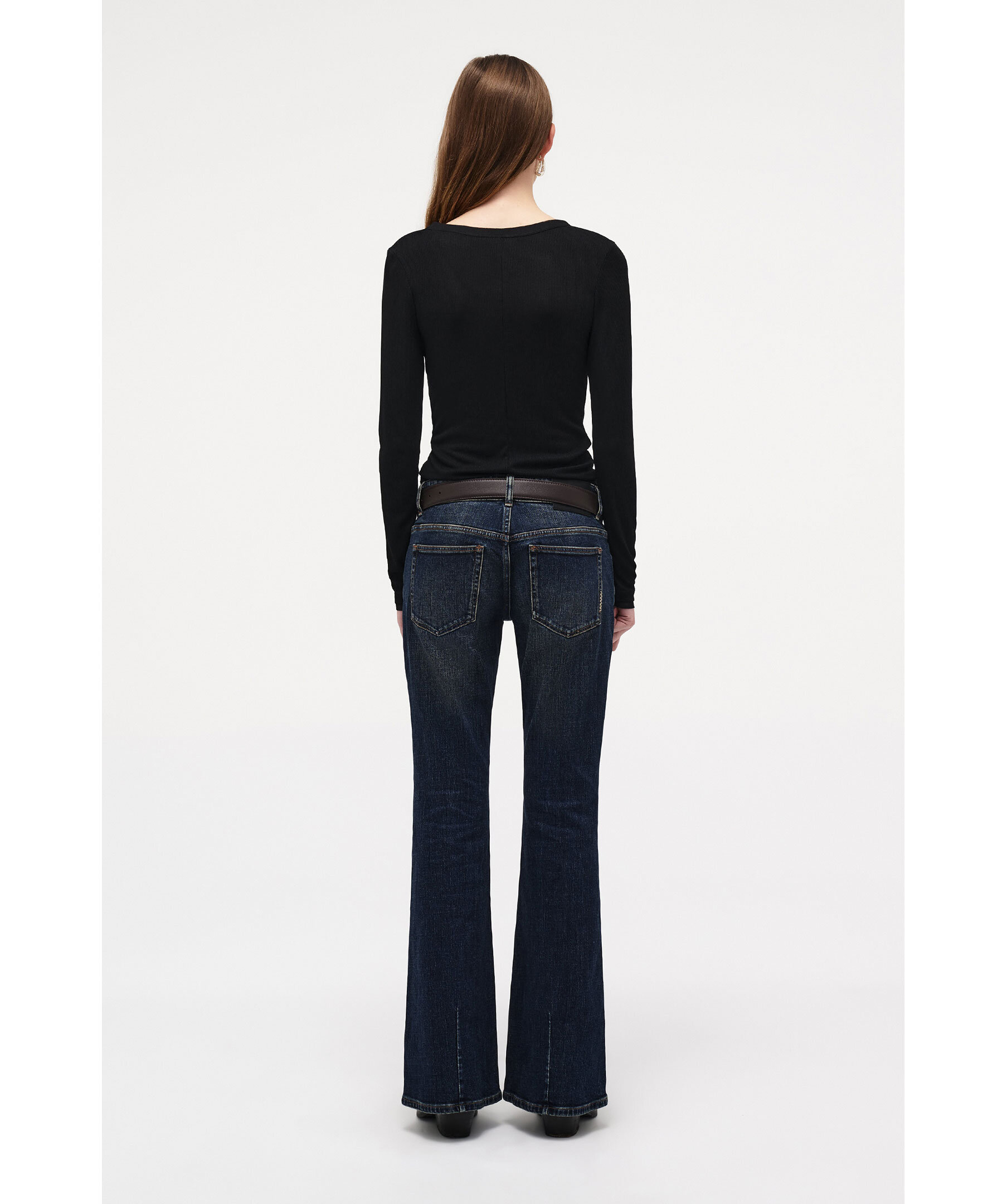 Svart långärmad t-shirt från Neuw. Slimmad passform med transparenta meshdetaljer vid ärmsluten och en scoop-urringning med ribbad fåll. Tillverkad i en elastisk mix av 62 % polyester, 38 % rayon och 3 % spandex ger den en följsam, mjuk känsla med ribbad struktur.