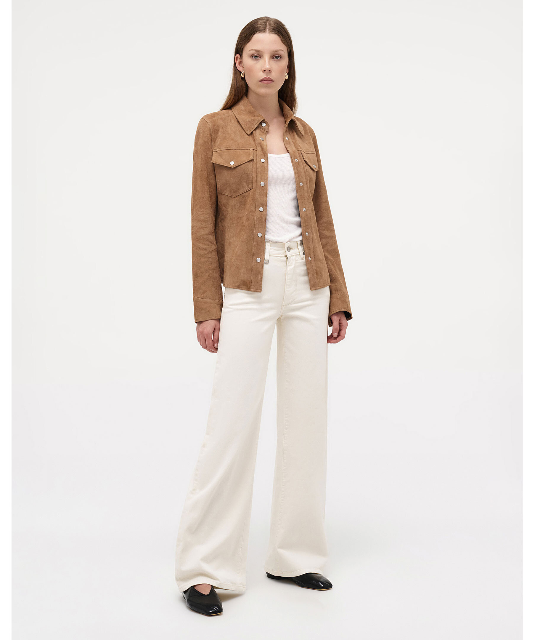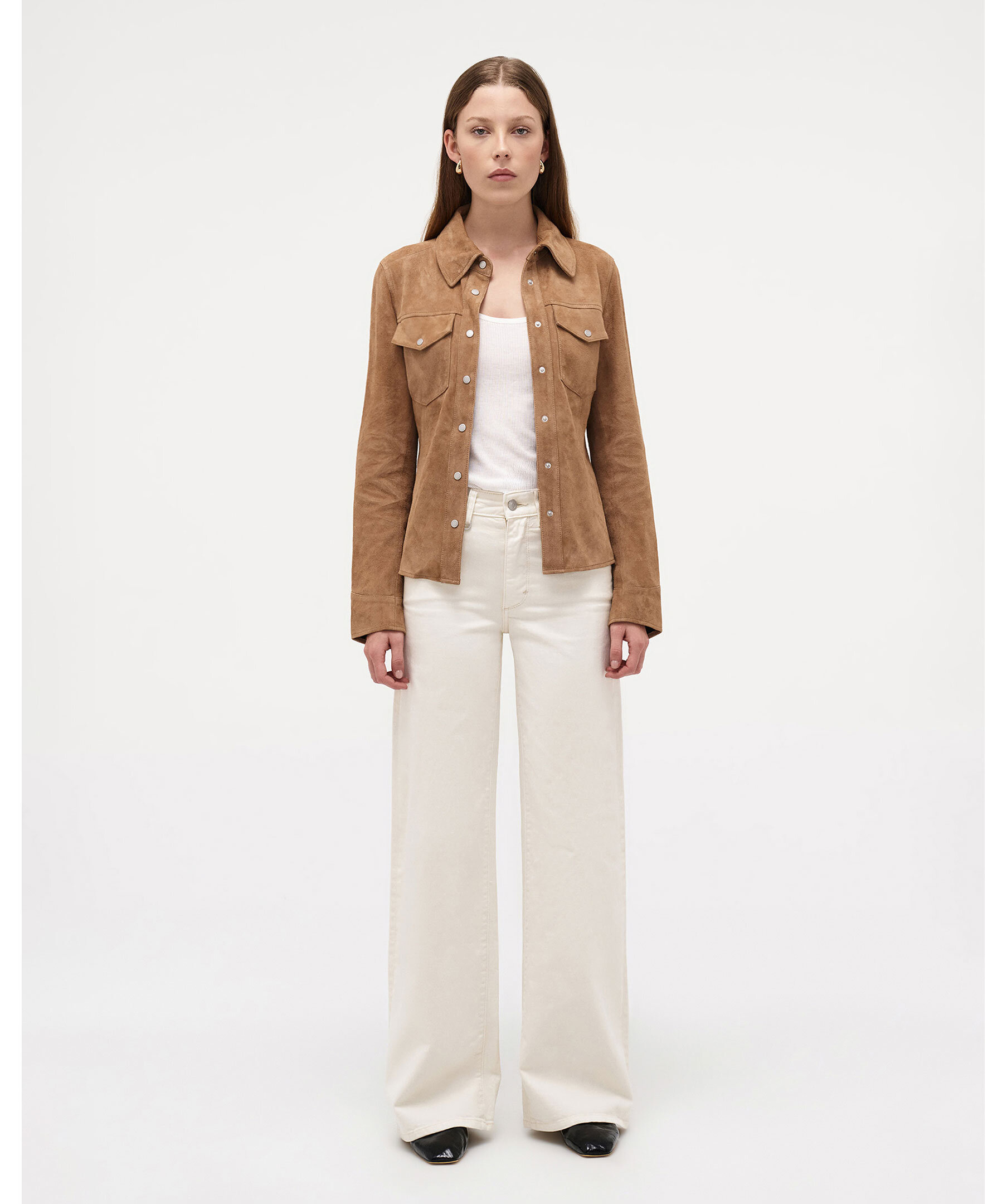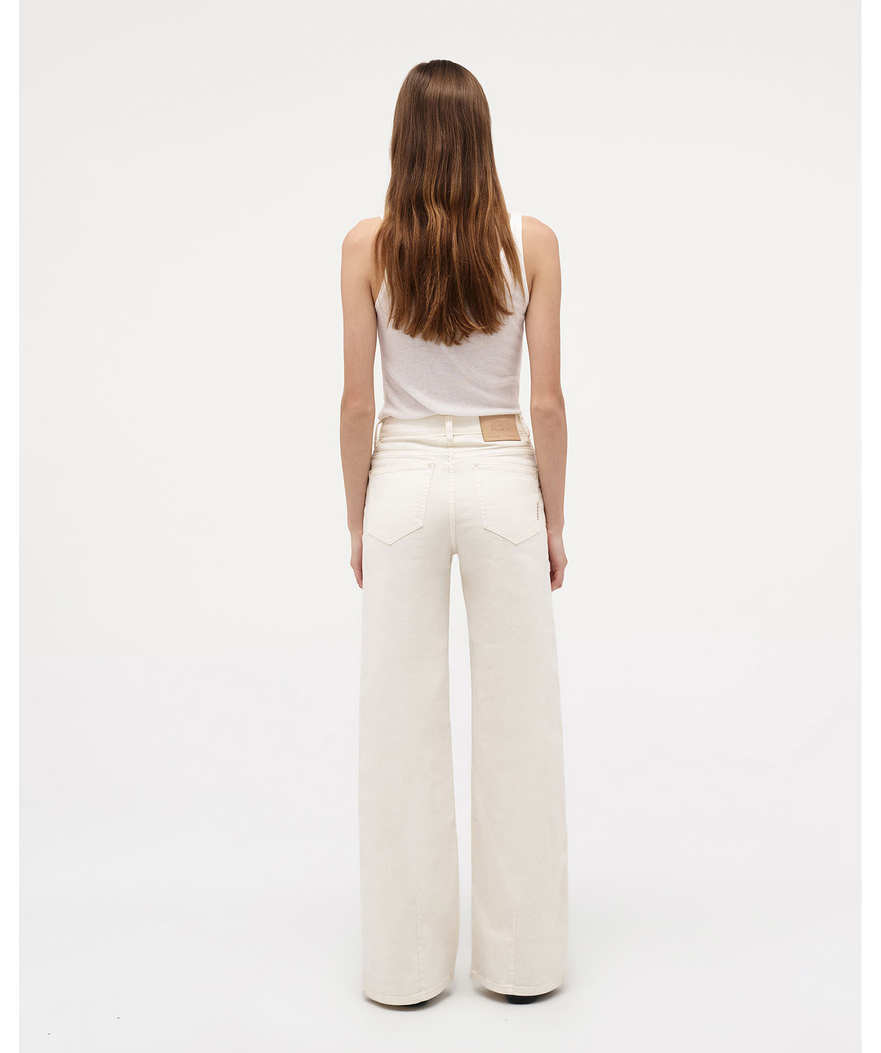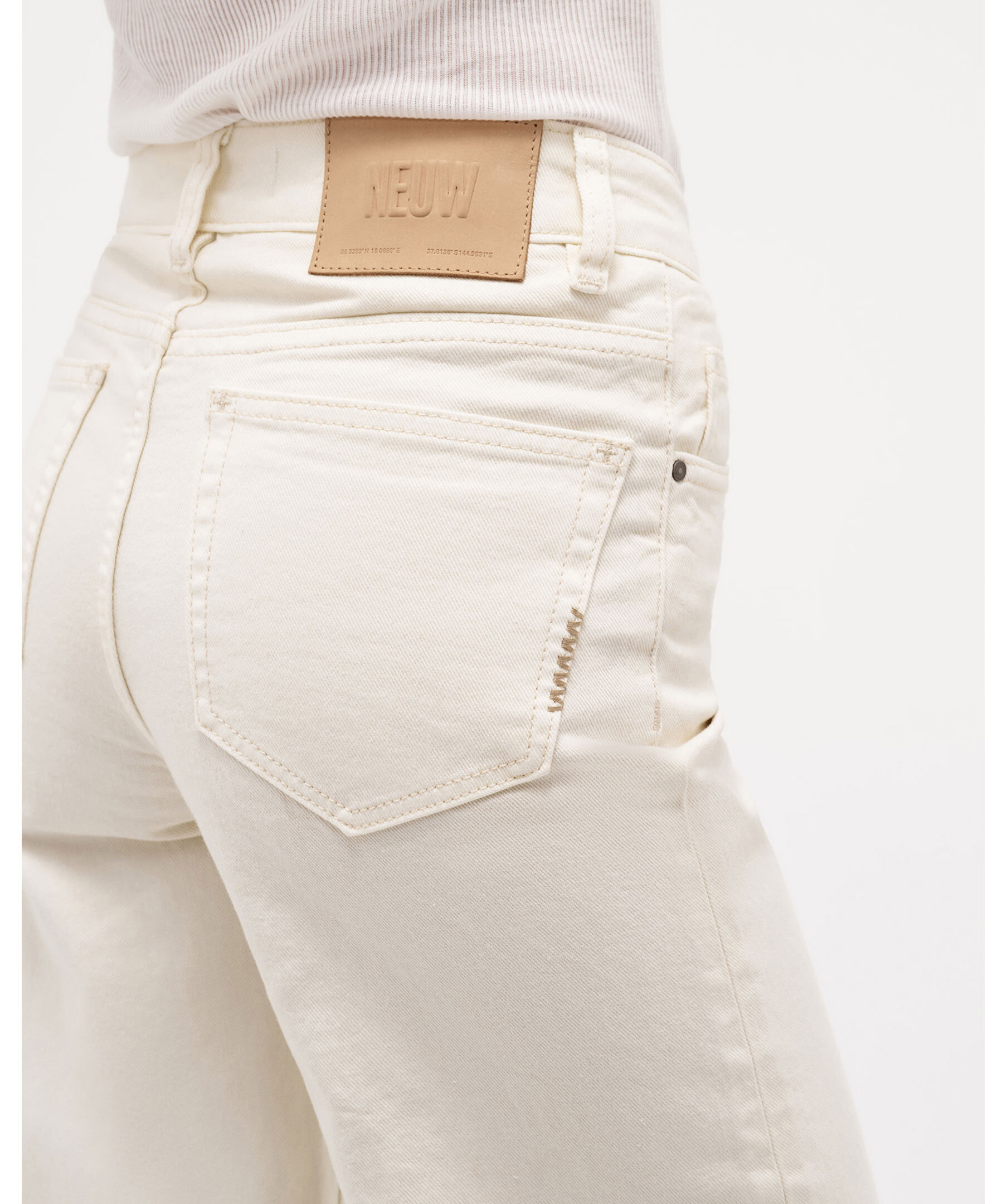 Krämvita jeans från Neuw med vida ben, mellanhög midja och en elegant A-linjeform. Tillverkade i 99 % bomull och 1 % elastan för en subtil stretch som ger komfort utan att förlora det autentiska, "rigida" denimuttrycket. De håller sin form över tid och passar true-to-size.