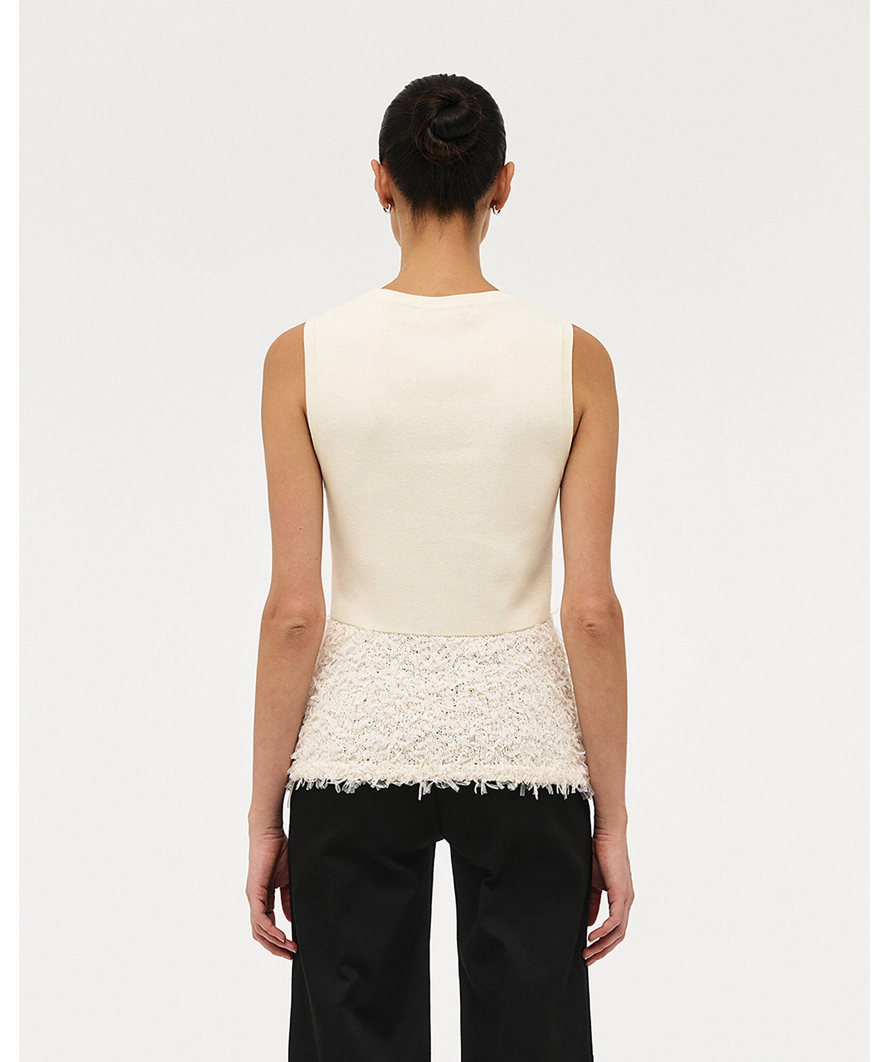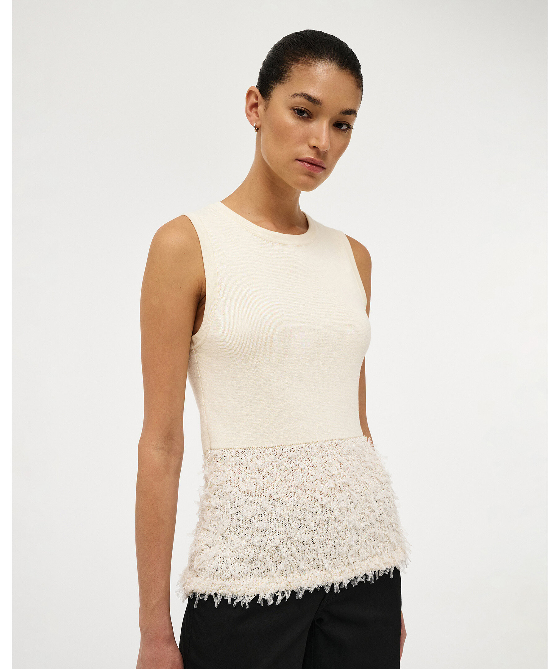 Stickad topp från Neuw med kontrasterande stickningar för en modern look. Överdelen är gjord i en polerad, slät viskosblandning medan fållen har ett texturerat garn med fransig effekt.