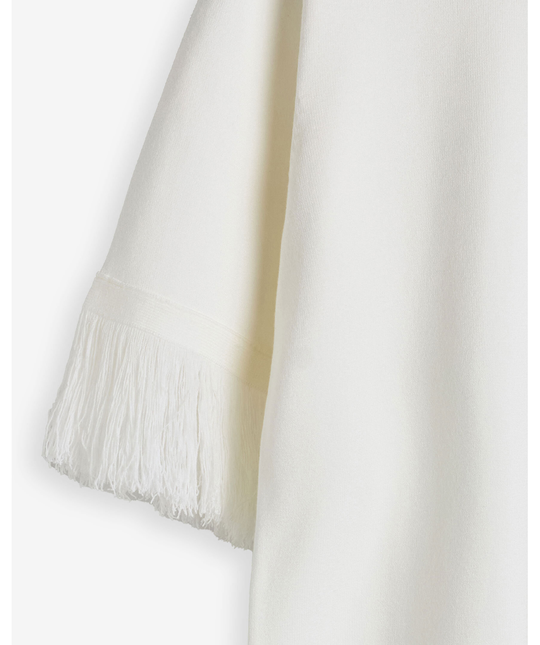 Vit t-shirt från Neuw med dekorativa fransar vid ärm och plaggslutet.