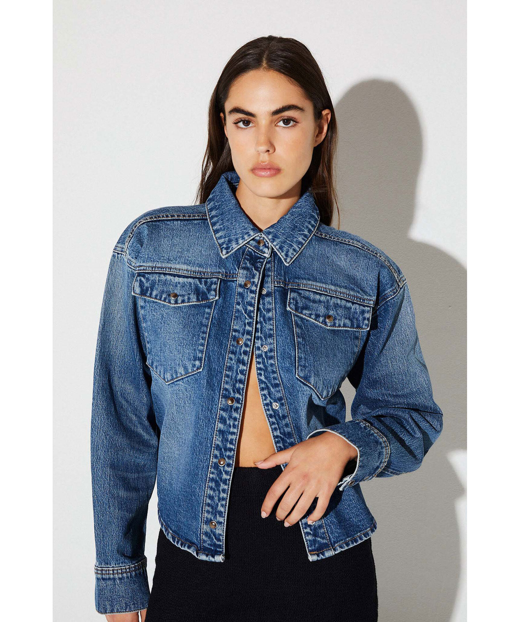 Blå, kort jeanskjorta från Neuw. Jackan stängs med tryckknappar framtill och har två bröstfickor med lock och knapp. Tillverkad i en bomullsblandning.