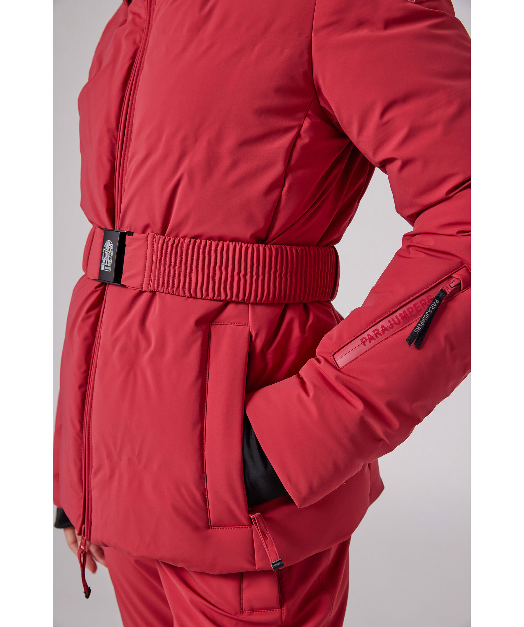 Röd jacka som är perfekt för skidsemestern från Parajumpers. Jackan stängs med tvåvägsdragkedja och har en avtagbar huva, bälte i midjan, två sidfickor med dragkedja samt en ficka på ärmen med dragkedja. gummerad ton-i-ton logotyp på vänster ärm. Tillverkad i en polyamid- och polyesterblandning med dunfyllning.