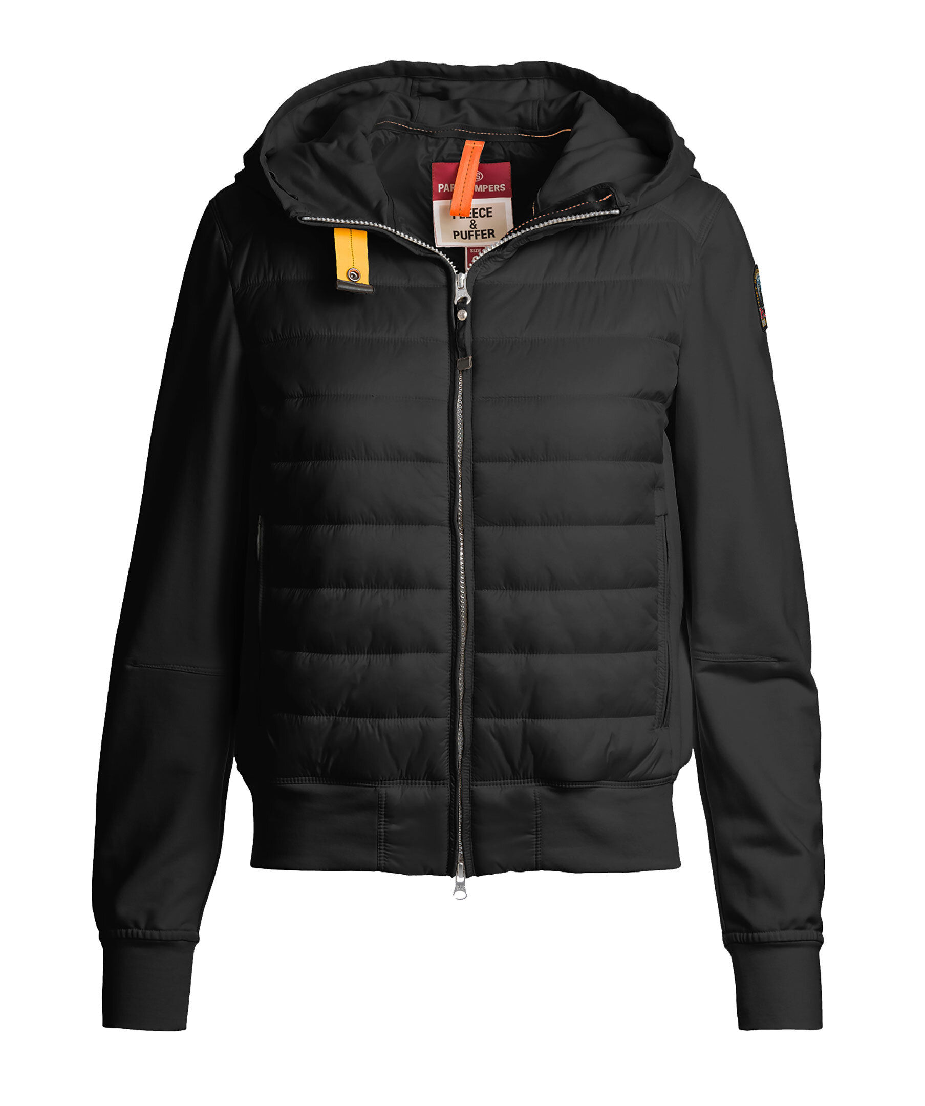 Svart hybridjacka med huva från Parajumpers. Jackan stängs med tvåvägsdragkedja och har dragsko i huvan, två sidfickor med dragkedja, ribbade detaljer och en patch-logotyp på vänster ärm. Tillverkad i polyamideblandning.