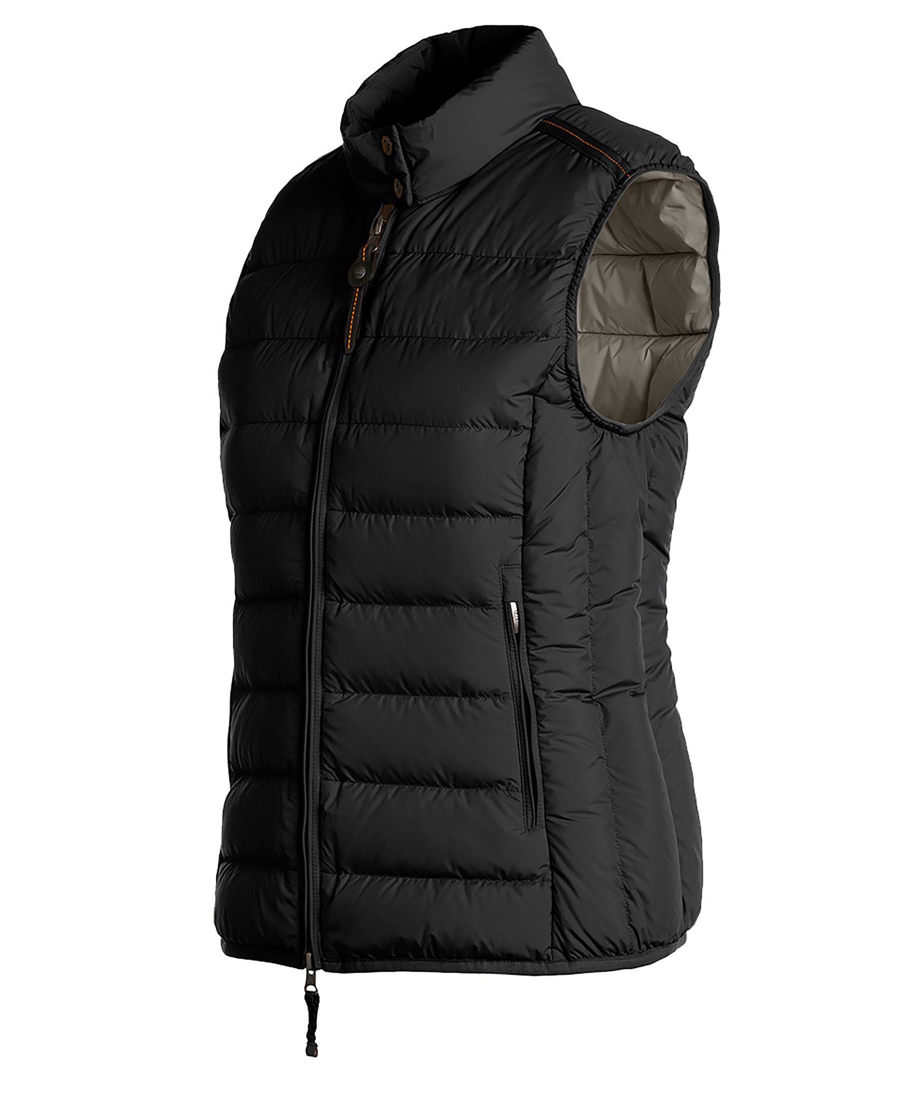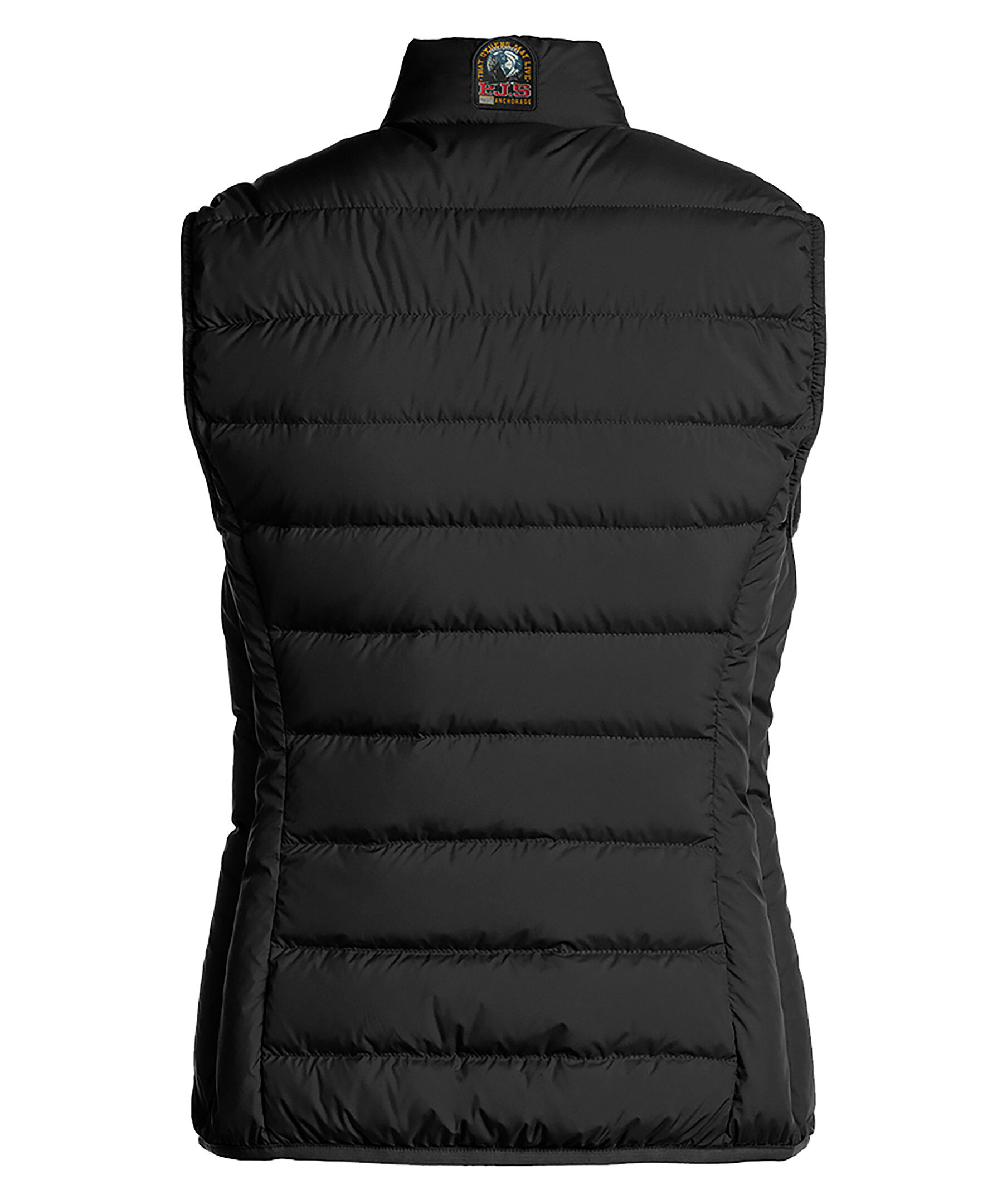 Svart lättviktsdunväst från Parajumpers i en figursydd passform. Västen har två snedställda framfickor och två innerfickor. Broderad logotyp i nacken.