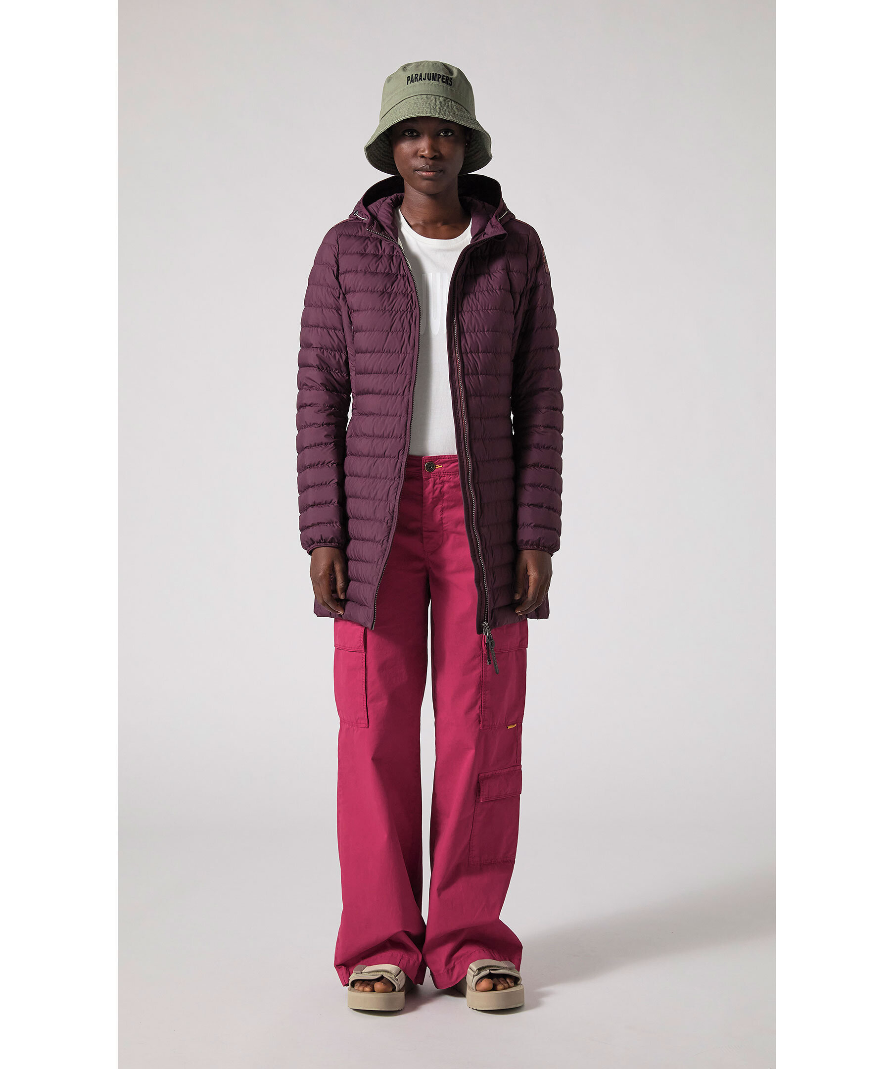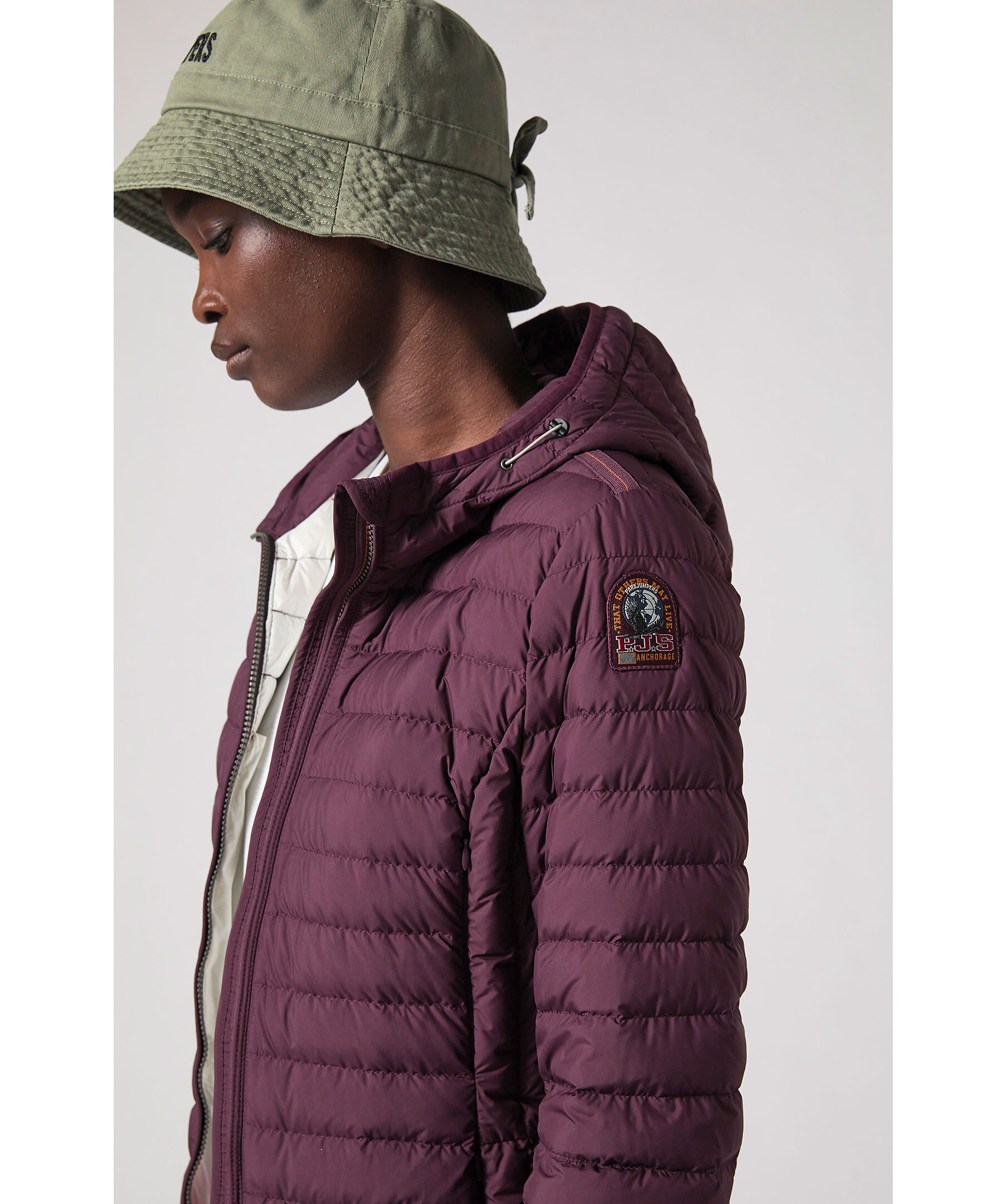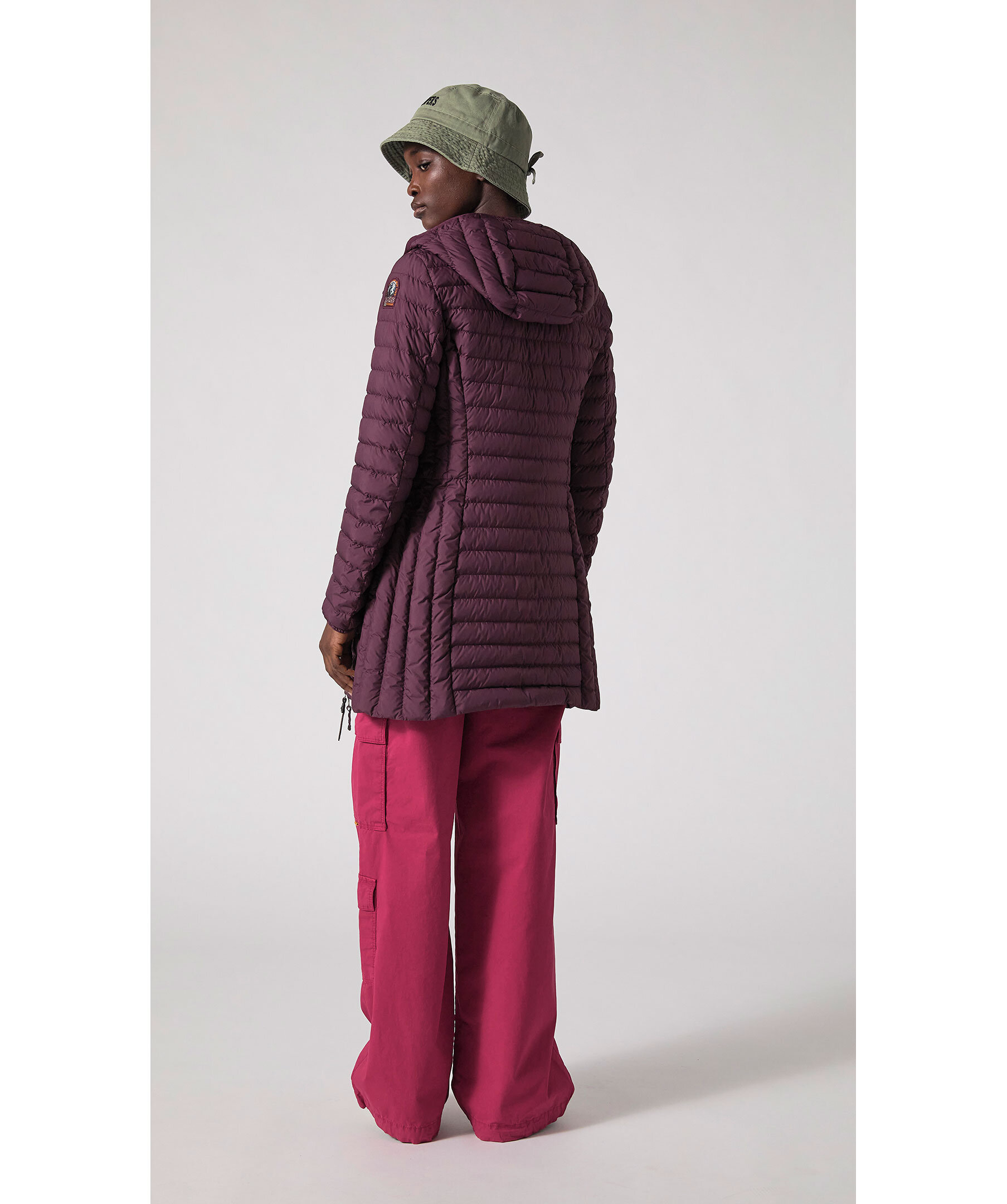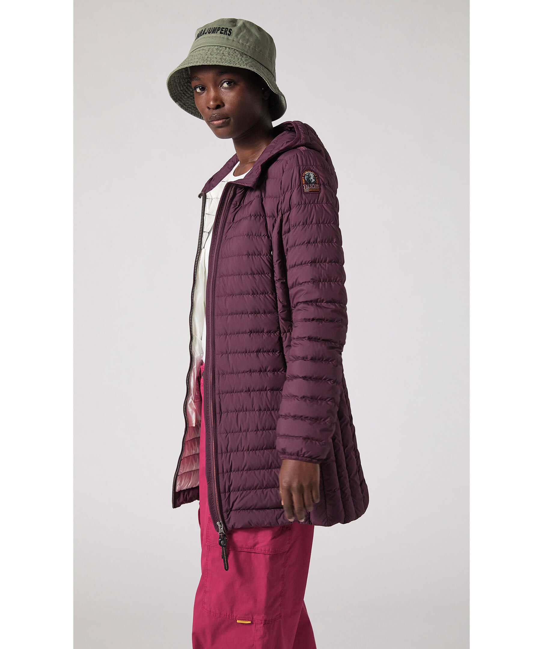 Svart, figursydd lättviktsdunjacka från Parajumpers i längre modell. Yttertyg i polyester. Två framfickor och två bröstfickor med dold dragkedja framtill och en innerficka. Luva med dragsko samt broderad ikonisk tygpatch på vänster ärm och ventilationshål vid armhålorna. Stängs med tvåvägsdragkedja. OBS! Jackan på modellen visar endast på passform och inte varans färg.