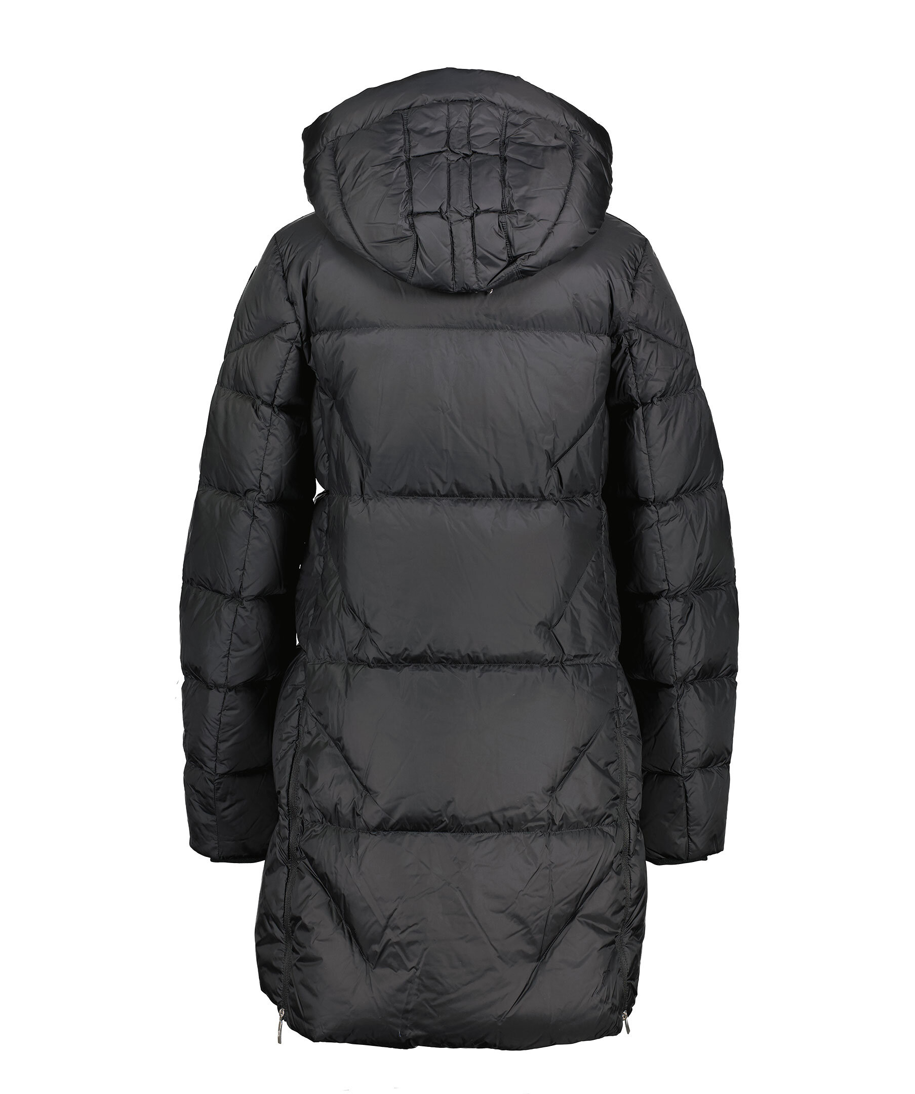 Svart, lång pufferjacka med huva från Parajumpers. Jackan stängs med tvåvägsdragkedja och har två sidfickor med dragkedja, patch-logotyp på vänster ärm samt en innerficka i mesh. Tillverkad i polyamide med dunfyllning. ■ OBS! Modellbilderna visar endast passform