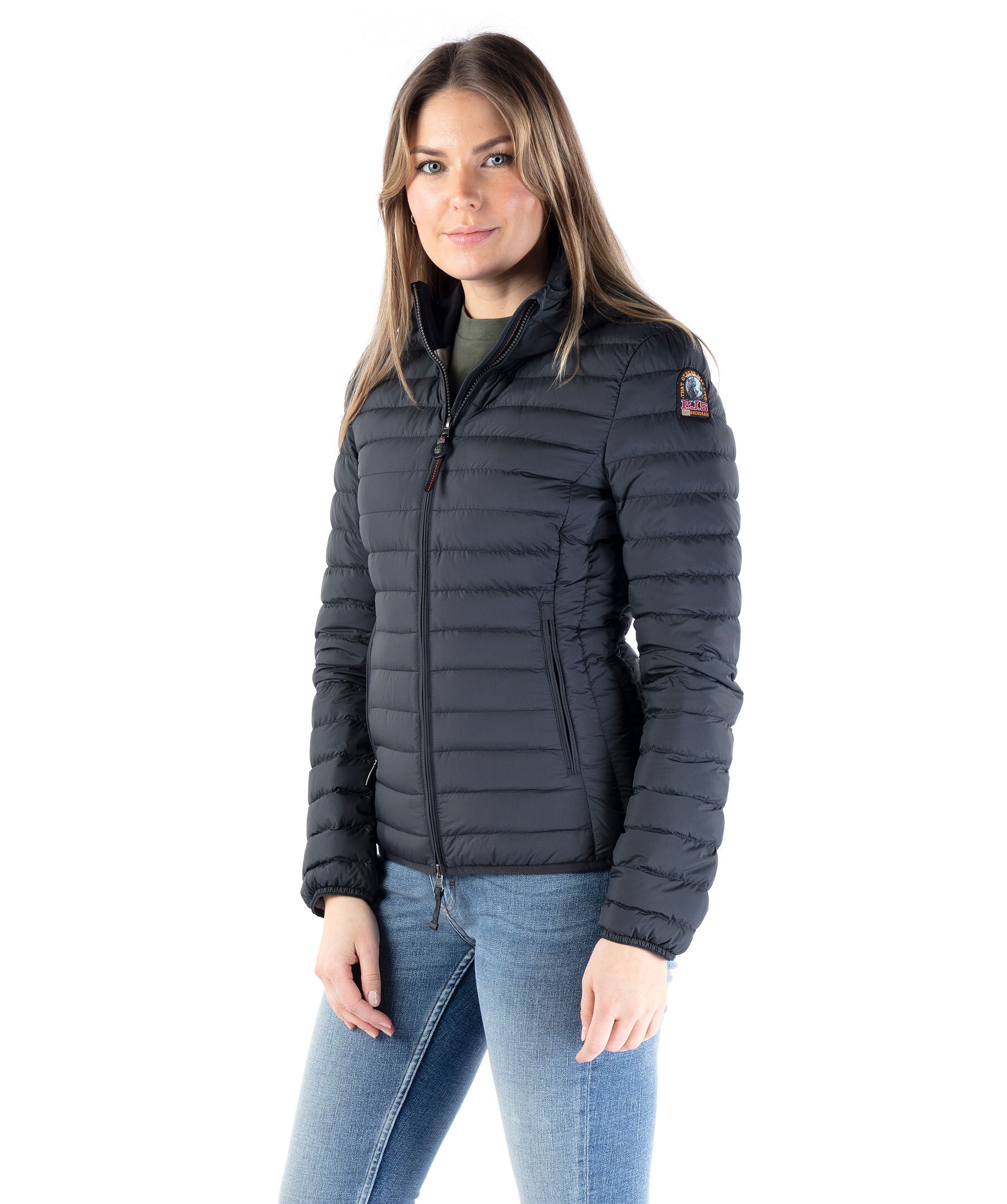 Svart, figursydd lättviktsdunjacka från Parajumpers i kortare modell. Yttertyg i polyester. Två framfickor med dold dragkedja framtill och en innerficka. Krage med mudd och luva med dragsko samt broderad ikonisk tygpatch på vänster ärm och ventilationshål vid armhålorna. Stängs med tvåvägsdragkedja. Modellen är 175 cm lång och bär storlek S.