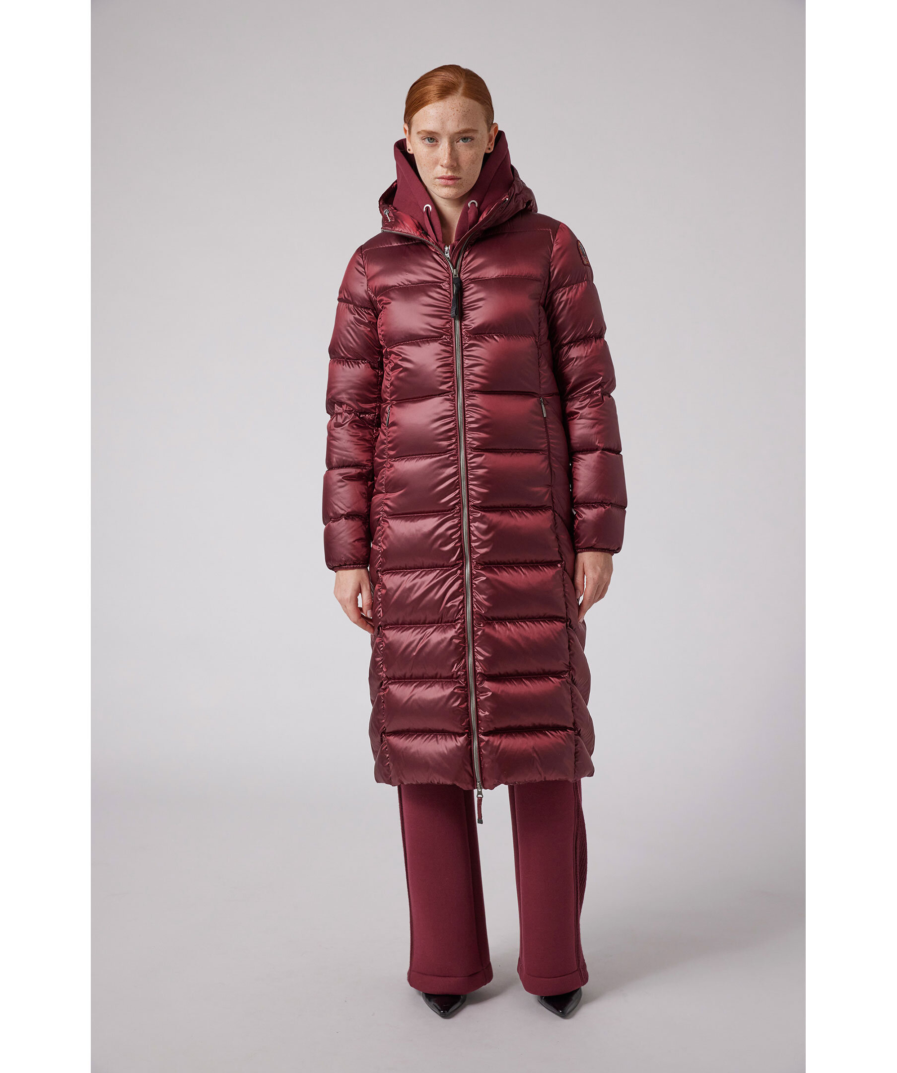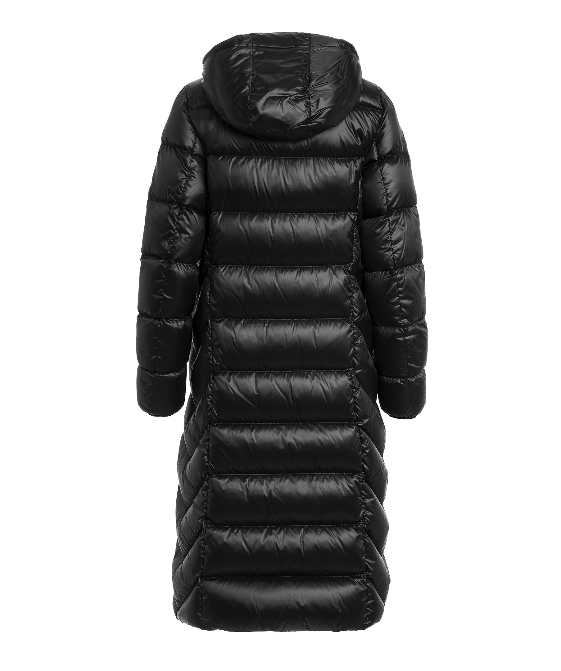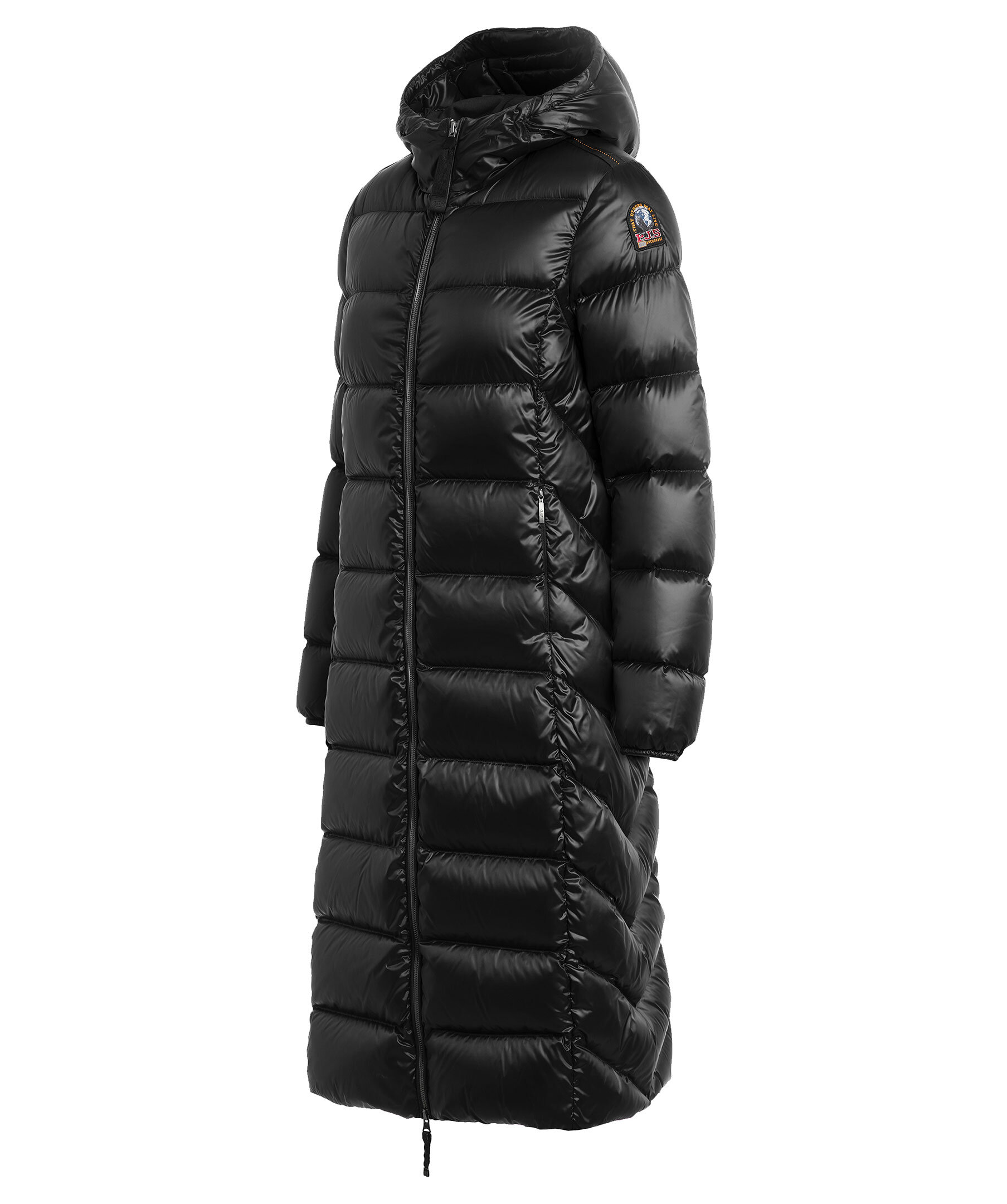 Svart, lång pufferjacka med huva från Parajumpers. Tillverkad i glänsande nylon-polyestertwill. Jackan stängs med tvåvägsdragkedja och har en patch-logotyp på vänster ärm samt två dragkedjefickor på utsidan. Tillverkad i en polyesterblandning. ■ OBS! Modellbilderna visar endast passform