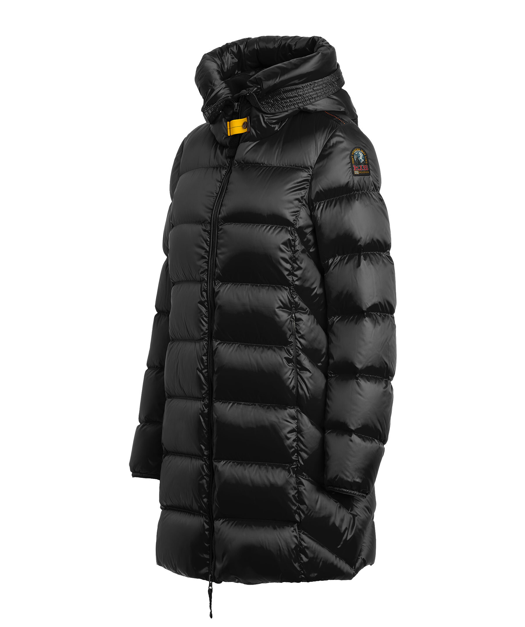 Svart, lång vinterjacka med huva från Parajumpers. Marion är en klassisk pufferjacka med elegant design och i ett glänsande nylon-polyester twill. Stängs med tvåvägsdragkedja. Jackan har två sidfickor på utsidan samt en ficka på insidan. Patch-logotyp på vänster ärm.
