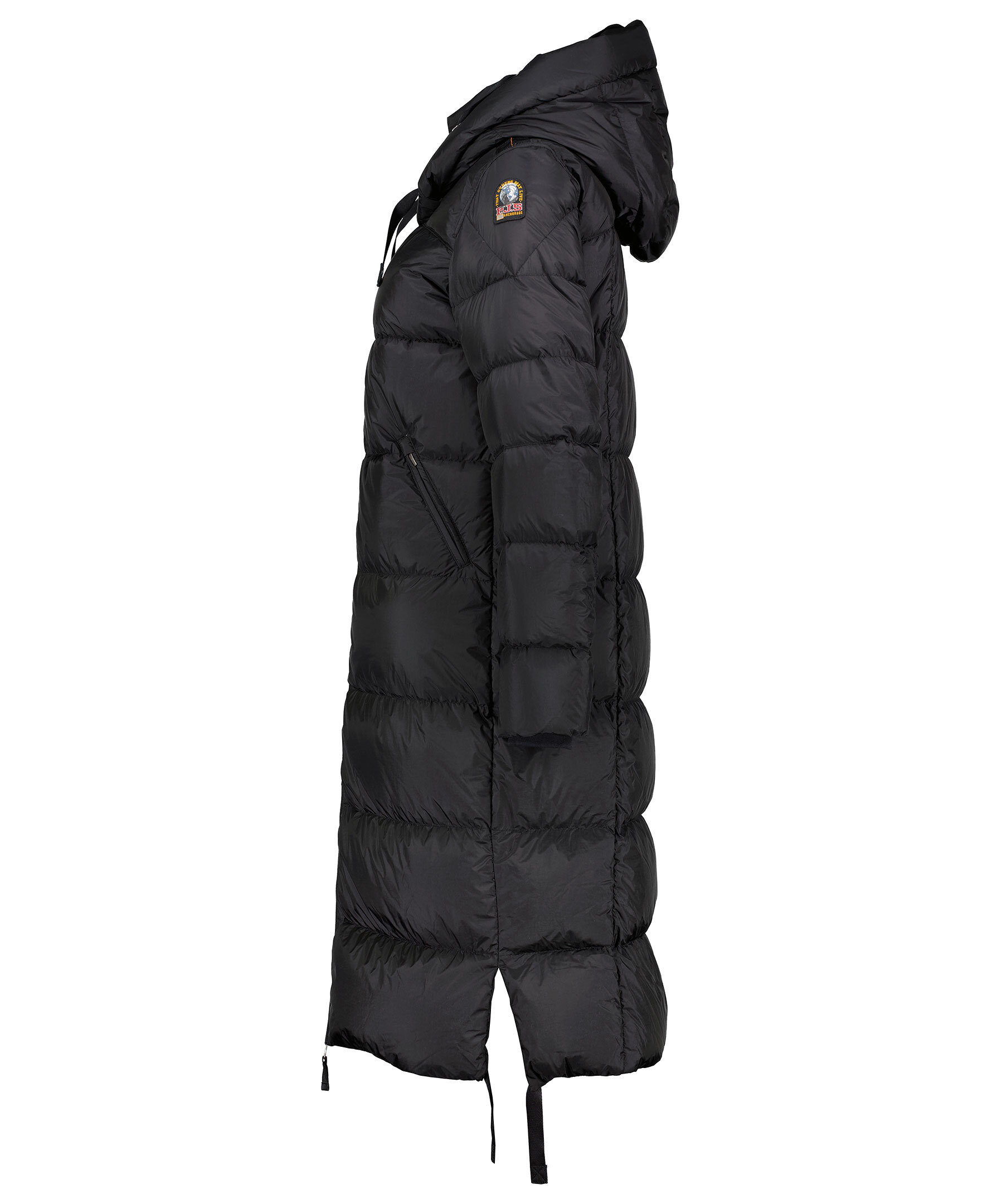 Svart quiltad jacka från Parajumpers. Tvåvägsdragkedja som stängs framtill. Snedställda fickor framtill som stängs med dragkedja. Luva och jackslut med dragsko. Ribbstickad mudd i ärmslut. Patch med logotyp på vänster ärm. Jackan mäter 104 cm mätt från sömmen i nacken och ner i storlek M.
