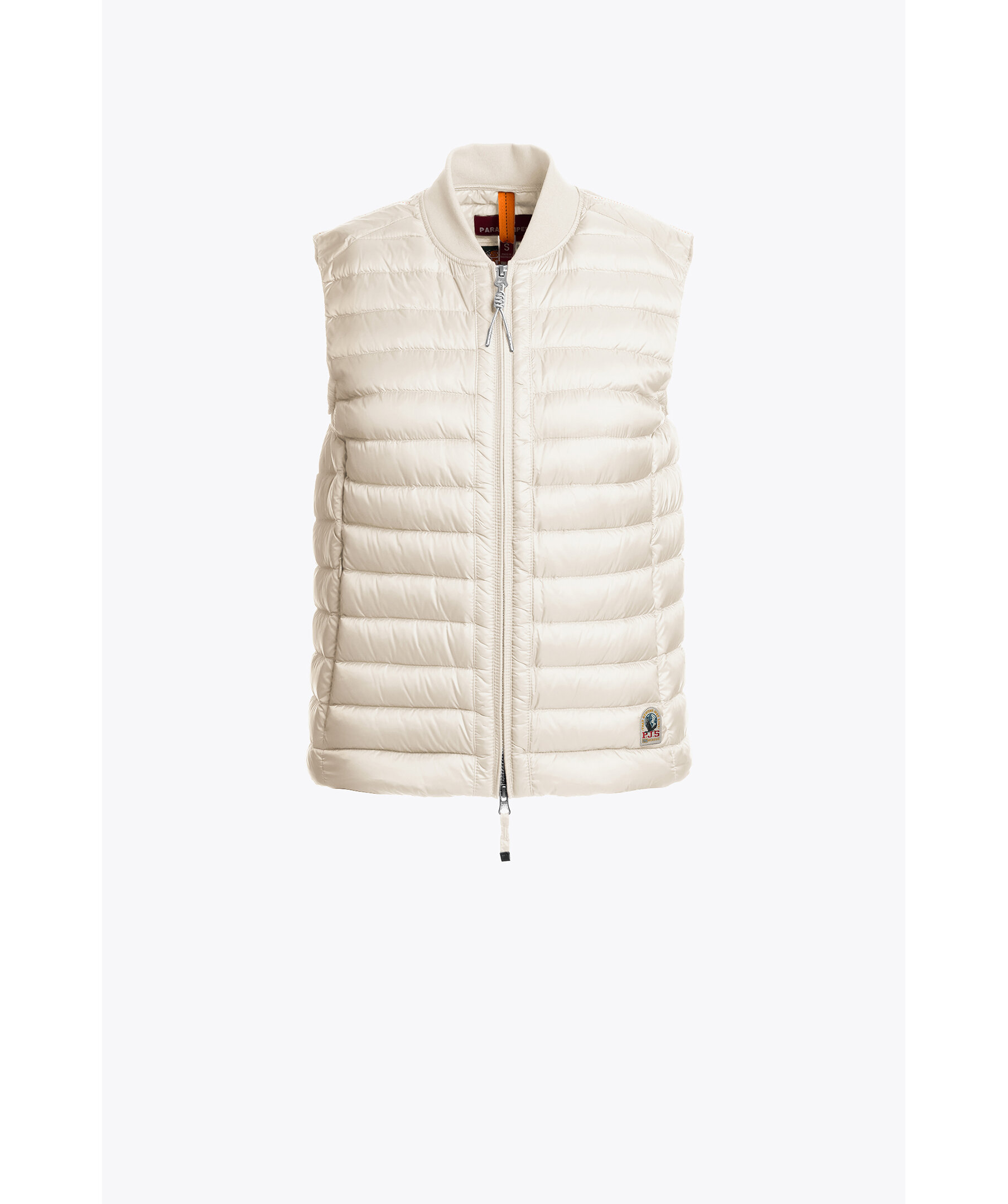 Vit dunväst från Parajumpers. Västen har tvåvägsdragkedja, ribbstickad krage, justerbar nederkant samt fickor med dragkedja och innerficka. Parajumpers patch sitter baktill i nacken.