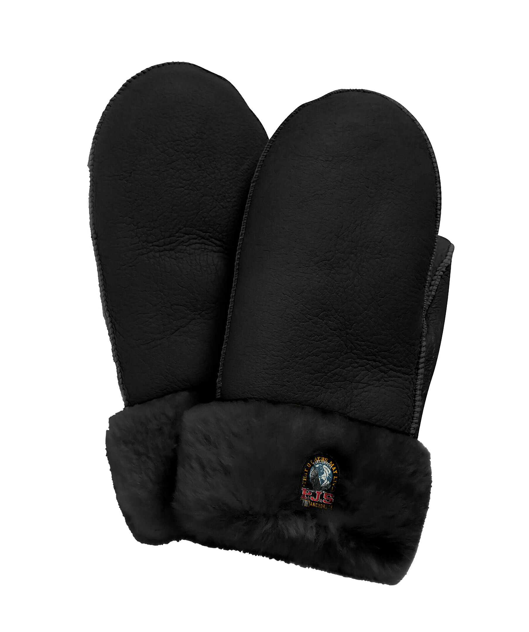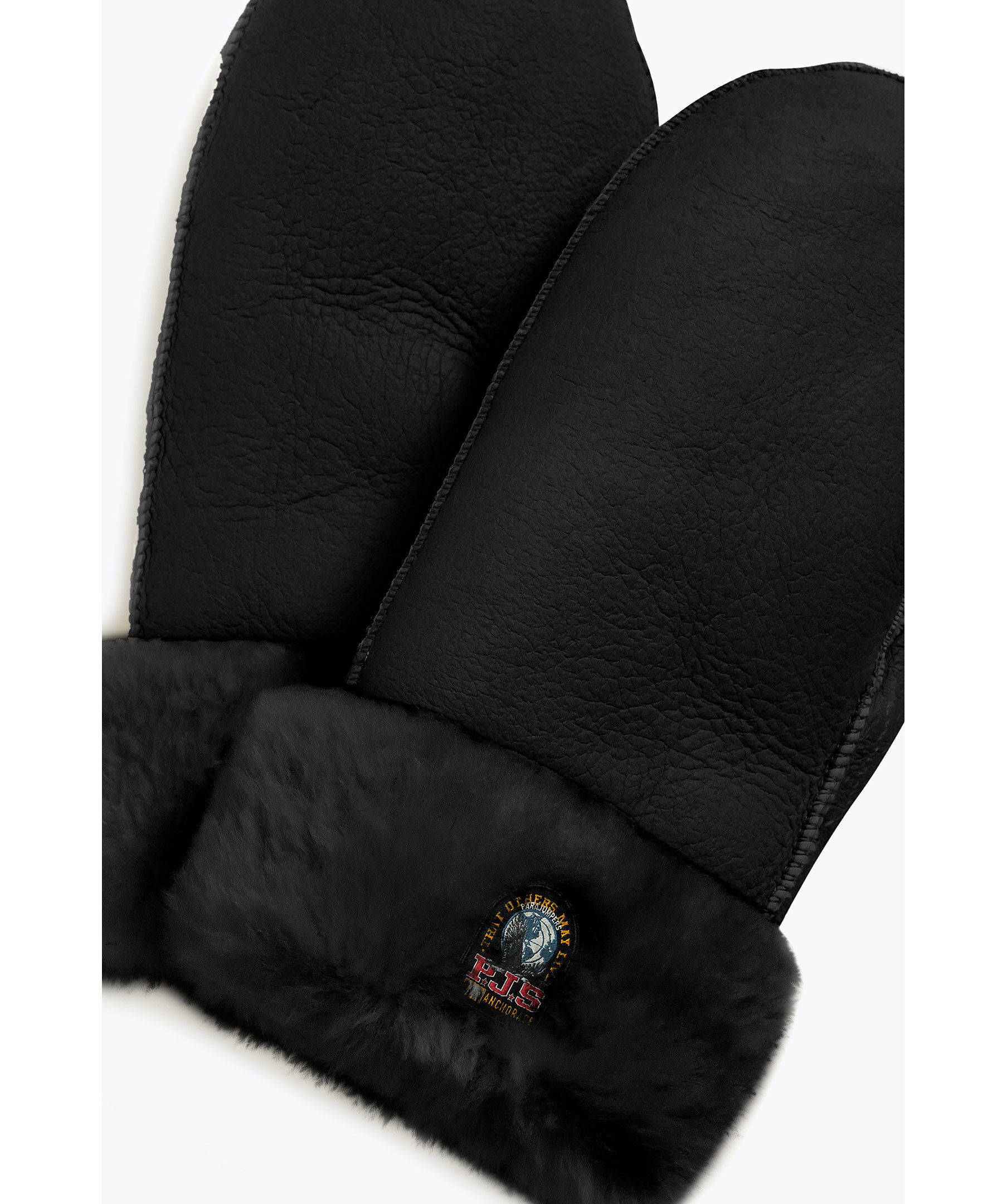 Svarta tumvantar i ett mjukt fårskinn från Parajumpers. Uppvikt kant och liten patch med logotyp fram på den uppvikta delen. Slät utsida med kanter av fluffigt fårskinn samt en insida av fluffigt fårskinn.