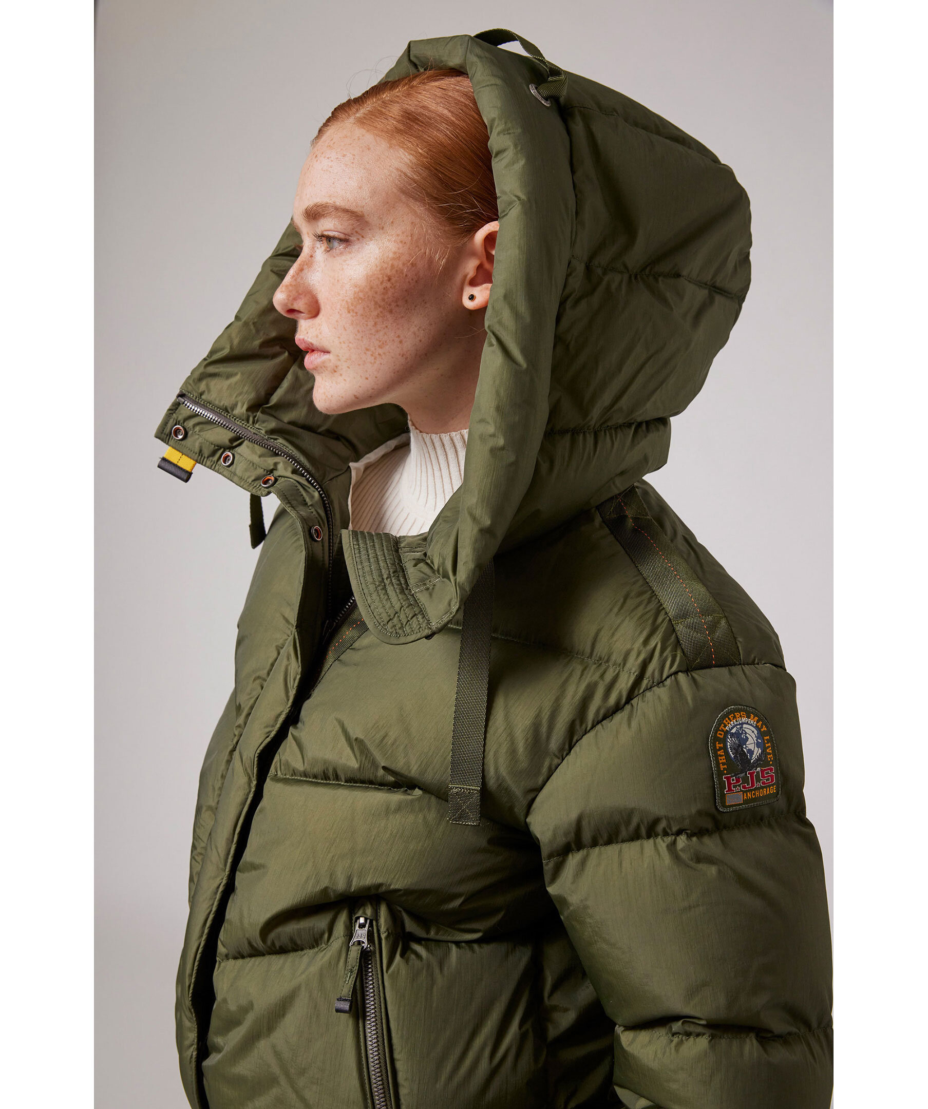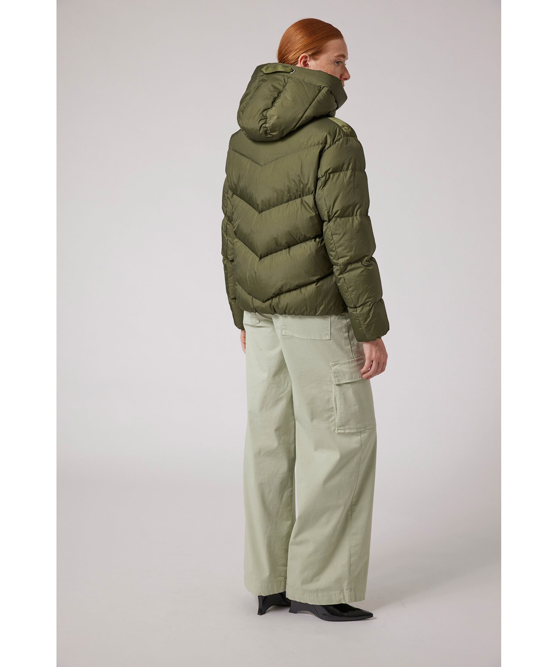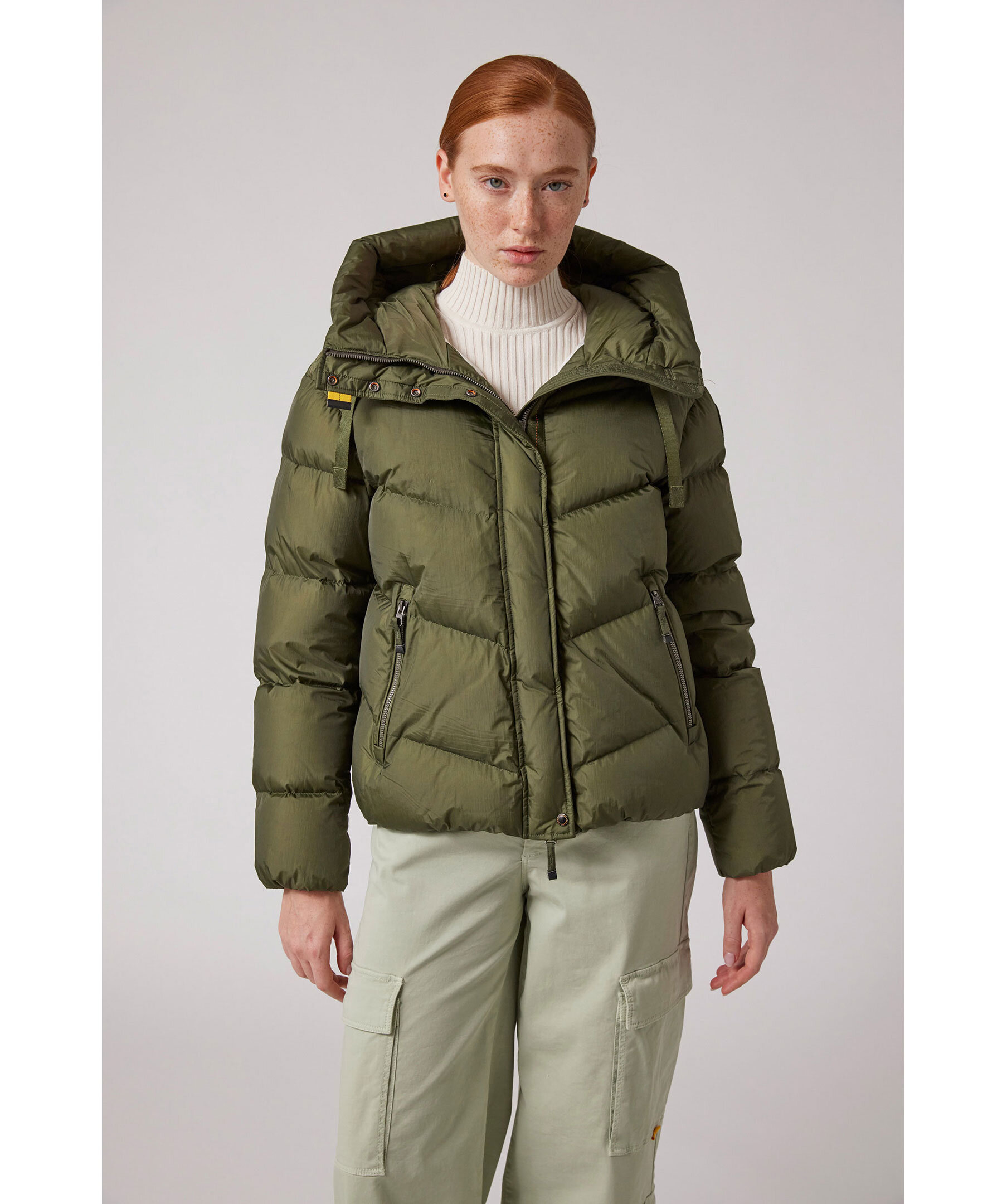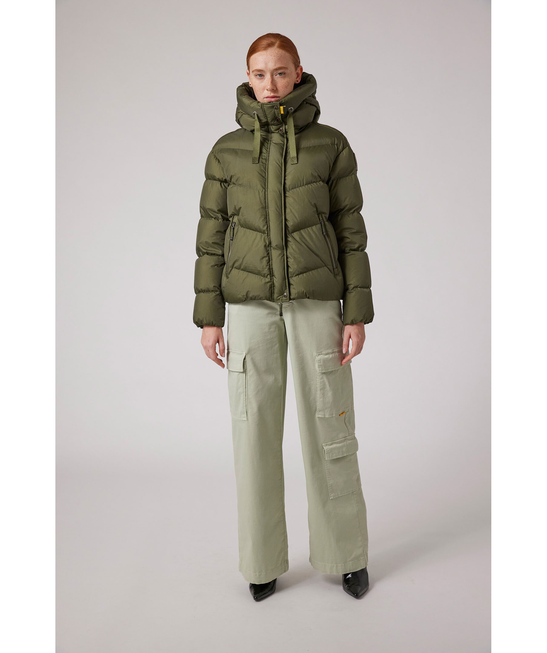 Svart, quiltad dunjacka i en kort modell från Parajumpers. Jackan stängs med dold tvåvägsdragkedja och tryckknappar och har huva med dragsko, två sidfickor med dragkedja samt patch-logotyp på vänster ärm. Tillverkad i polyamid med dunfyllning. ■ OBS! Modellbilderna visar endast passform