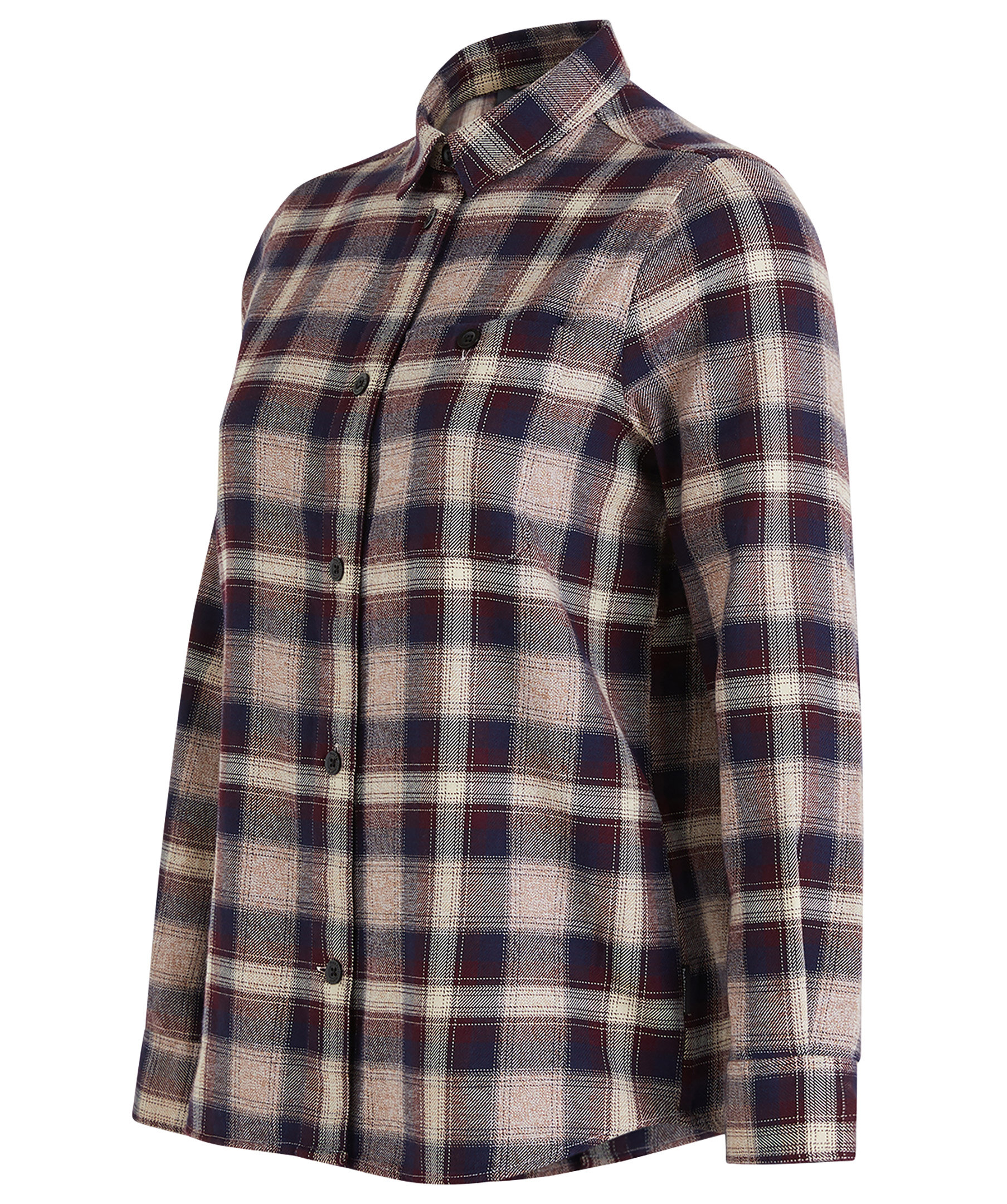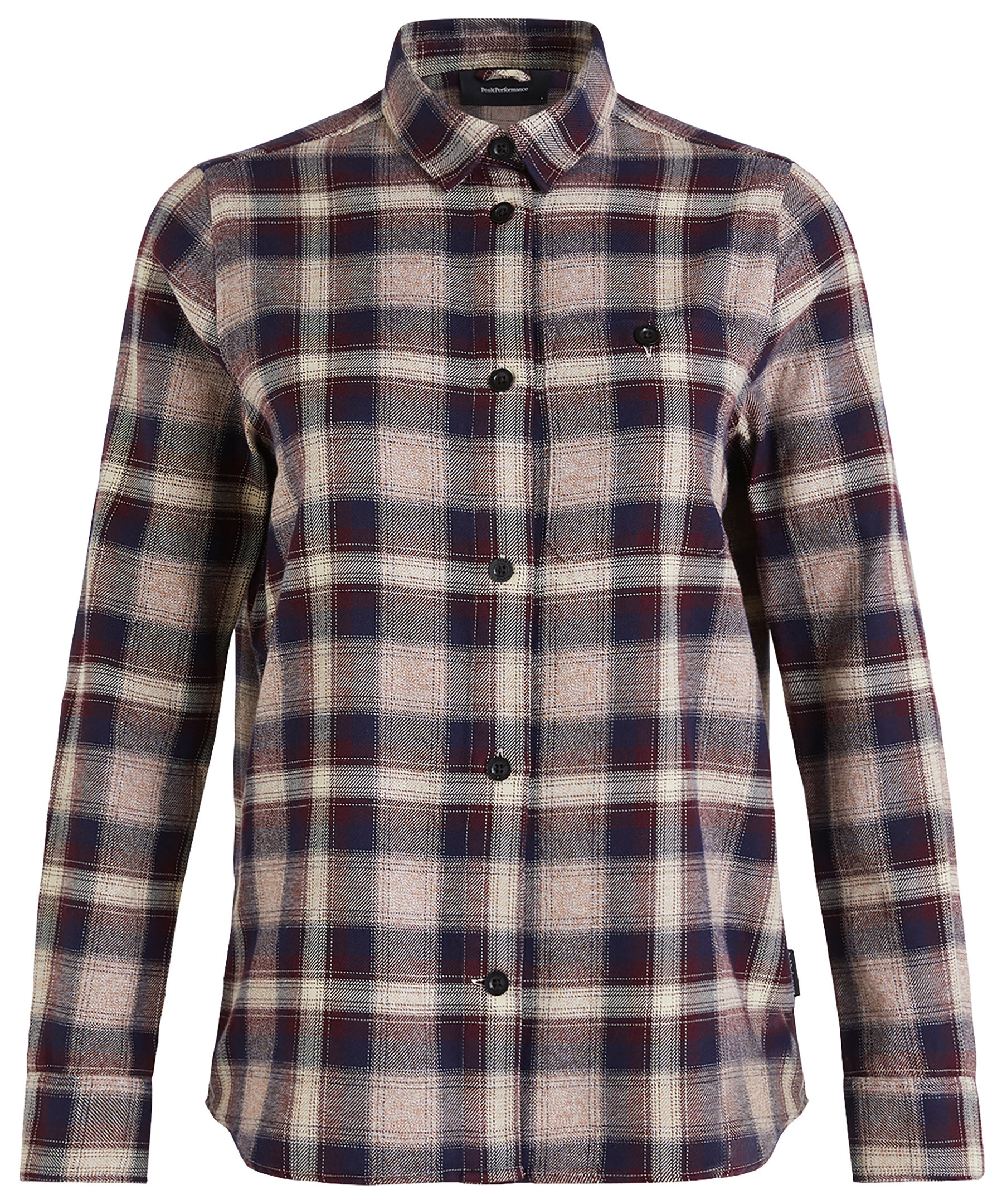 Vinröd, rutig flanellskjorta tillverkad av 100% bomull som har borstats på båda sidor för en mjuk känsla från Peak Performance. SKjortan har en lite oversize känsla och har böjda fållar i nederkant. Bröstficka med knäppning, skjortknappar med logotyp, Peak Performance-flaggetikett. Formad nederkant, ärmslut med knäppta slitsar och inre upphängningsögla i nacken.
