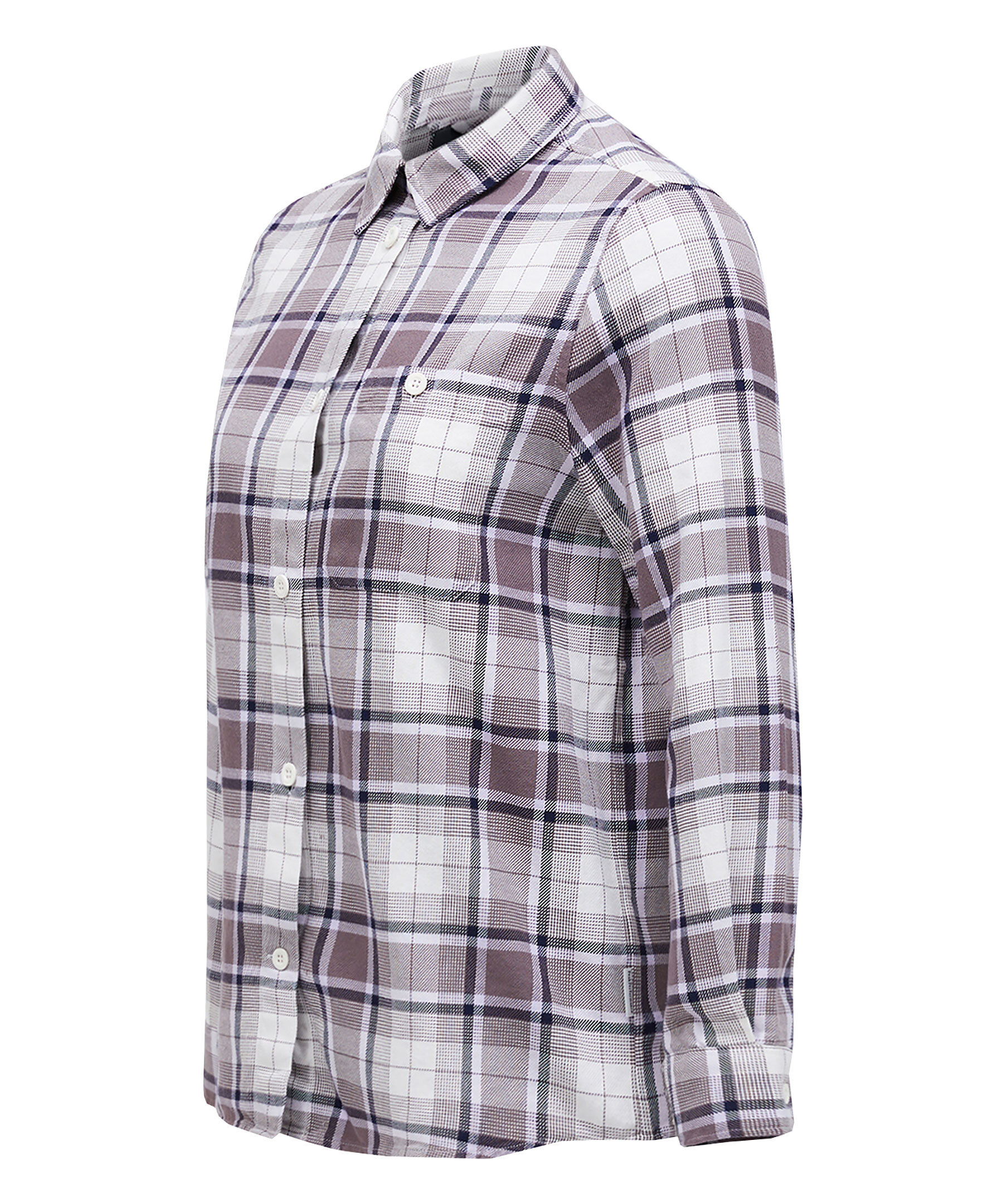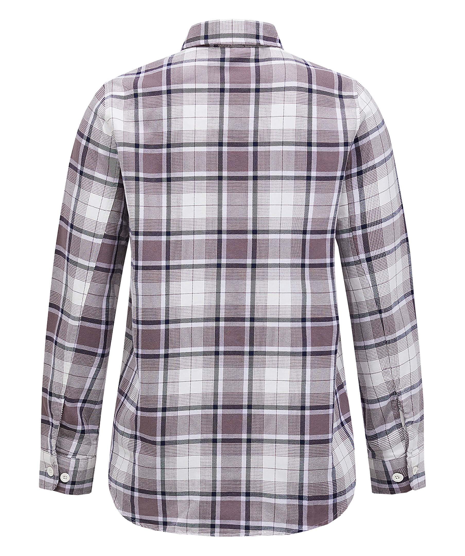 Flanellskjorta från Peak Performance i en beige samt svart rutigt mönster. Tillverkad av 100% bomull som har borstats på båda sidor och känns otroligt mjuk. Något avslappnad passform, rundade sidor. Formad nederkant. Stängs med vita knappar. En bröstficka med knäppning. Ärmslut med knäppta slitsar.