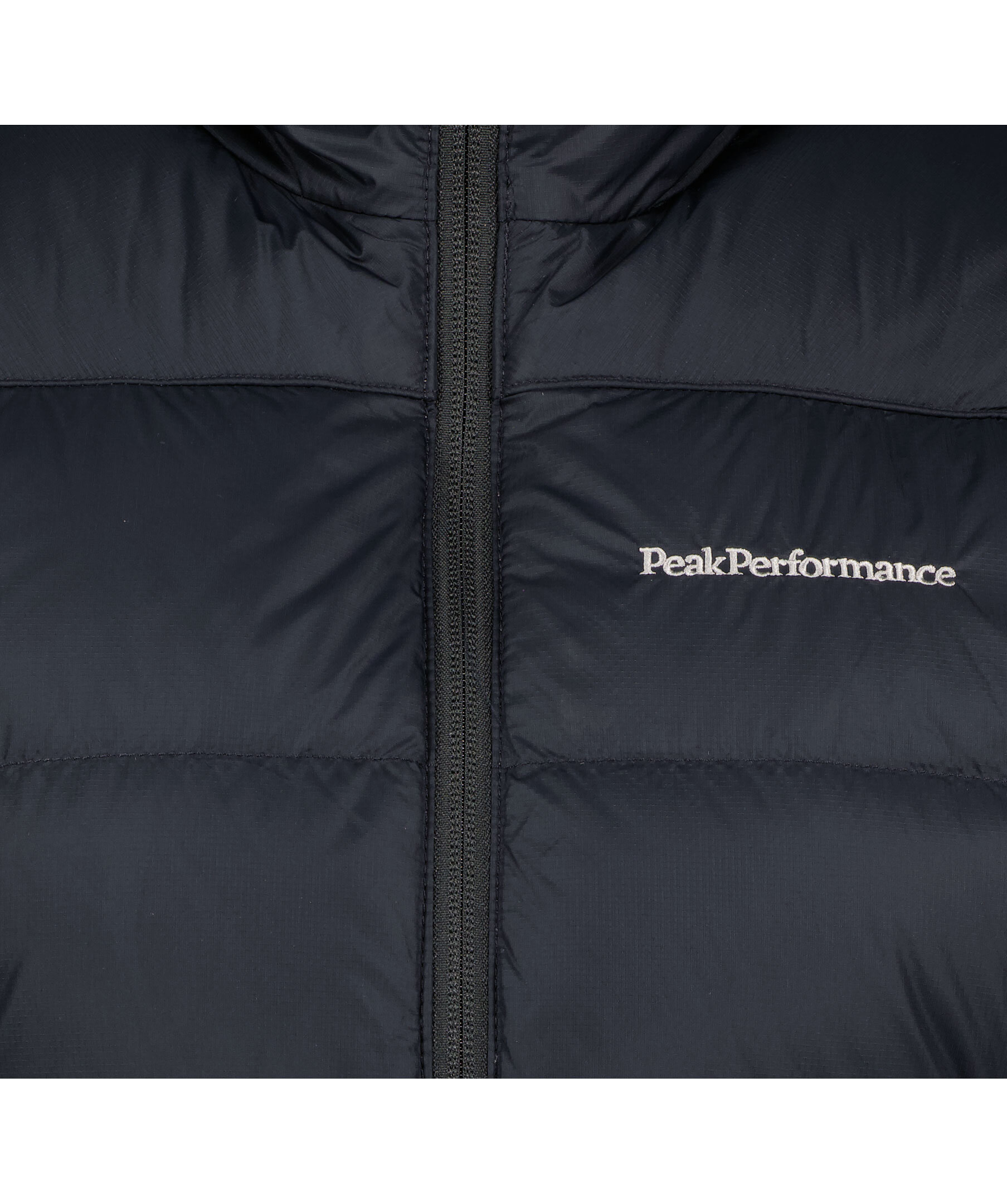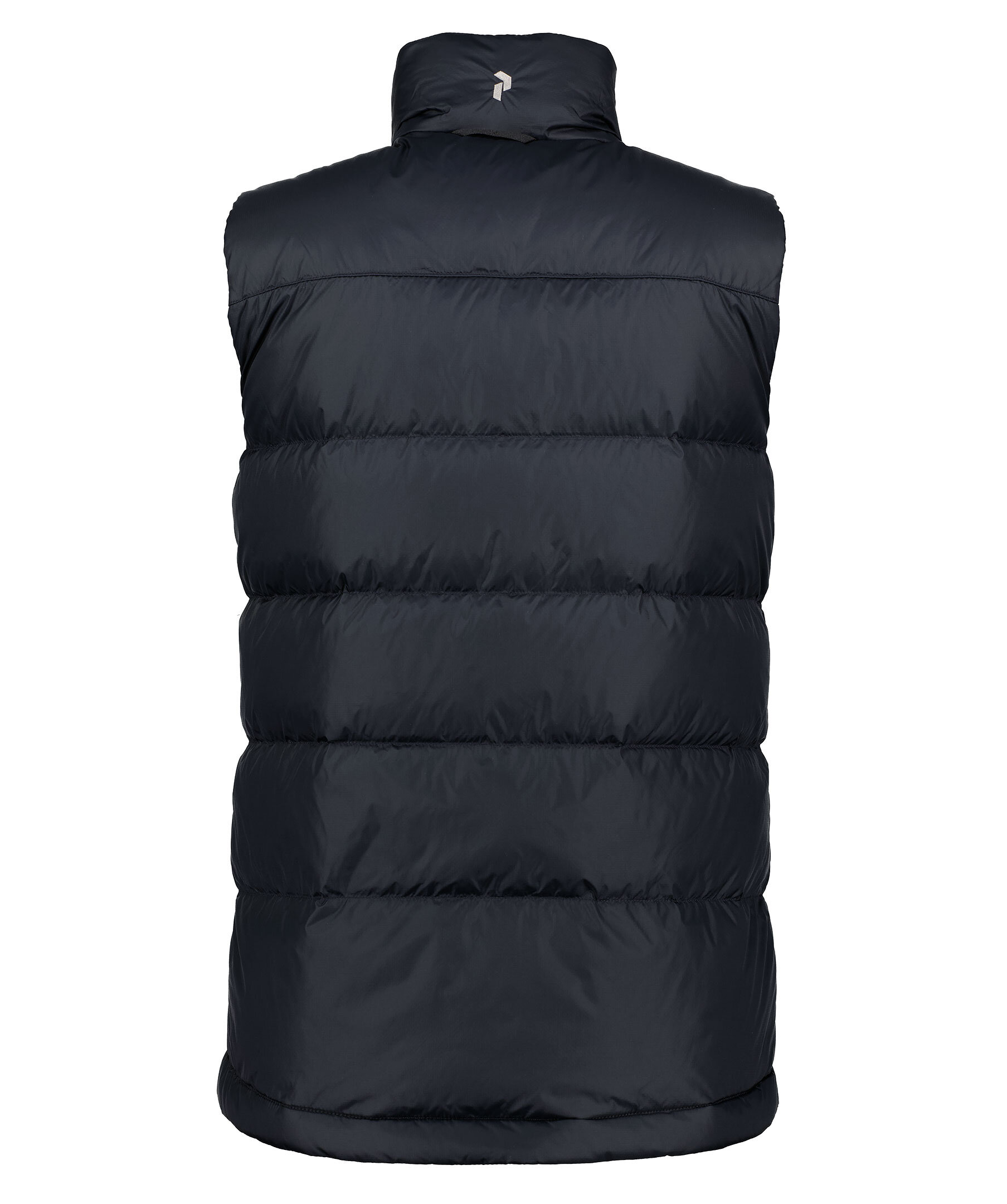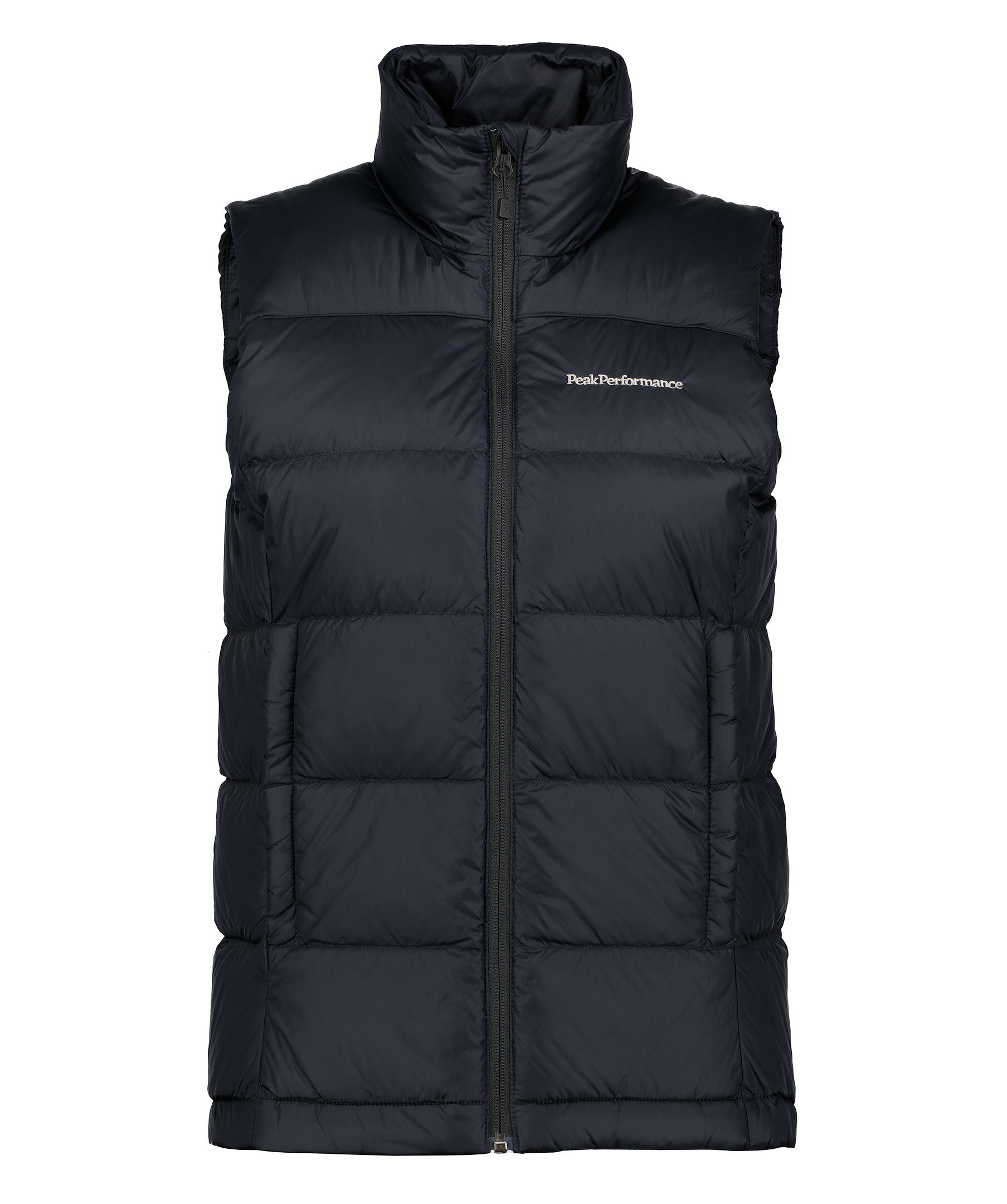 Svart quiltad dunväst från Peak Performance. Stängs framtill med dragkedja. Broderad logotyp på vänster bröst. Två fickor framtill som stängs med dragkedja. Dragsko vid västslut. Innerficka på vänster sida som stängs med dragkedja. Broderad logotyp vid nacken.