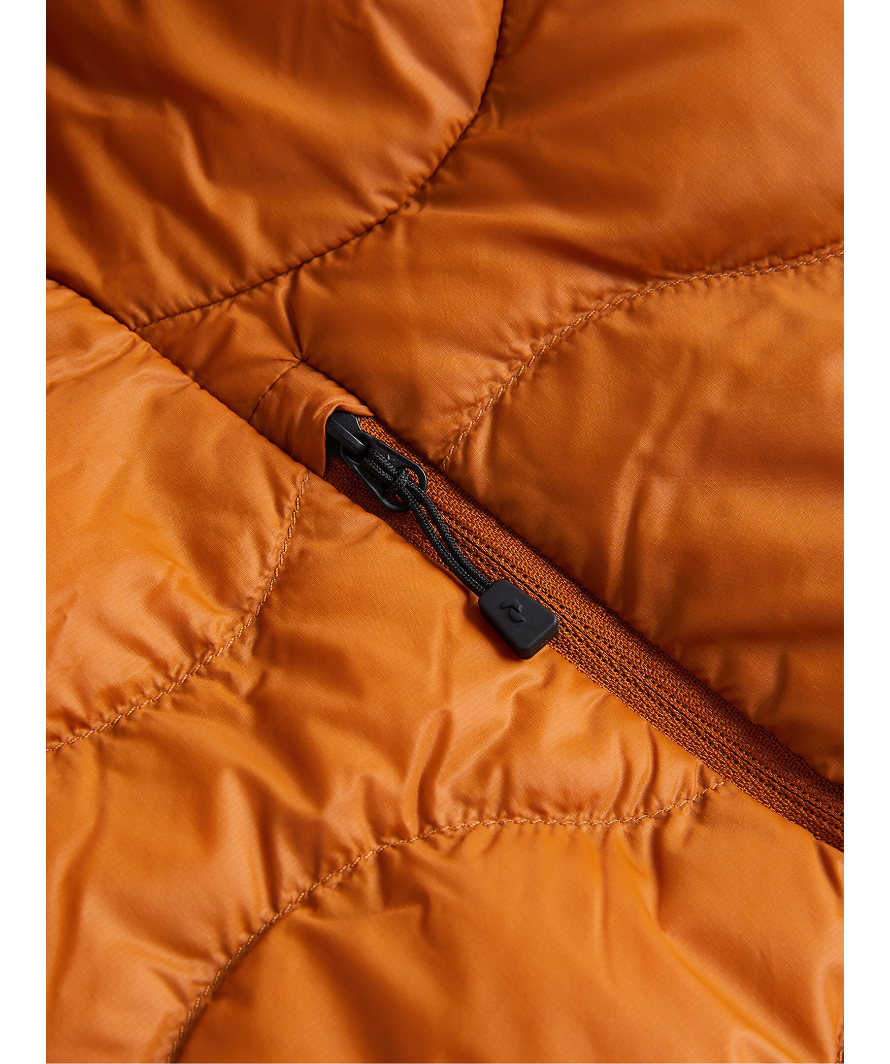 Rostbrun quiltad dunjacka från Peak Performance. Stängs framtill med dragkedja. Luva med dragsko. Två fickor framtill som stängs med dragkedja. Smal elastisk mudd vid ärm- plaggslut. Broderad logotyp på vänster bröst.