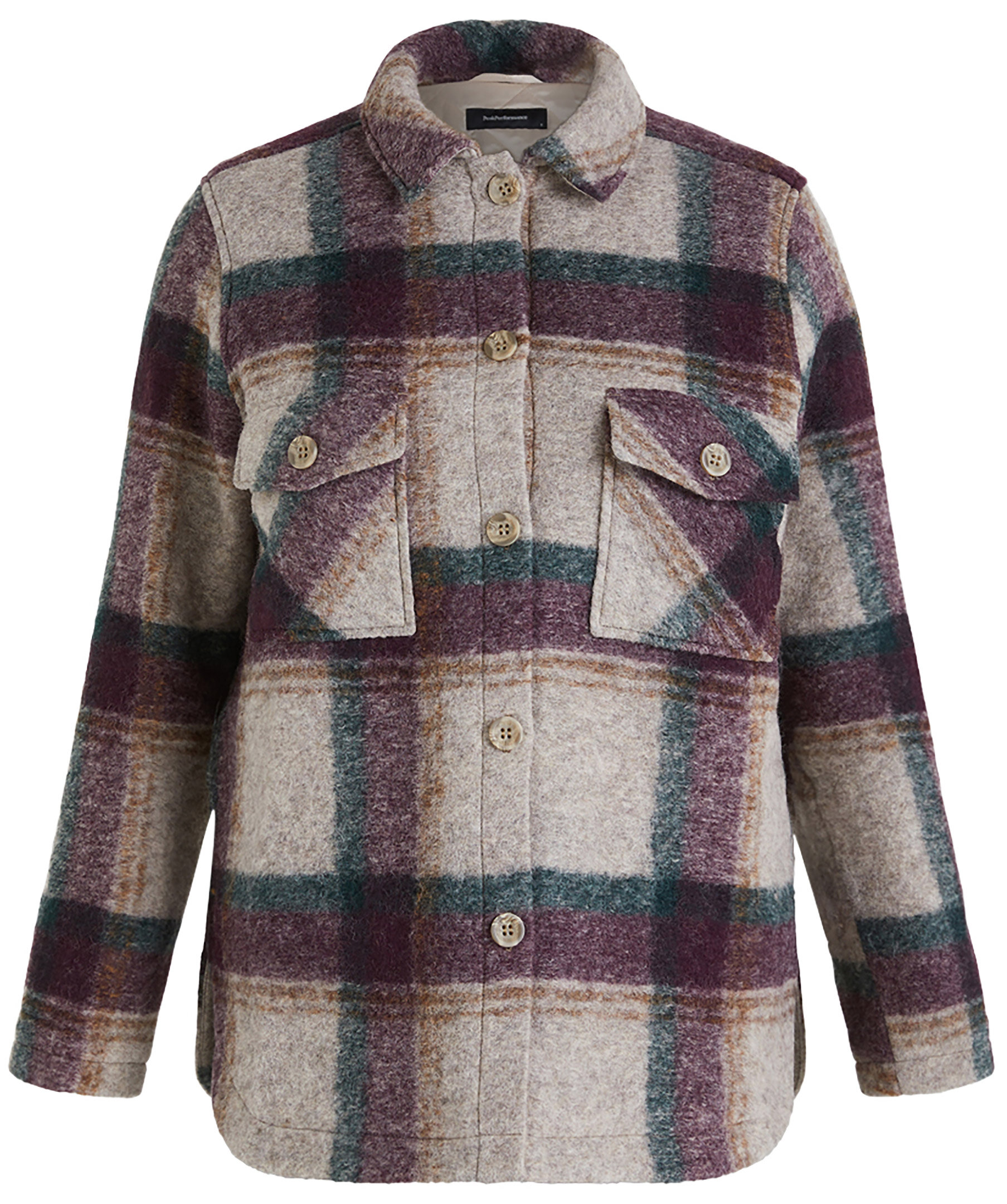 Lila, rutig skjortjacka som är perfekt att använda som lager från Peak Performance. Tillverkad av en mjuk ullblandning och är helvadderad med diamantquiltad foder för optimal värme. Tidlös stil som håller i många säsonger framöver. Formad nederkant, bröstfickor med knäppning och inre upphängningsögla i nacken. Skjortknappar hela vägen fram med logotyp.