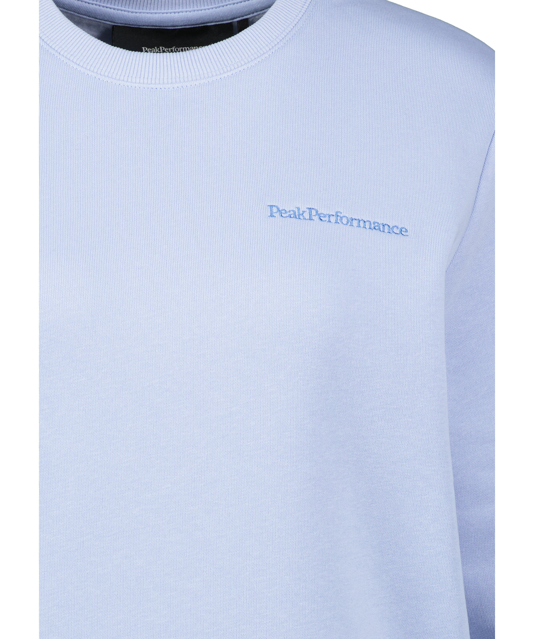Ljusblå Sweatshirt från Peak Performance. Rundad halsringning. Ribbstickade muddar vid krage, ärm- och plaggslut. Broderad logotyp på vänster bröst. Borstad insida. Tillverkad i bomullsblandning.