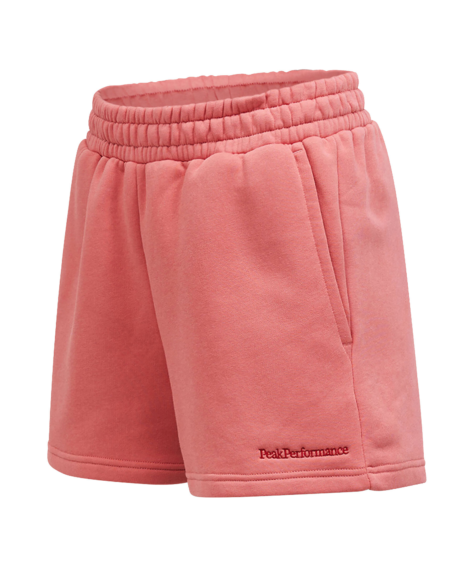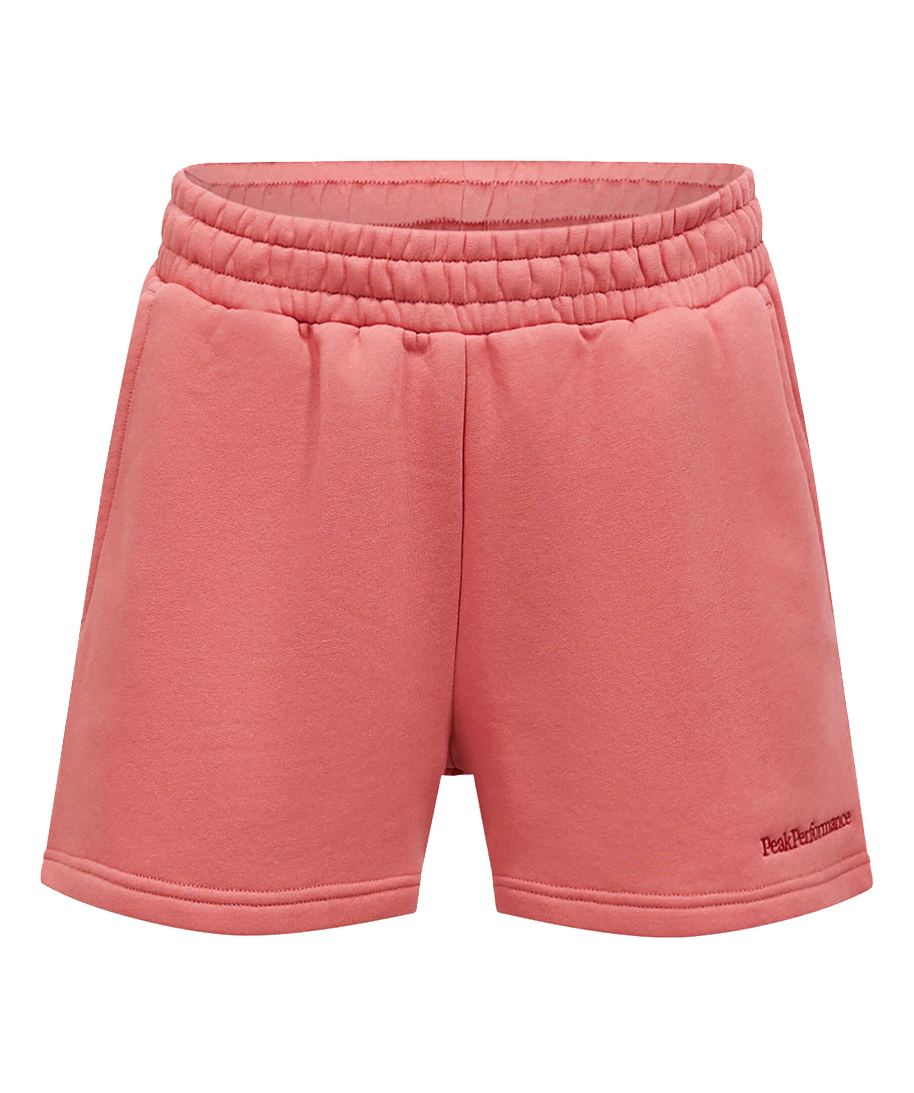 Korallfärgade shorts från Peak Performance. Resår i midjan. Broderad logotyp på vänster lår. Två fickor framtill. Tillverkad i bomulls blandning.
