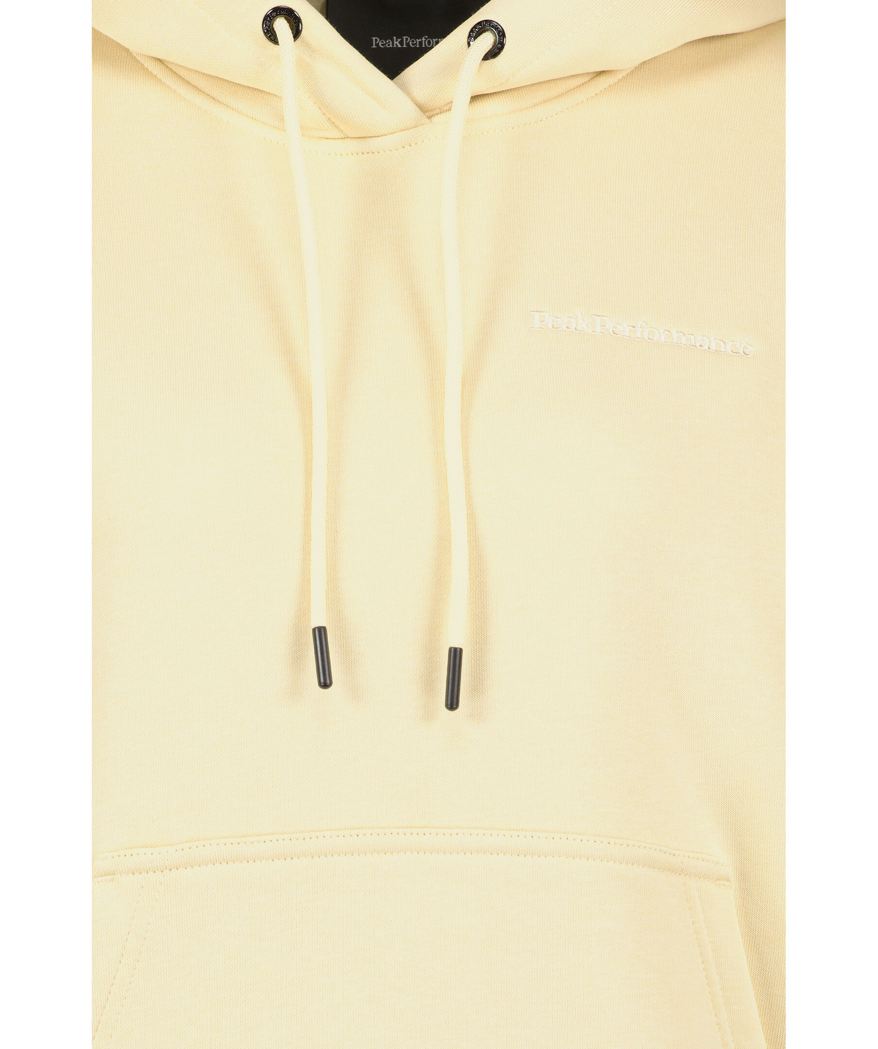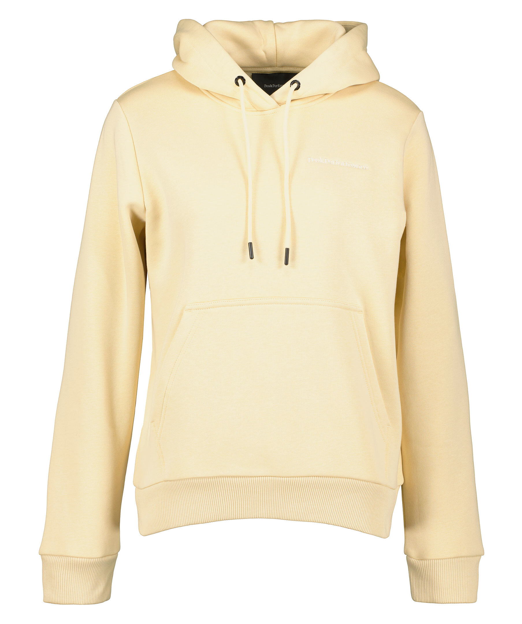 Beige hoodie från Peak Performance. Tröjan är gjord i en ekologisk bomullsblandning. Känguruficka på magen, broderad ton-i-ton logotyp. Luva med dragsko. Ribbade muddar.